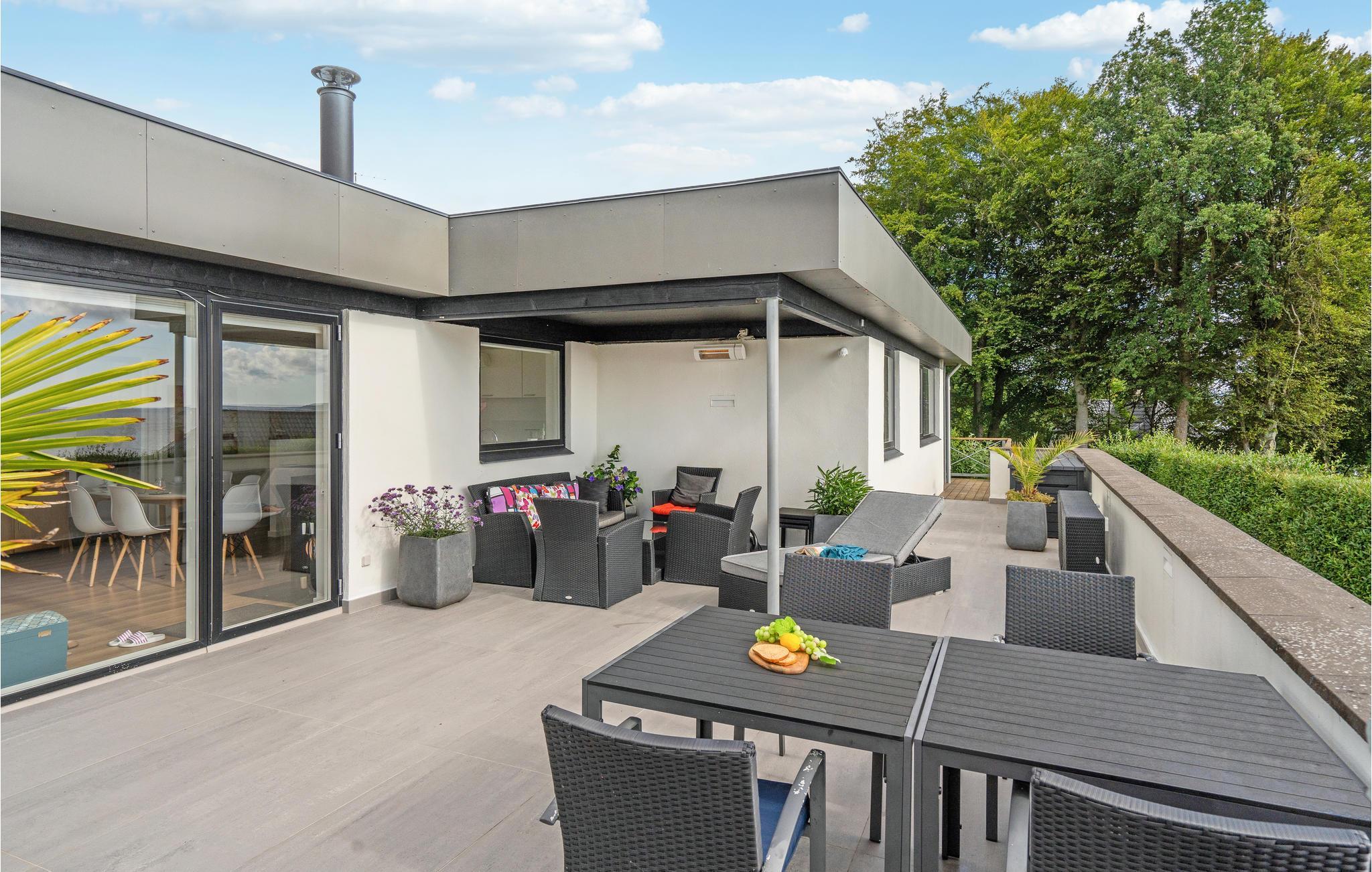 Nyd et luksuriøst feriehus med spabad og panoramaudsigt tæt på stranden ved Hvidbjerg Strand.