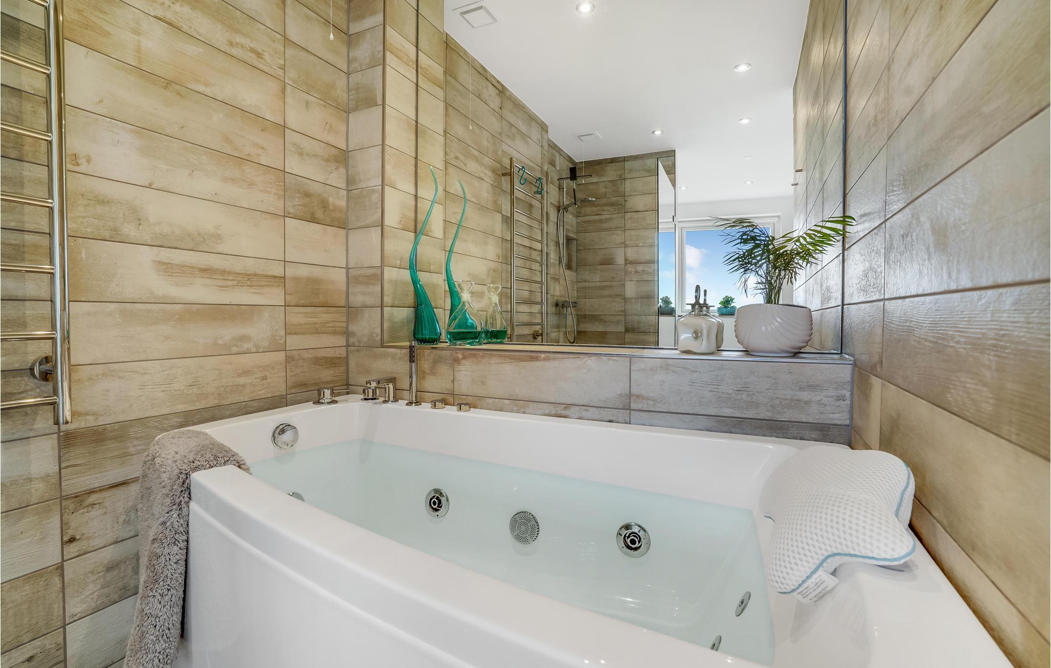 Drømmer I om et førsteklasses ophold, hvor I er tæt på vandet? Så er dette forrygende feriehus med spabad helt perfekt.