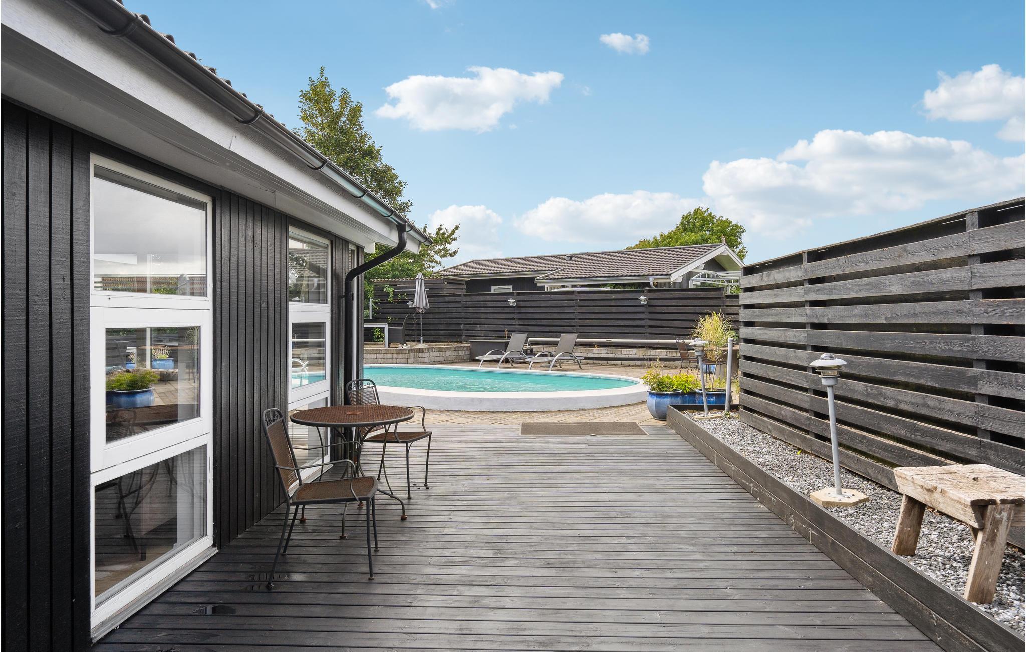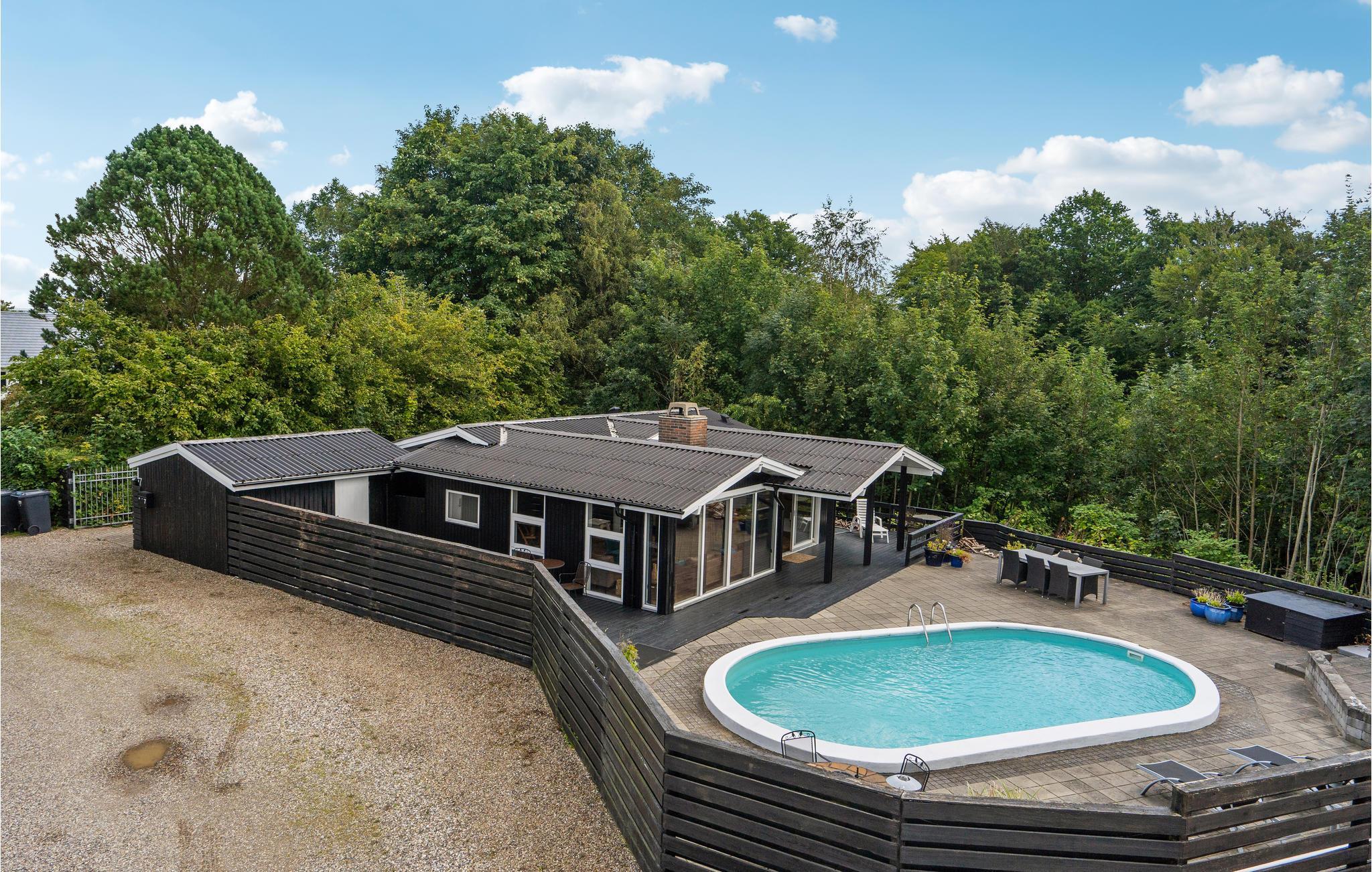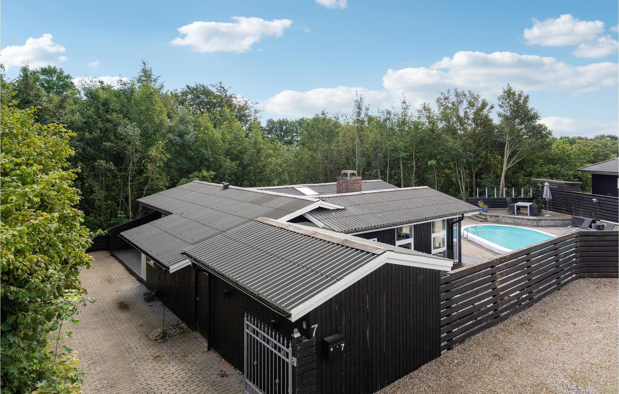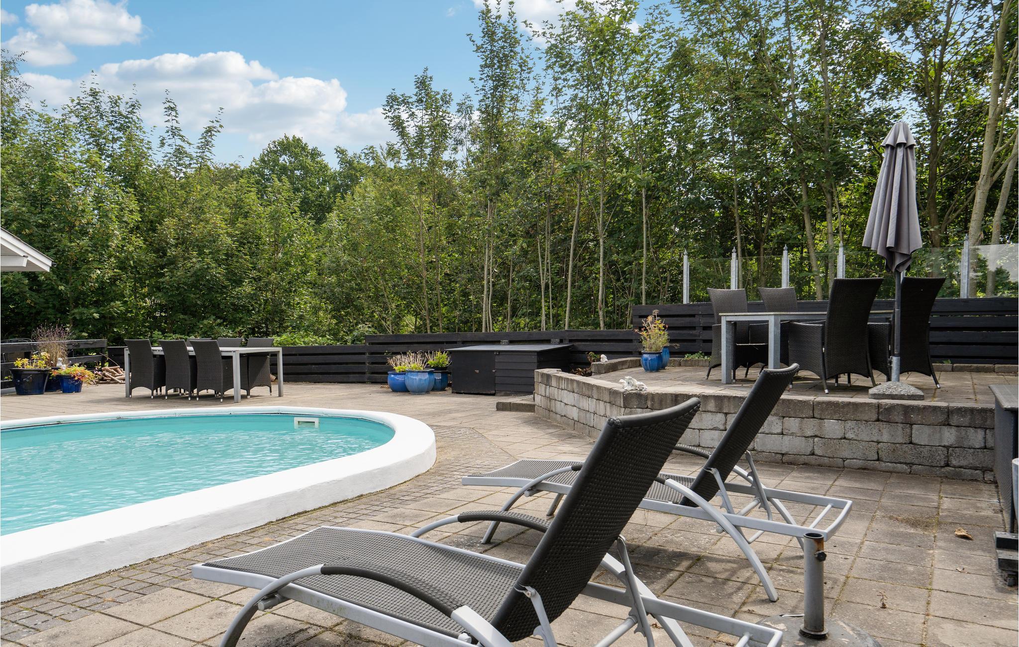 Oplev en skøn ferie i dette moderne og stilfulde feriehus med privat swimmingpool i Hvidbjerg ved Vejle Fjord.