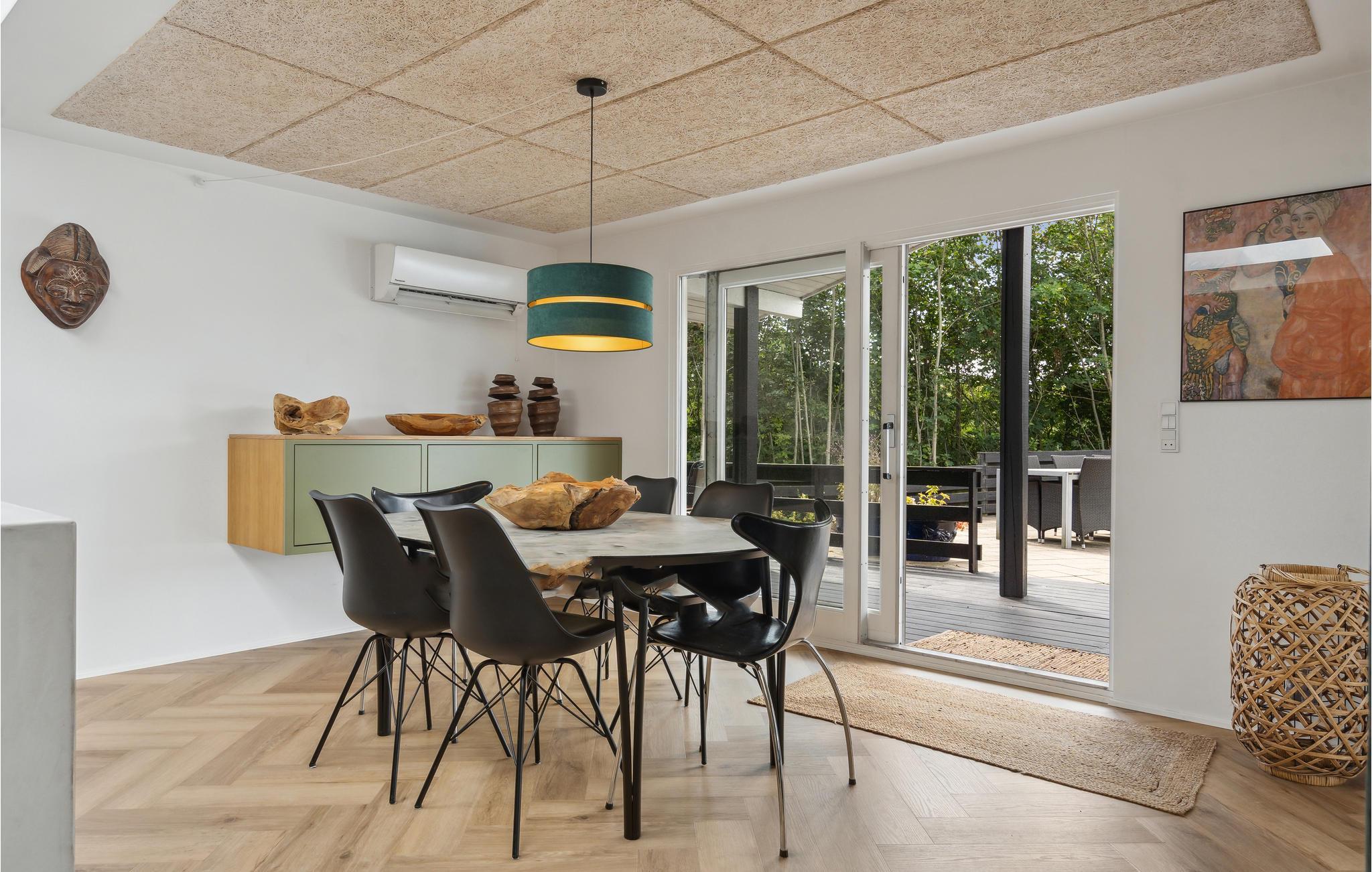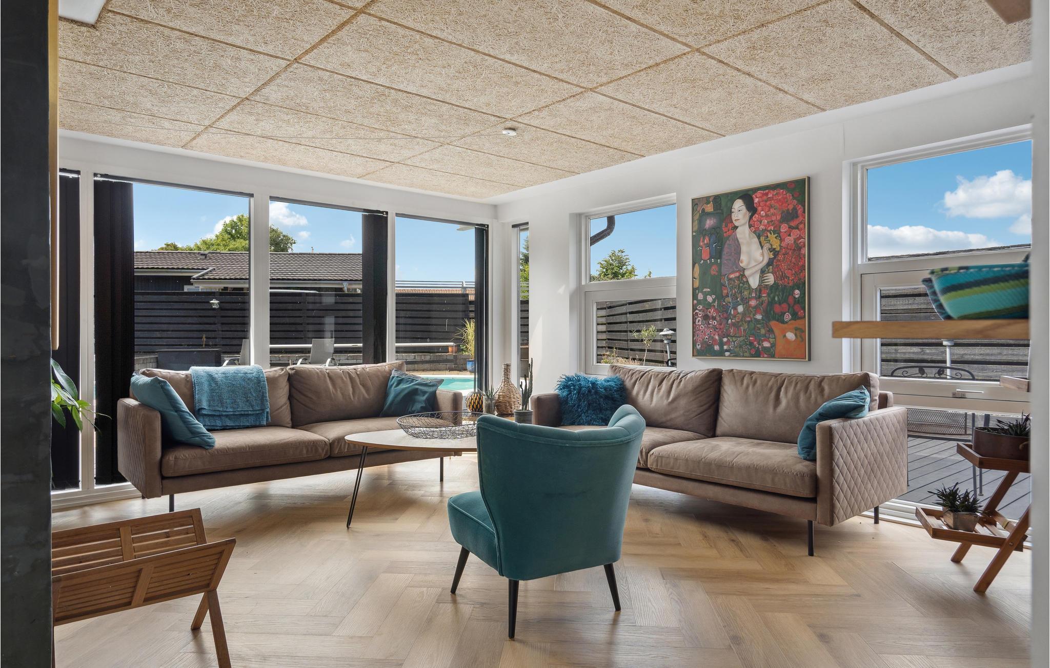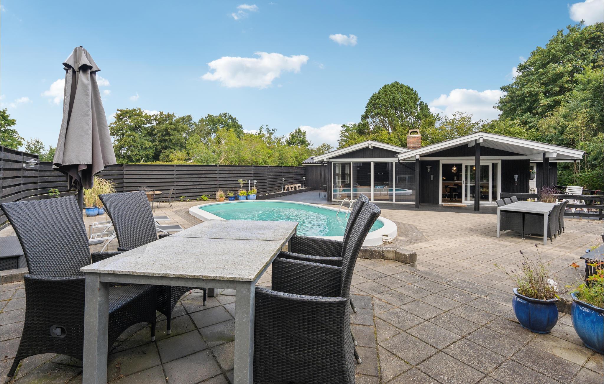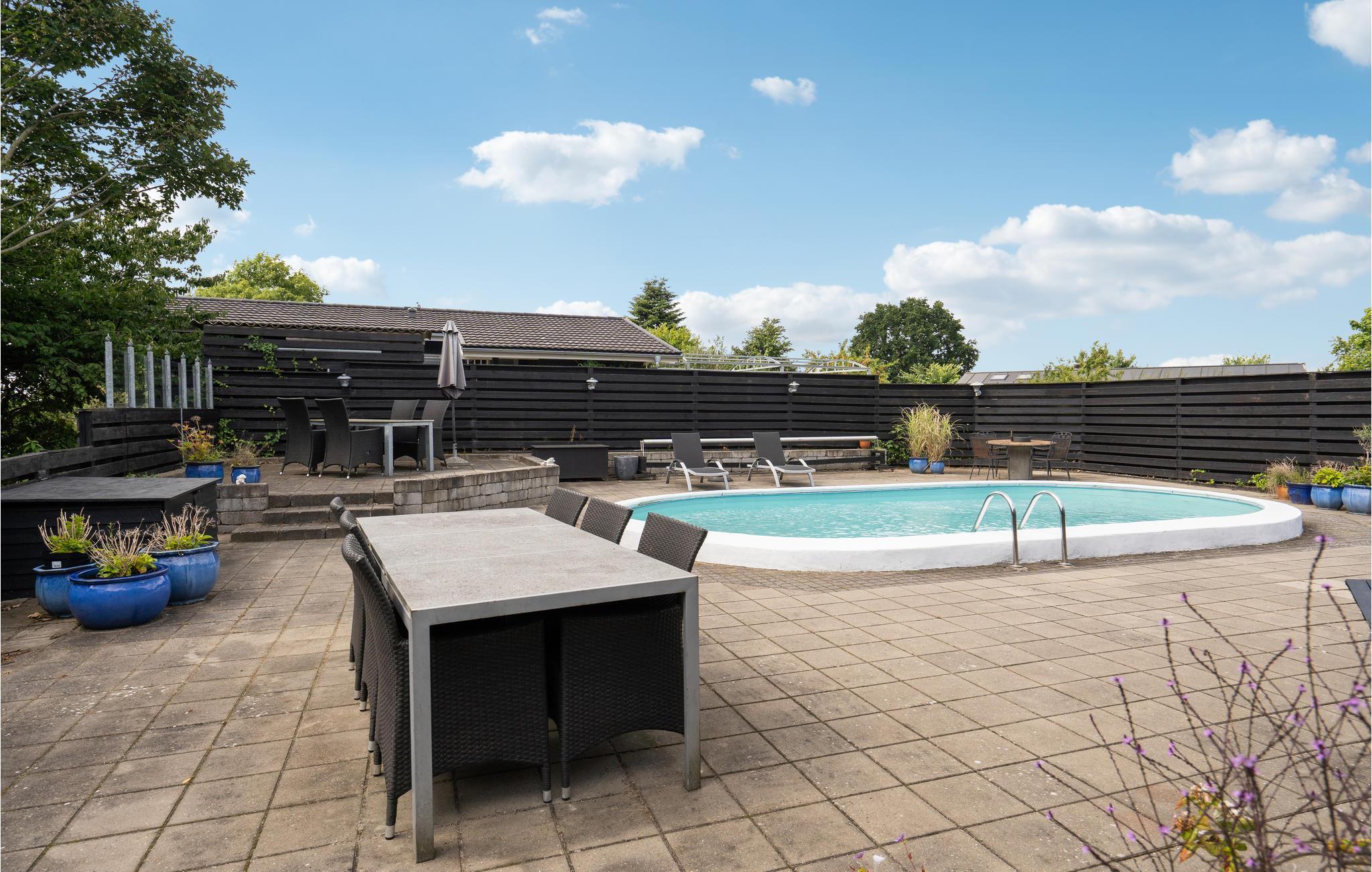 Oplev en skøn ferie i dette moderne og stilfulde feriehus med privat swimmingpool i Hvidbjerg ved Vejle Fjord.