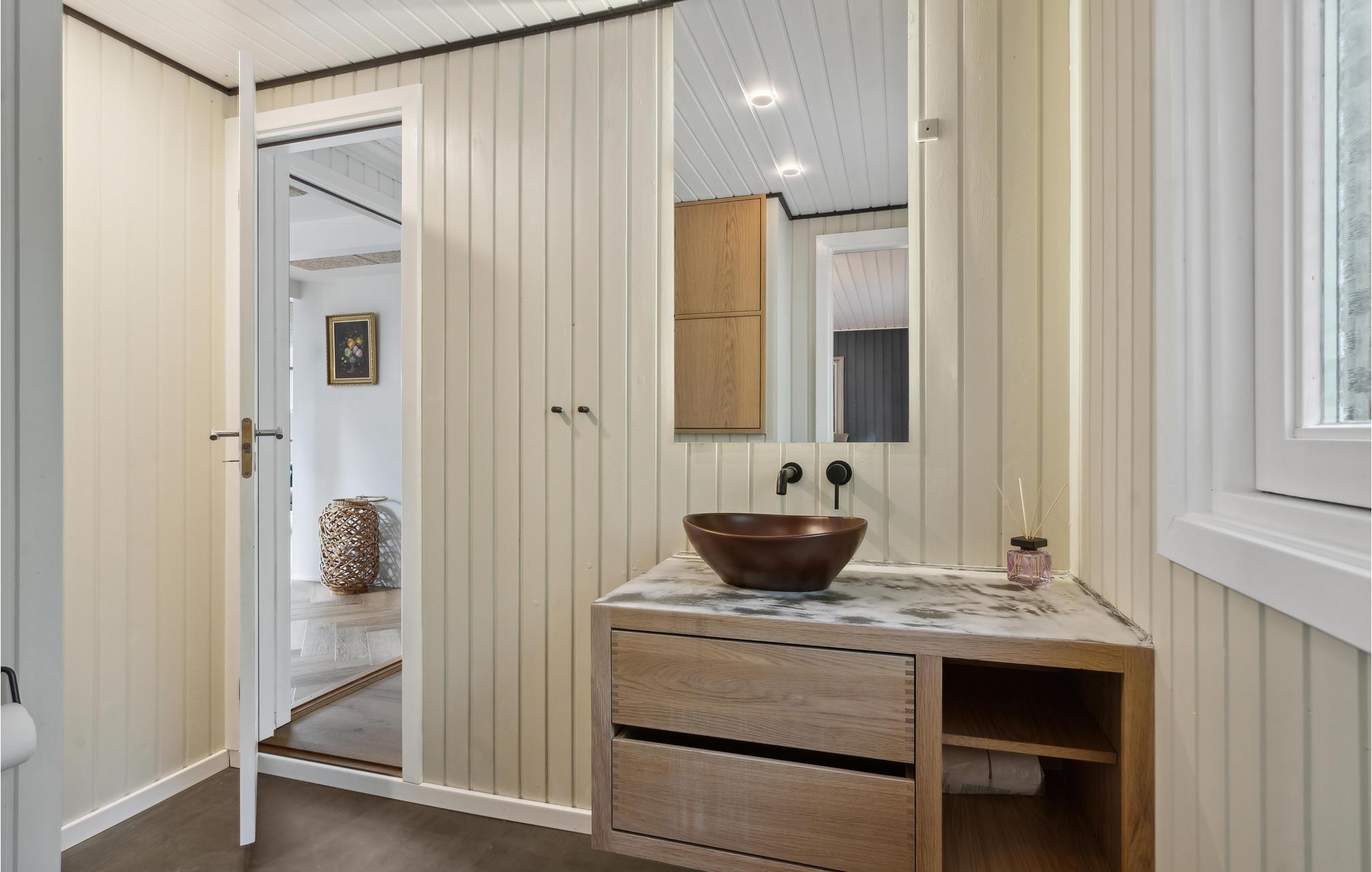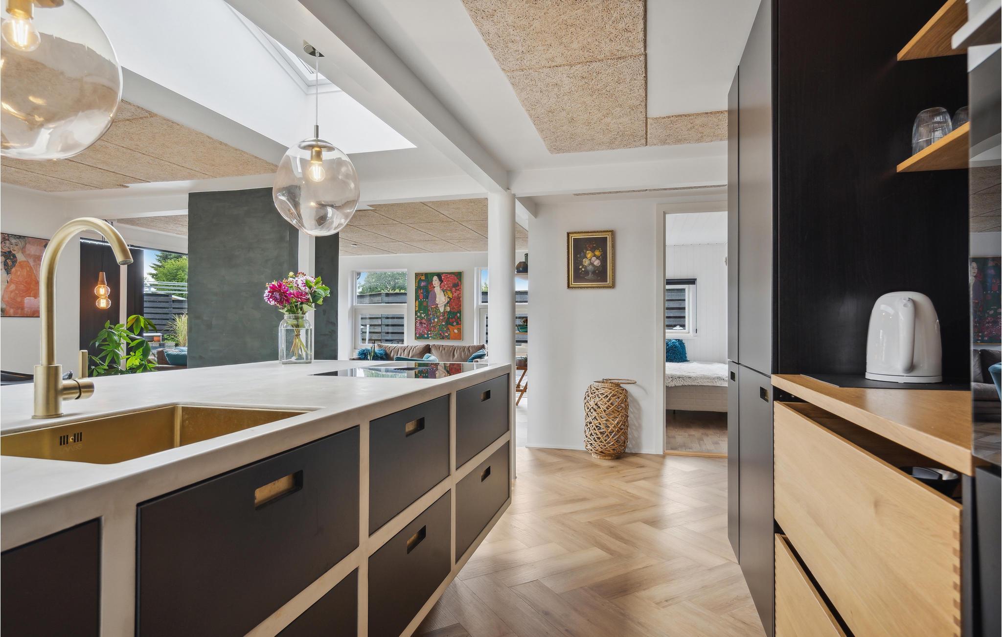 Glæd jer til denne oase i Hvidbjerg ved Vejle Fjord! Indenfor vil I med det samme mærke en særlig atmosfære. De moderne, stilfulde møbler og kunstneriske detaljer skaber et fantastisk blikfang, og den høje boligkomfort efterlader ingen ønsker uopfyldt. I kan lave lækker feriemad i det åbne køkken eller sætte jer godt til rette i sofaerne om aftenen og se en god film. De solrige timer kan I tilbringe i haven. Terrasserne indbyder til solbadning og ren afslapning, og den dejlige pool frister med afkøling på varme dage og uforglemmelig vandleg for børnene. Oplev det blide, kuperede fjordlandskab i dette hjørne af Danmark, som indbyder til afslappende gå- og cykelture. Tag picnickurven med og vælg et idyllisk sted ved havet. Inden for gåafstand ligger også Hvidbjerg Strand med sin store klit, som giver et varieret billede.