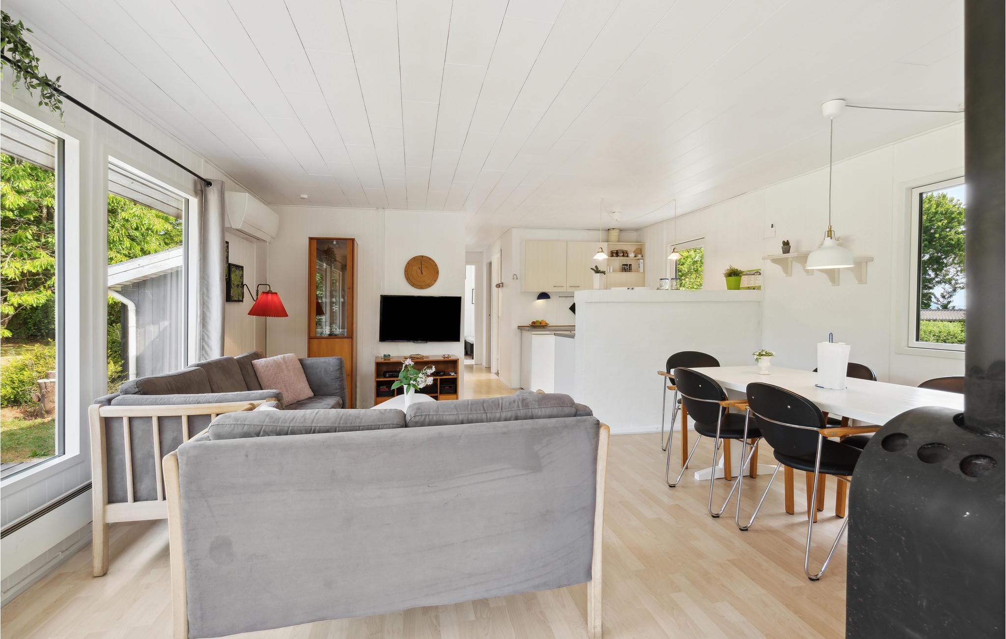 Velkommen til dette dejligt beliggende feriehus med en privat have tæt ved vandet. Der er lyst og venligt, og huset byder på en hjemlig atmosfære. De velplacerede vinduer sørger for, at I føler jer helt tæt på naturen, og stuen bliver hurtigt familiens samlingspunkt med sjove fælles aktiviteter. Sæt jer godt til rette på sofaen efter en begivenhedsrig dag og se jeres yndlingsserie eller den længe ventede film. På terrassen og i haven kan I nyde solen i fred og ro, endelig læse en god bog igen eller glæde hele familien med lækker mad fra grillen. Gå til den dejlige Hvidbjerg Strand og spring i vandet!