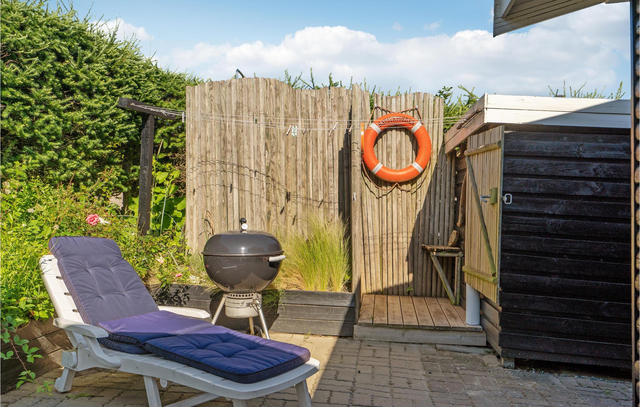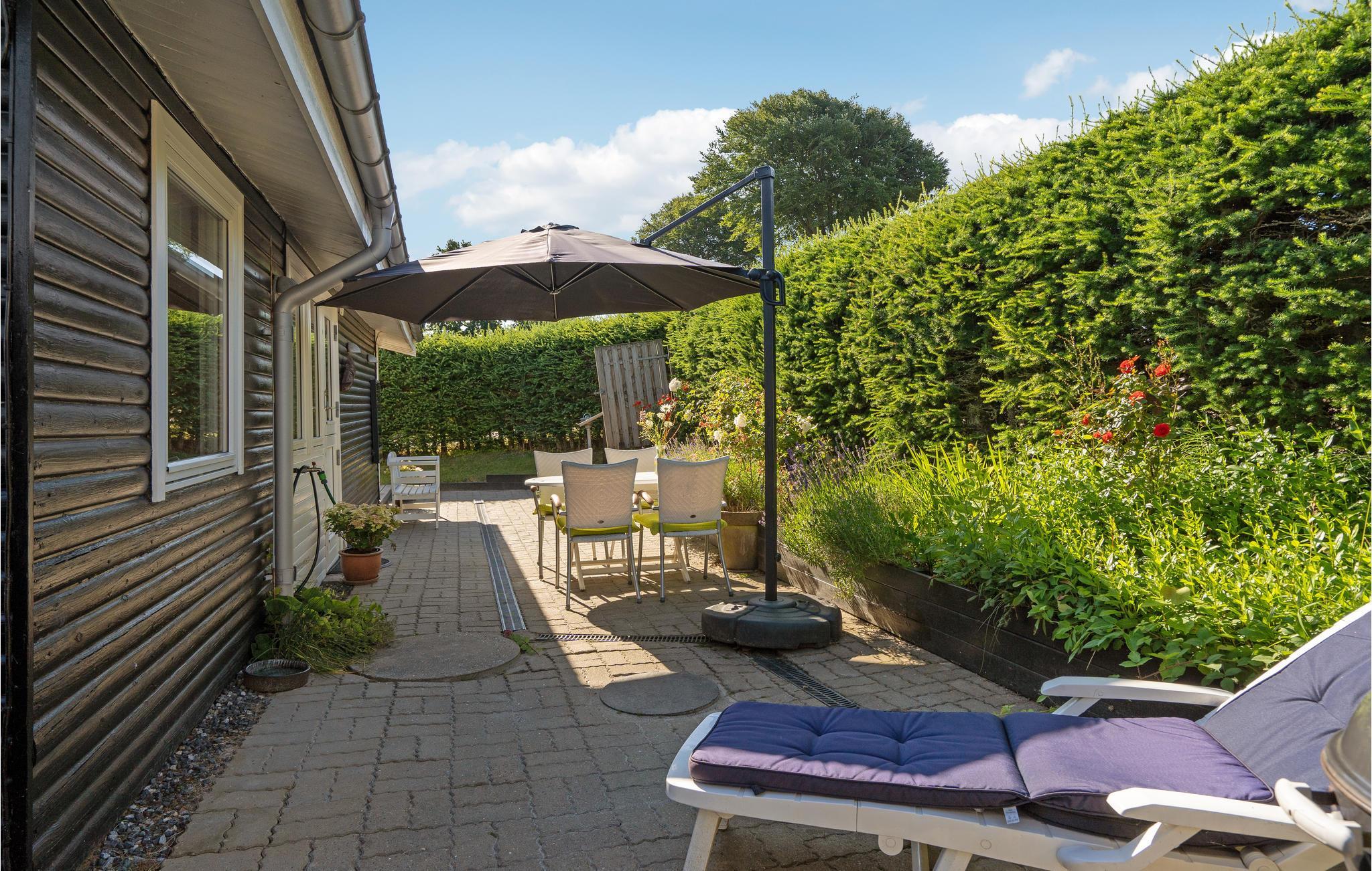 Dette feriehus ligger på en charmerende lille bakketop med en smuk udsigt over den sydlige del af Vejle Fjord. Huset byder på en lys og hjemlig atmosfære, og det store vinduesparti i stuen lukker en masse dagslys ind og skaber en følelse af harmoni. Nyd såvel dejlige familiemåltider med udsigt over vandet som også solnedgangen i den tilstødende hyggekrog med rattanmøbler. Sæt jer godt til rette på sofaen efter en begivenhedsrig dag og se en god film. Der er flere dejlige steder på grunden, hvor I kan nyde hyggelige timer. Nyd en kop kaffe på terrassen, når I kommer tilbage fra stranden. Inden da kan I skylle sandet af under den udendørs bruser. Mærk ferielykken strømme igennem jer, når I sidder i strandkurven. Lige om lidt breder duften af sydende grillmad sig rundt i haven. I morgen kan I gå ned til stranden.