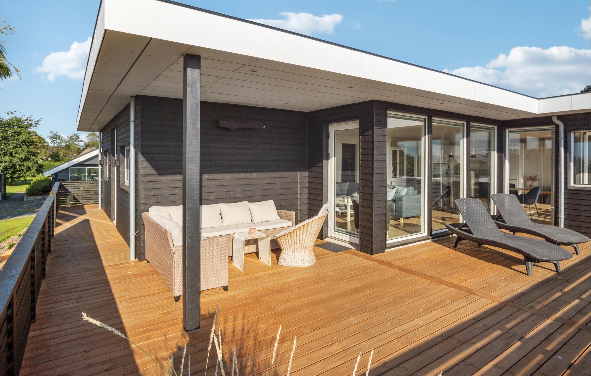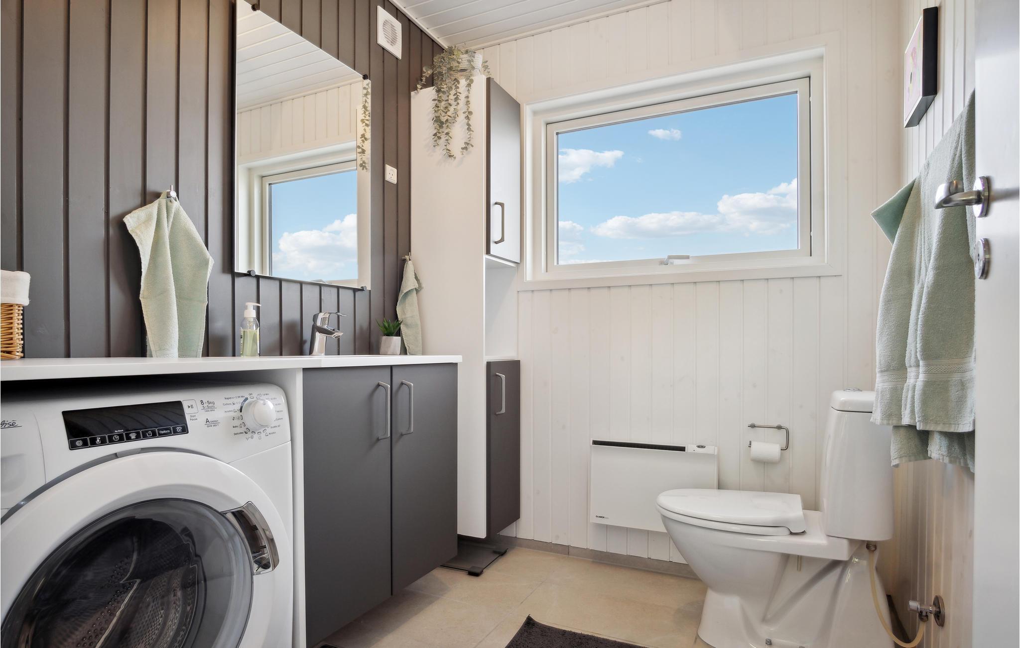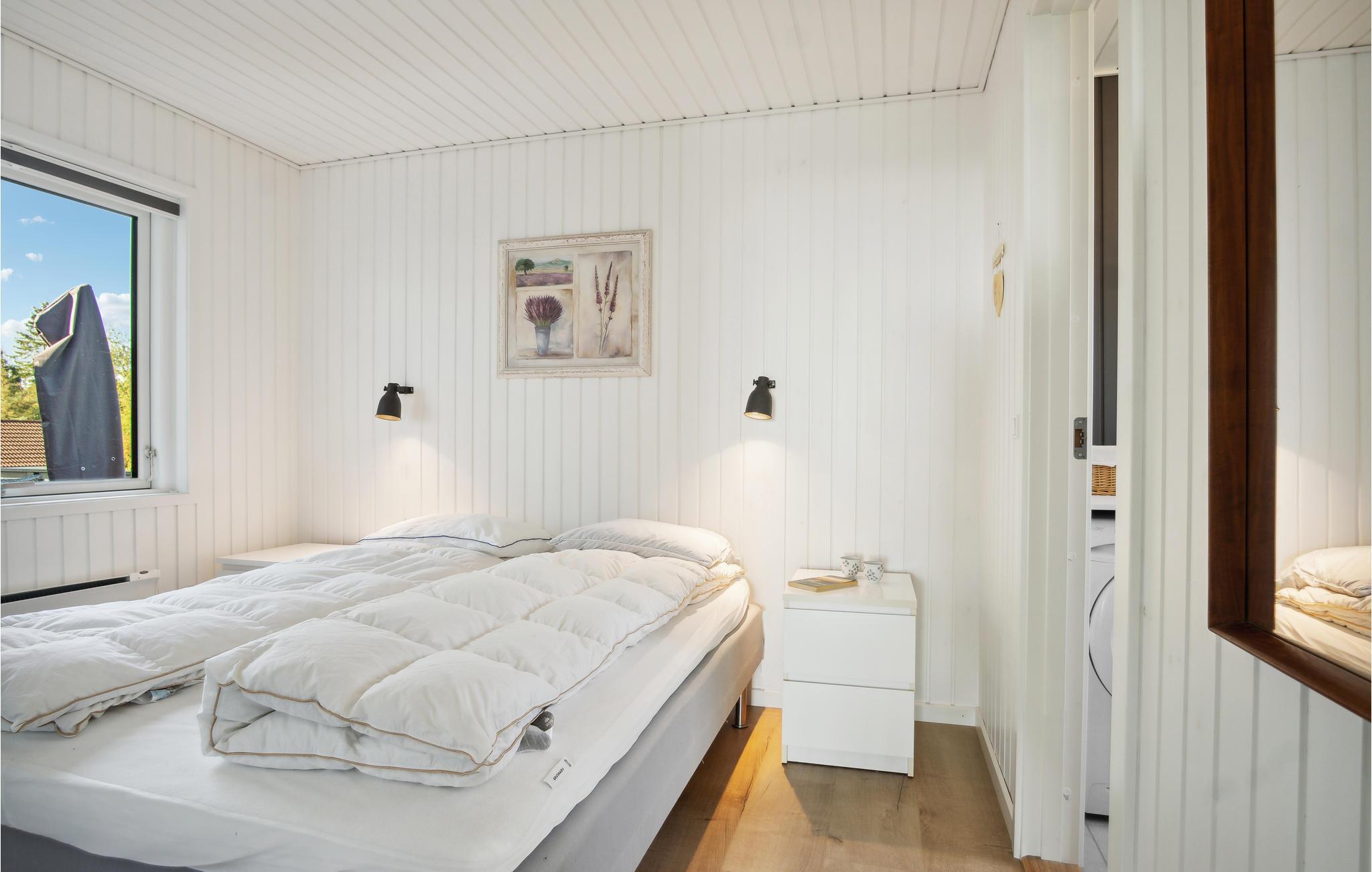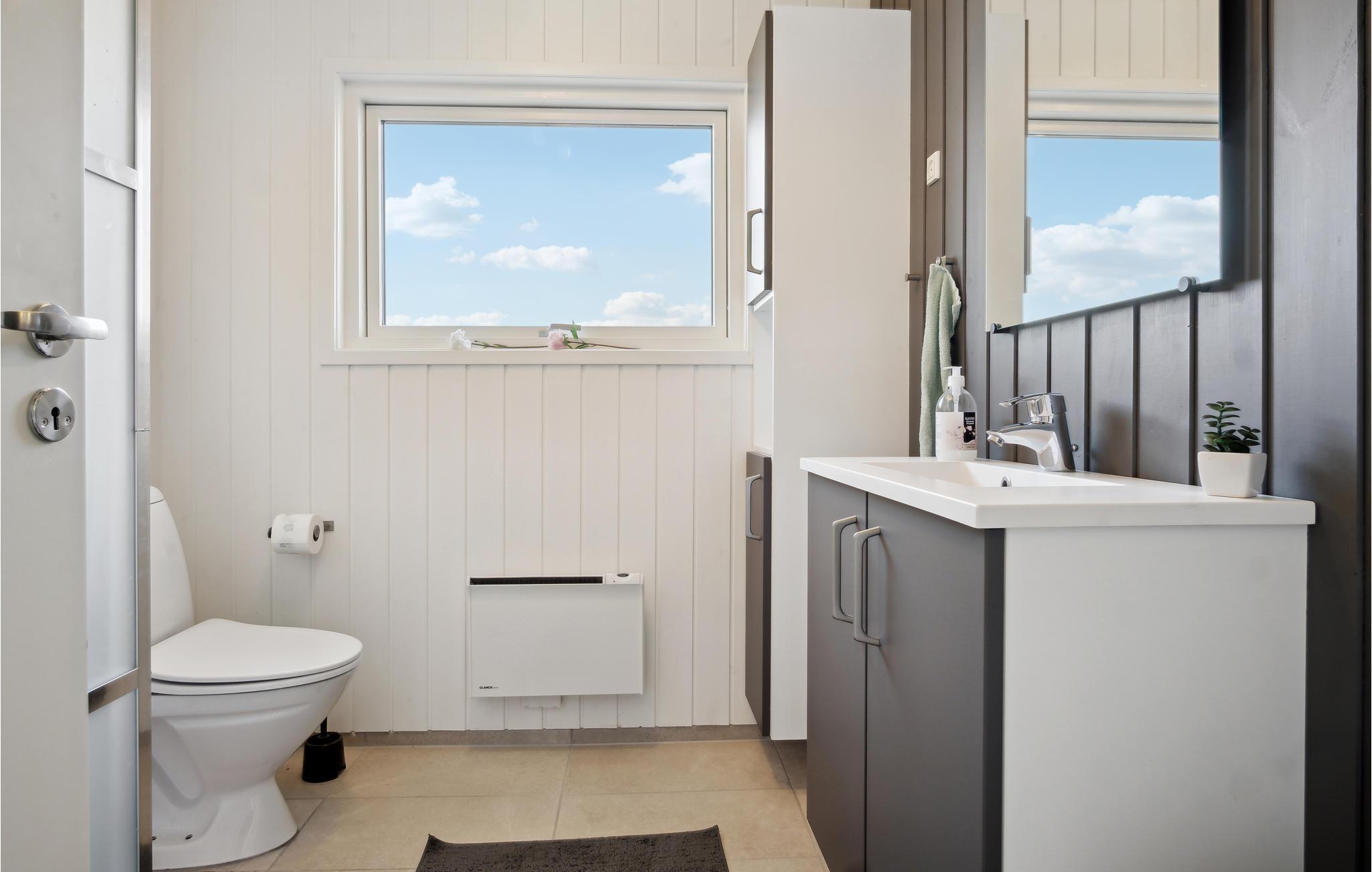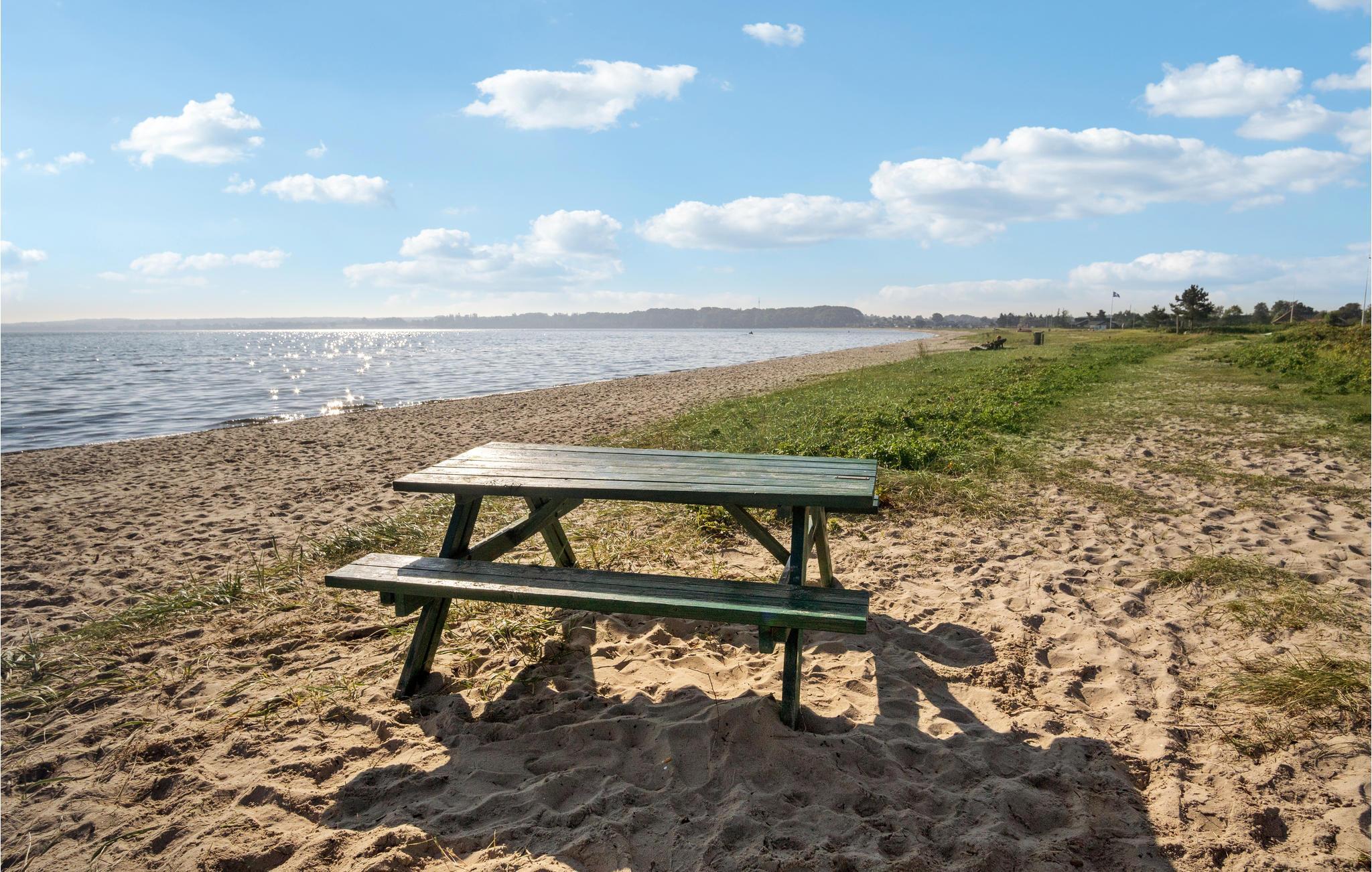 Her kan I slappe af med udsigt over fjorden. Det er sikkert en drøm, der bliver til virkelighed. Der er kun få skridt til stranden, så badeglæde og naturoplevelser kommer I ikke til at gå glip af på jeres ferie. I den stilfulde atmosfære kan hele familien slappe af. De lyse værelser får deres charme fra kontrasten mellem de mørke møbler og det fortryllende dagslys, der kommer ind gennem store panoramavinduer. Hold hyggelige filmaftener og skab en særlig behagelig atmosfære med ild i brændeovnen. Slå jer ned på terrassen og nyd solen og udsigten over vandet. Det perfekte sted for en afstressende tid. Gå en tur til fjorden og nyd en forfriskende dukkert på den børnevenlige strand.