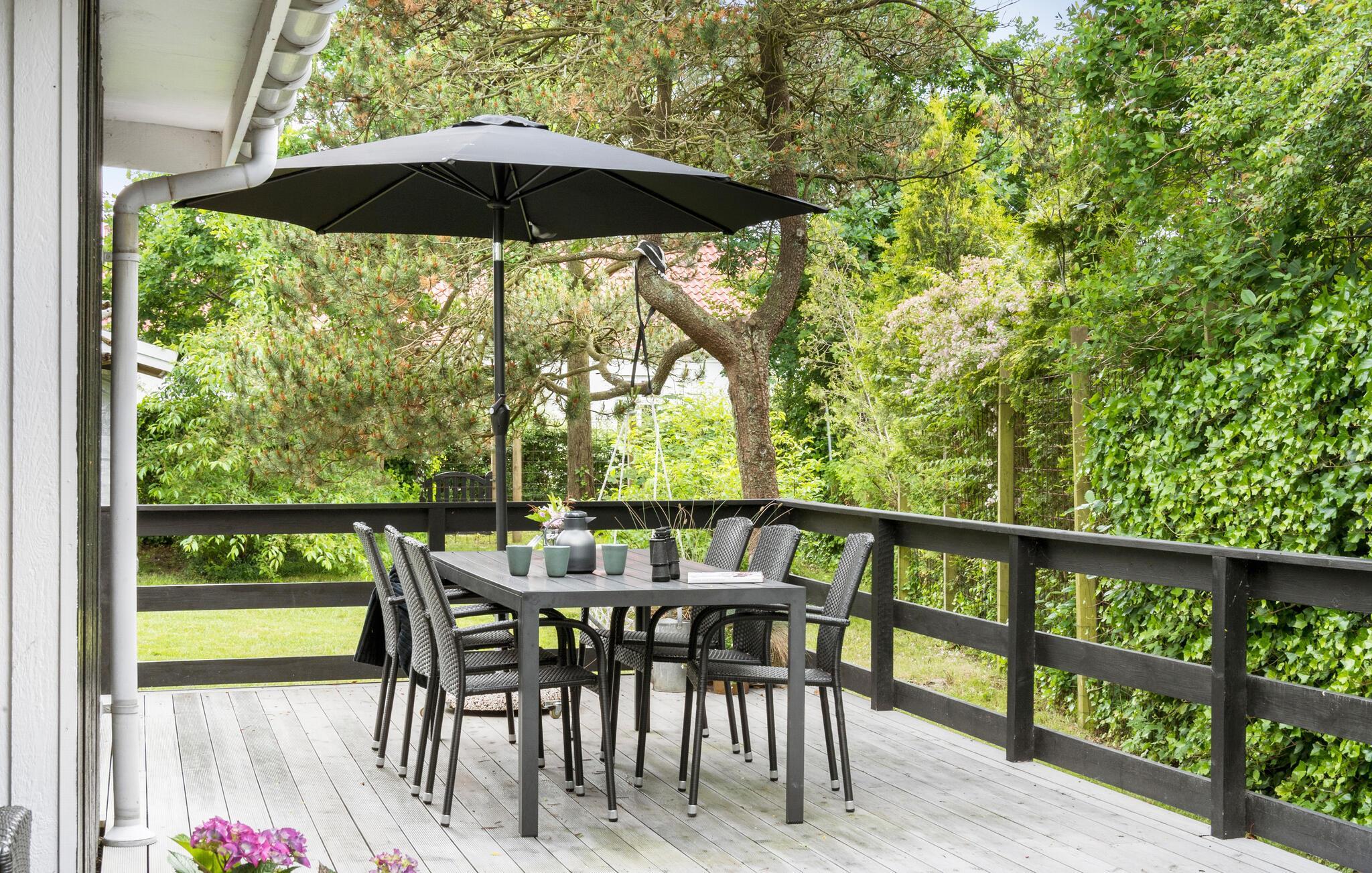 På den rummelige terrasse kan I spise udenfor under parasollen eller blot nyde den friske luft og roen. Huset er smukt beliggende ved Vejle Fjord, hvor I kan tage på lange gåture og nyde forfriskende dage med badning i fjorden. Den nærmeste sandstrand ligger kun et stenkast fra jeres hus. Kør også til Vejle, hvor I kan tage på restaurant eller café og opleve spændende seværdigheder og attraktioner.