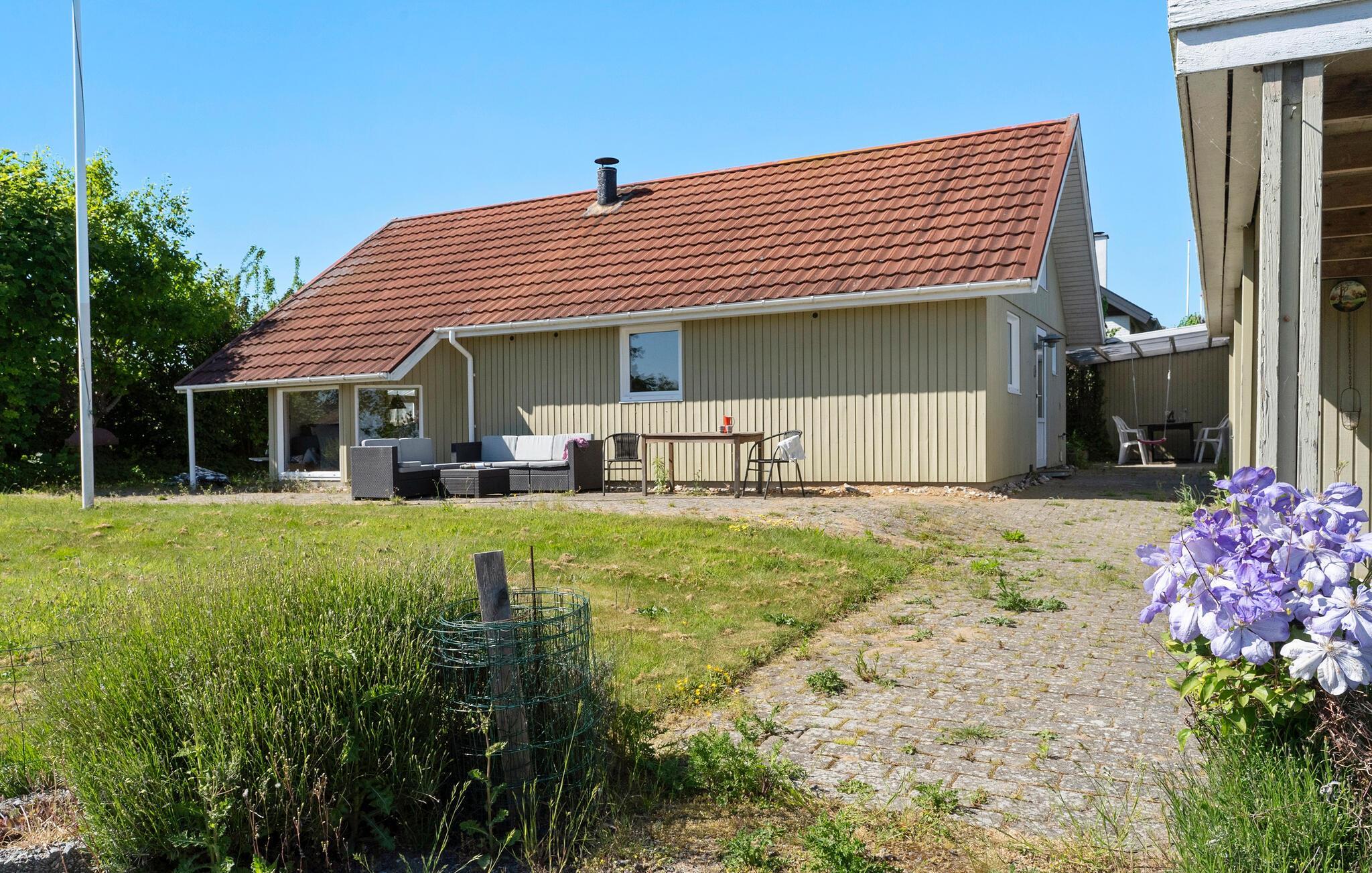 Glæd jer til et afslappende ophold i dette feriehus, som giver jer de bedste betingelser for en ferie med familie eller venner. Huset ligger i rolige omgivelser nær kysten og er noget særligt med en behagelig blanding af komfort og funktionalitet. Træd ind i den åbne stue med højt til loftet, store vinduer og trævæggene, som er smukt fremhævet. Find jer til rette i den komfortable hjørnesofa og læs en spændende bog. Brændeovnen skaber en hyggelig atmosfære på kølige dage. Tilbered jeres måltider i det skønne køkken og nyd dem ved spisebordet med udsigt over den grønne have. En hyggelig hems fuldender rummet.