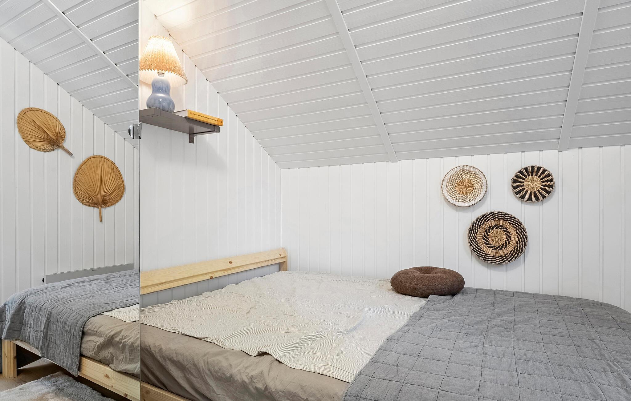 Dette sommerhus i Hvidbjerg kombinerer moderne design med hyggelig bokomfort, ideelt til en pause fra hverdagen. Den åbne stue har en lys stemning, store vinduespartier og masser af dagslys. Nyd udsigten til det grønne direkte fra sofaen eller lad kreativiteten få frit løb, mens I laver mad i det smukke køkken.