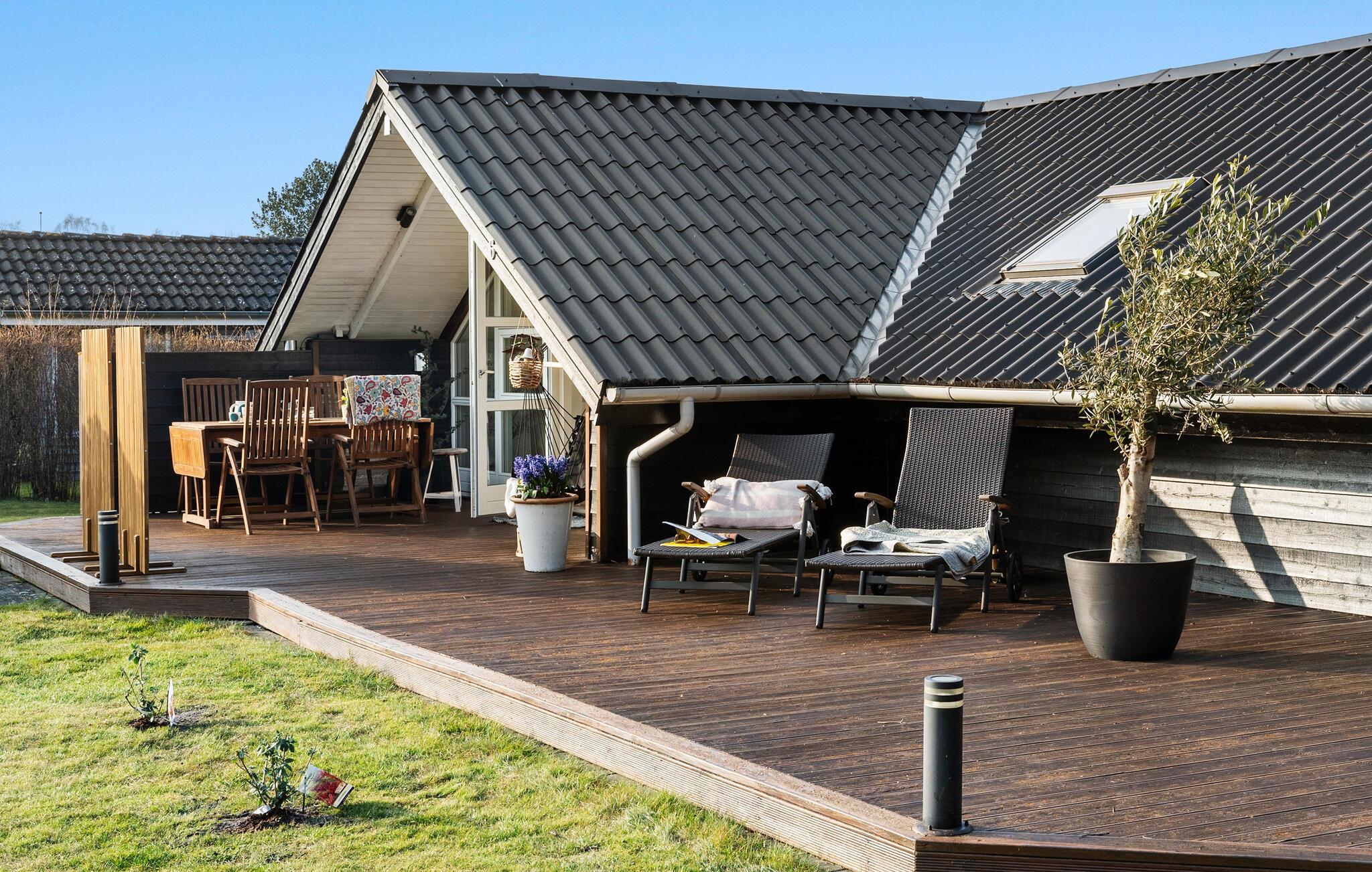 Udenfor er der en rummelig terrasse med masser af siddepladser, ideel til solrige eftermiddage eller milde aftener. Haven giver plads til at dvæle eller få lidt motion i den friske luft. friluftsmennesker nyder at se på fugle eller en frisk brise fra havet.