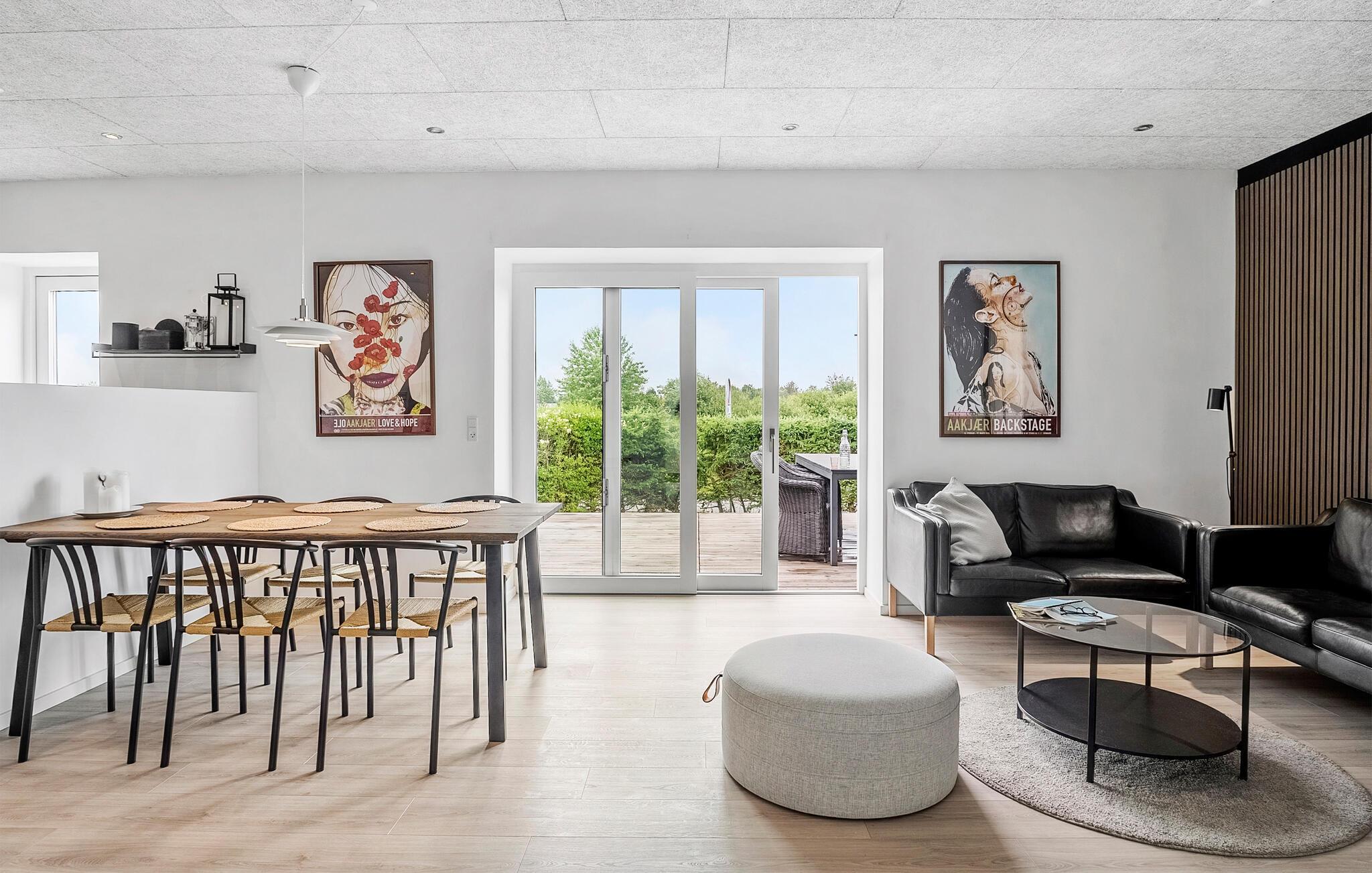 Dette charmerende beliggende hus inviterer jer til en afslappende ferie omgivet af natur. Lyse værelser, hyggelige møbler med et naturligt trælook og en pejs skaber en hyggelig og behagelig atmosfære. Forkæl jer selv med et godt glas vin i den indbydende sofa, eller afhold en sjov filmaften.
