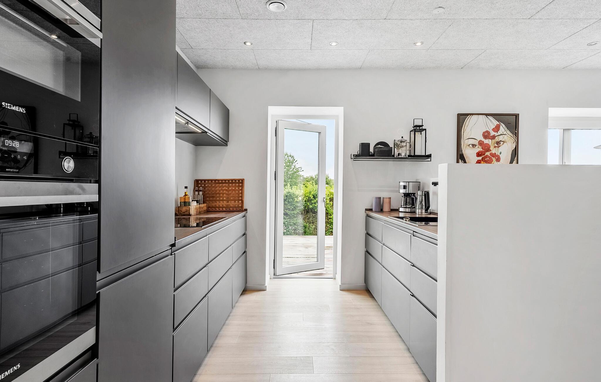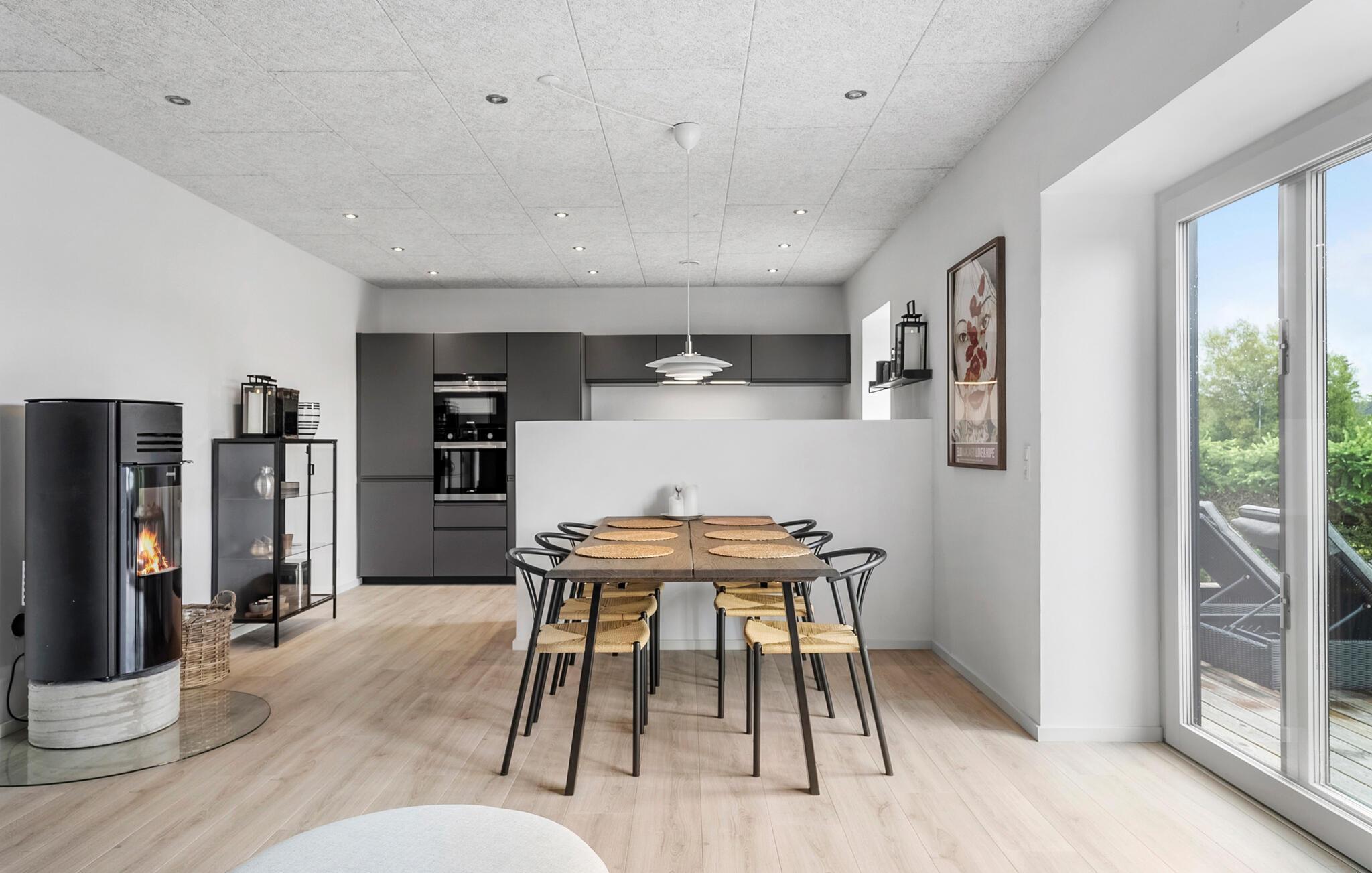 I solskinsvejr inviterer træterrassen jer til at tilbringe tid udenfor. Nyd en afslappet kop kaffe eller te, fordyb jer i jeres feriebøger, eller snup en eftermiddagslur på liggestolene. Om aftenen kan I tilberede en saftig bøf og grøntsager på grillen og slutte aftenen af med at slappe af under aftenhimlen.
