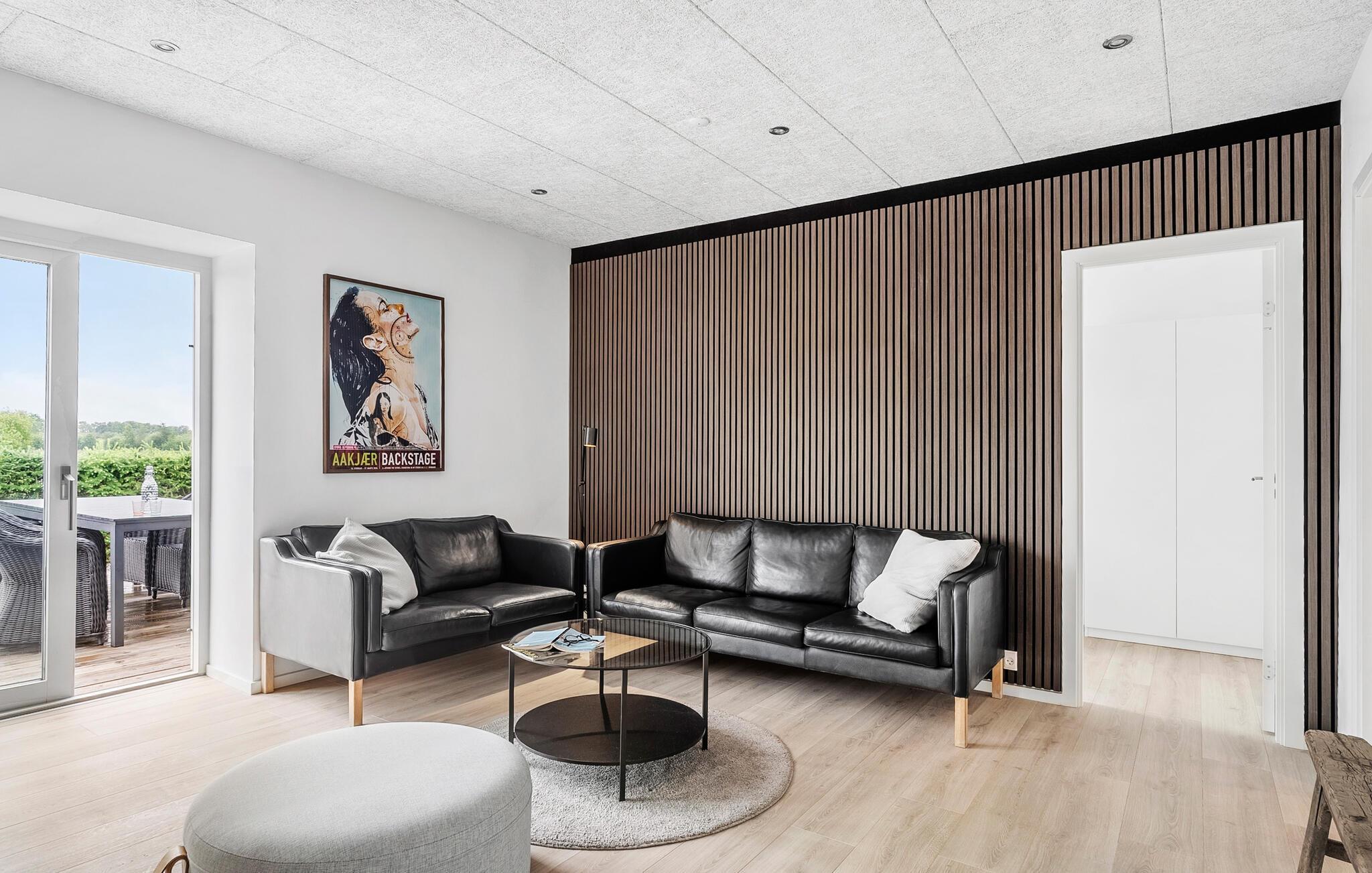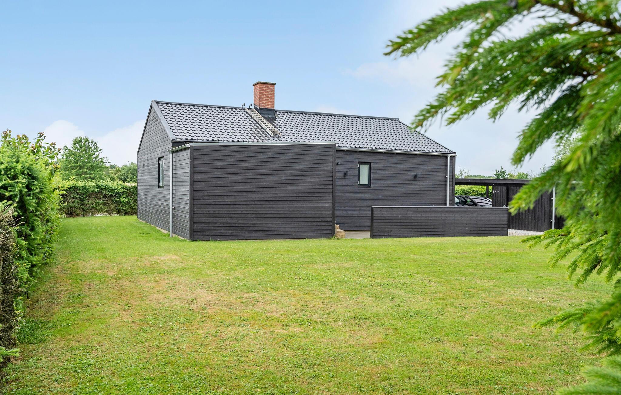 Hyggeligt feriehus med pejs og terrasse tæt på Vejle Fjord og strand, ideelt til afslapning i naturskønne omgivelser.
