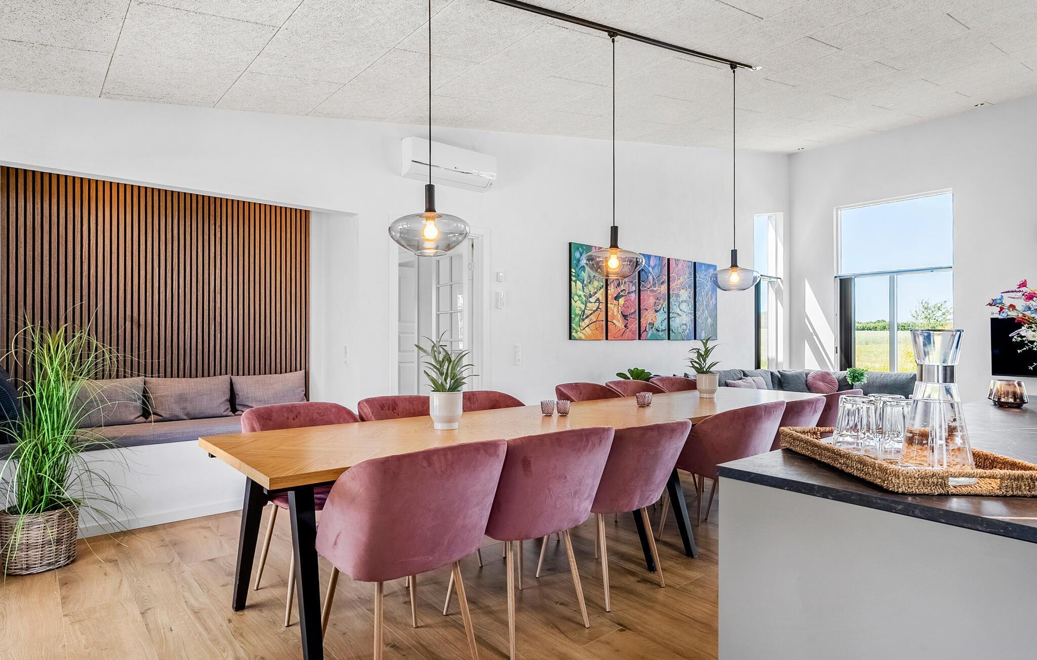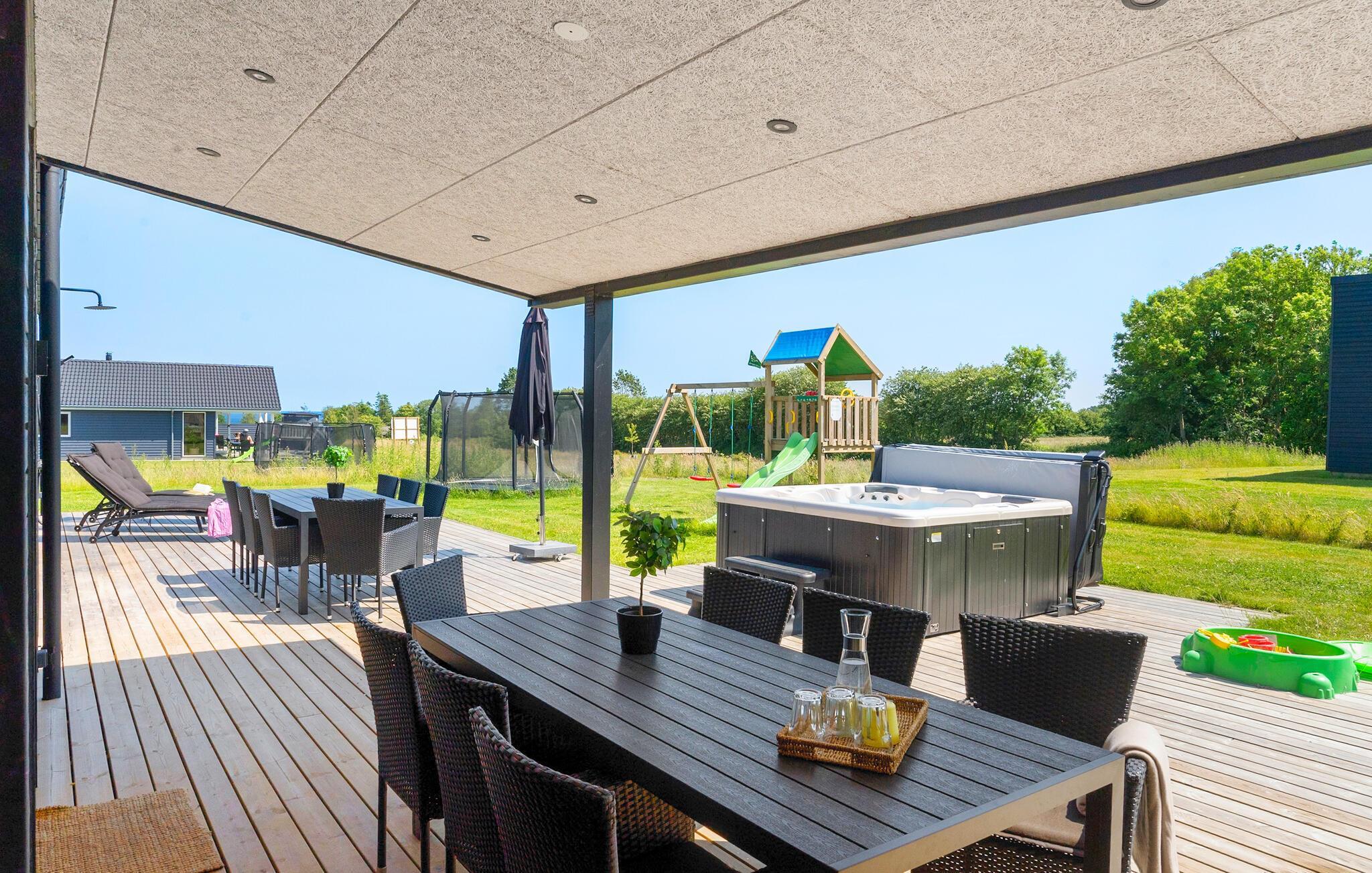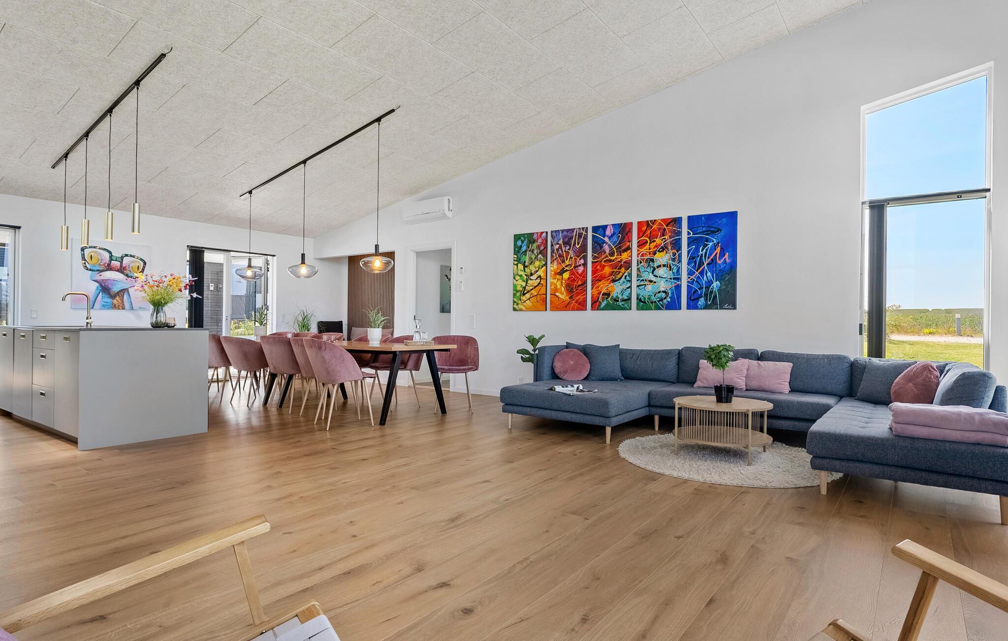 Moderne faciliteter og kort afstand til havet ... Dette rummelige hus lægger op til en helt særlig ferie, hvor I ikke kommer til at mangle noget. Her kan I læne jer tilbage i stilfulde rammer og bare koncentrere jer om at holde fri. Der er god plads til fælles aktiviteter og rolige måltider i husets harmoniske interiør. Glæd jer over flotte kvalitetsløsninger både inde og ude og nyd den smukke udsigt gennem gulv til loft-vinduerne.