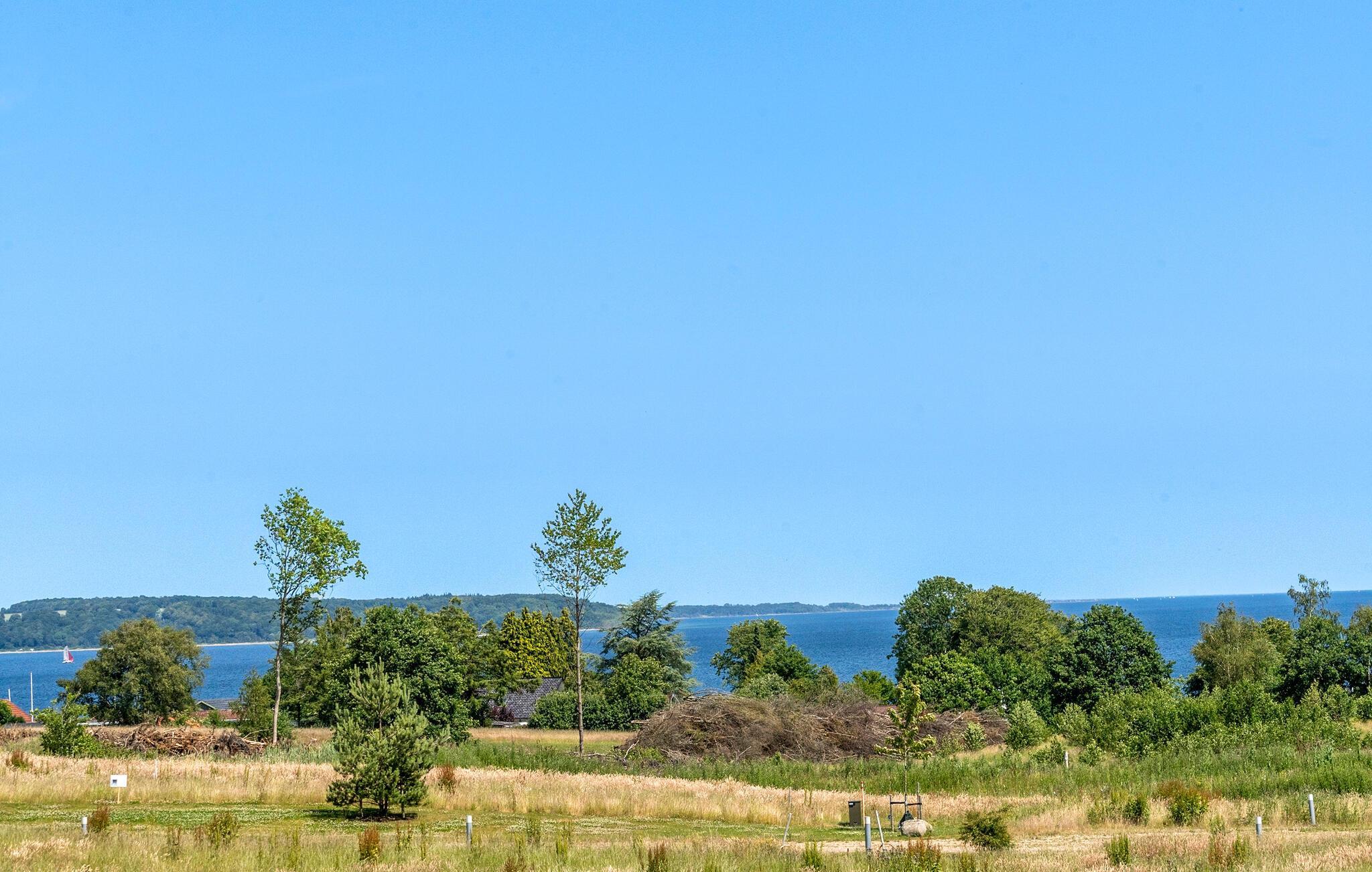 Moderne sommerhus ved Vejle Fjord med wellness, havudsigt og kort afstand til stranden.