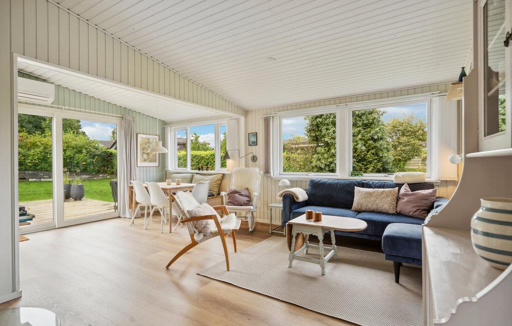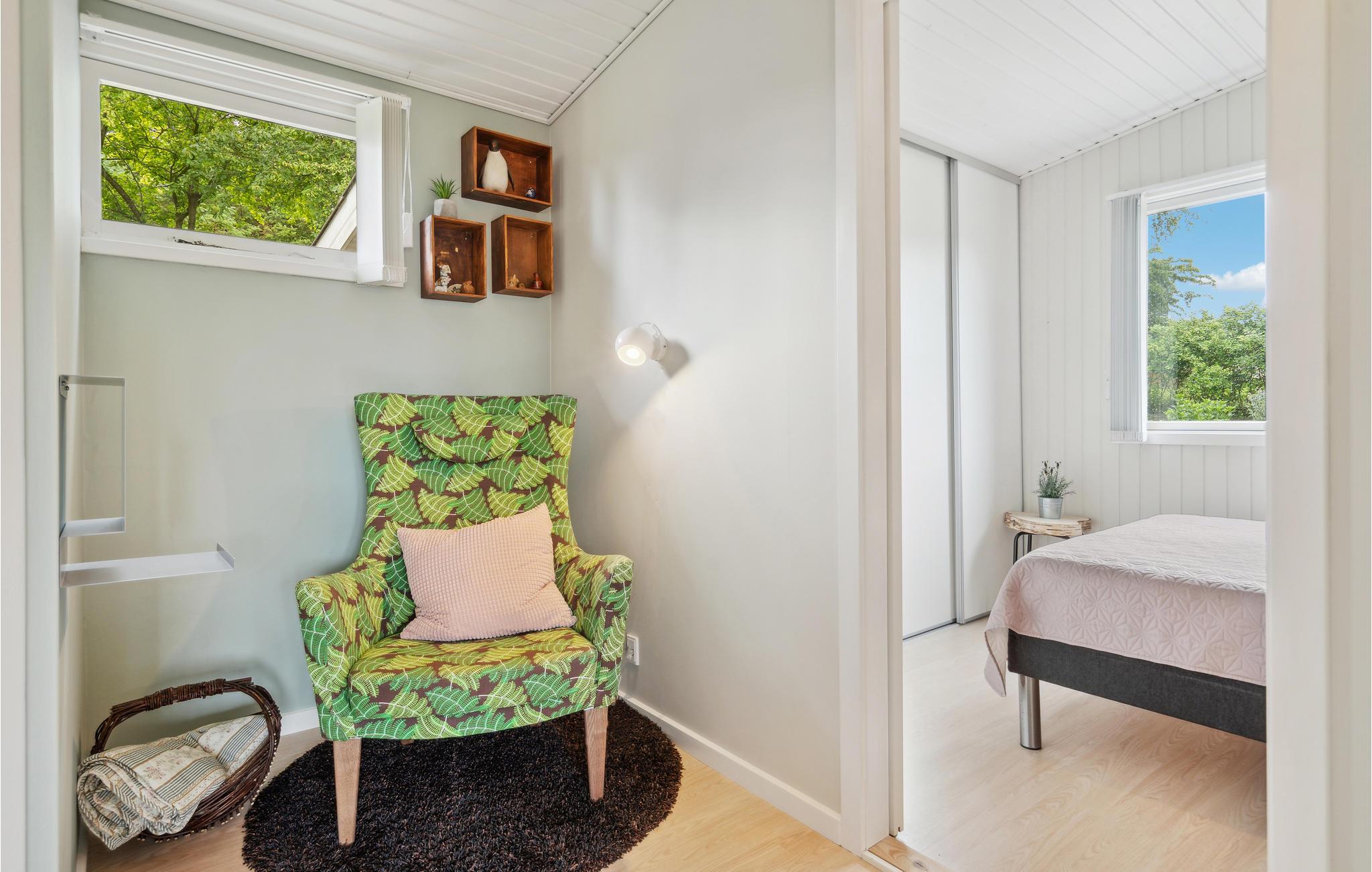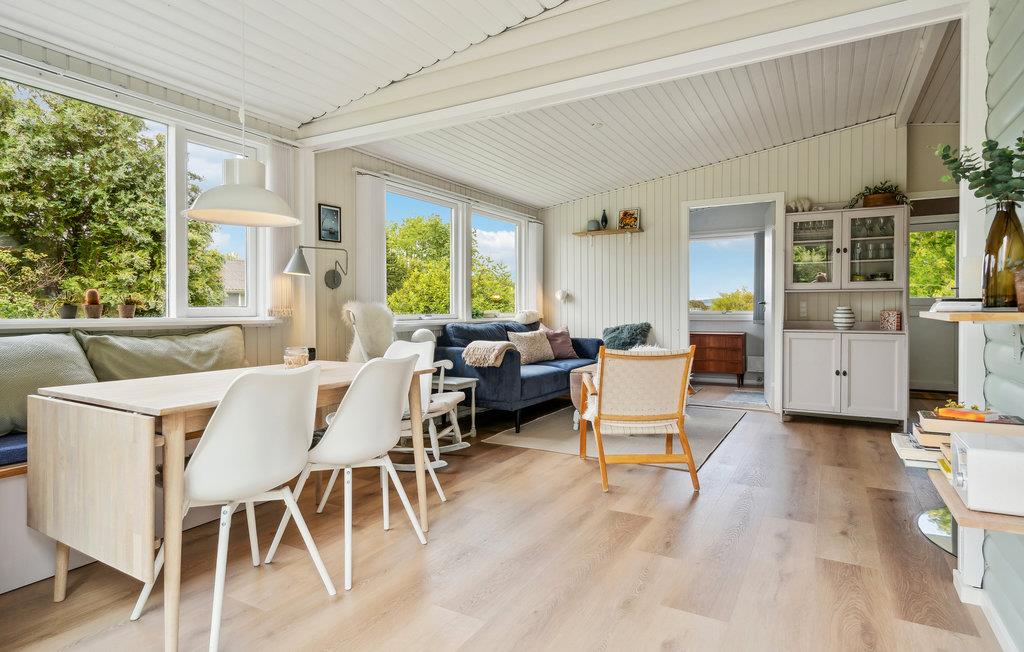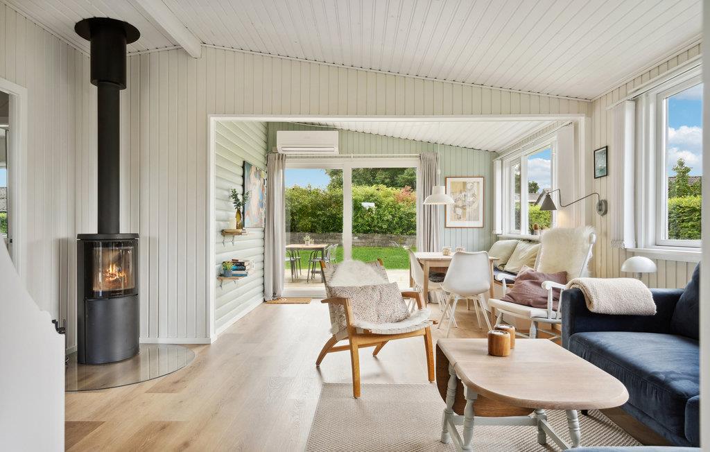 Sommerhuset har et lille, velindrettet køkken, en meget hyggelig stue med både spiseplads og sofa til afslapning og brændeovn, hvis det skulle blive lidt køligt om aftenen. Stilen er lys og skandinavisk med moderne faciliteter, så her er det nemt at slappe af og have det rart. Der er gode terrasser ved huset, hvor I kan nyde solen på de skønne sommerdage.