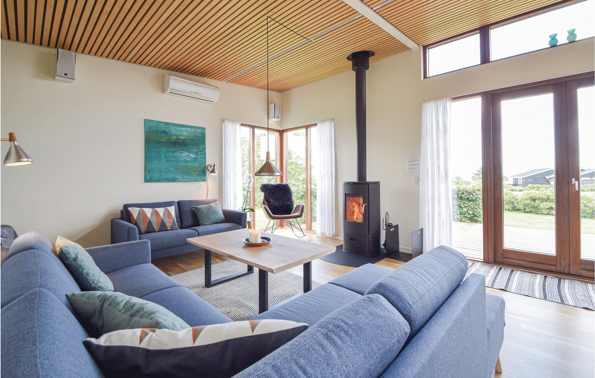 Der er lagt op til en ferie i roligt tempo, for på dette skønne sted står tiden næsten stille. Dette hus emmer af kvalitet og har direkte udsigt til Vejle Fjord, så roen og feriestemningen kommer helt af sig selv. Læn jer godt tilbage i dagligstuens sofaer og mærk varmen fra brændeovnen efter en lang gåtur på stranden. I køkkenet kan I gøre klar til den store lækre feriemiddag, mens der spilles brætspil i stuen. Hvis I vil skrue lidt ekstra op for forkælelsen, kan I sætte jer til rette i spaen på badeværelset.