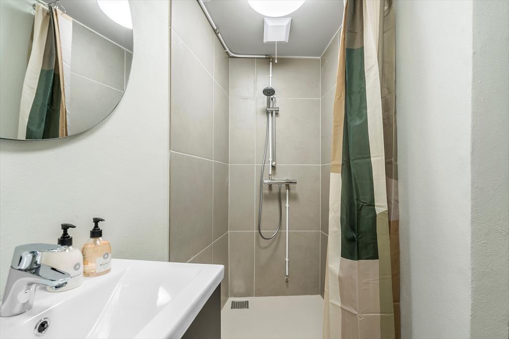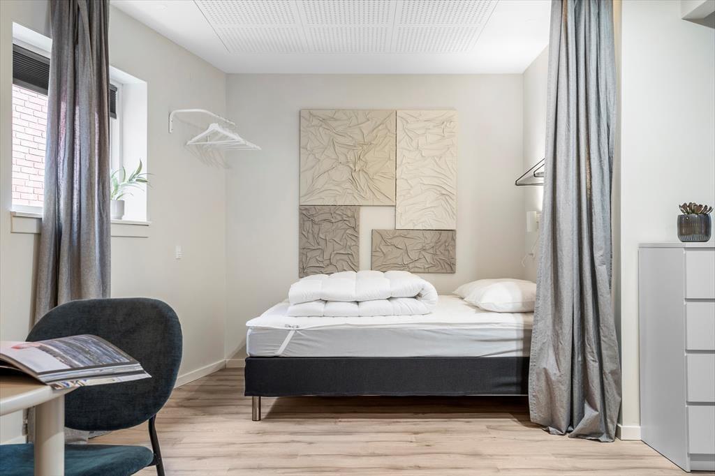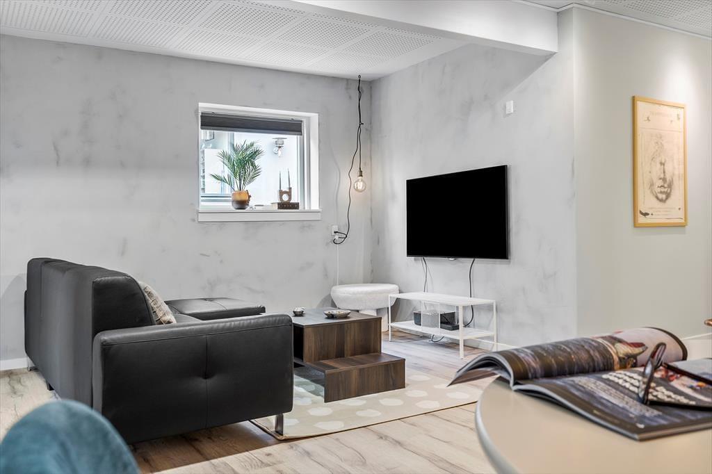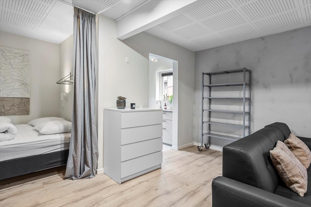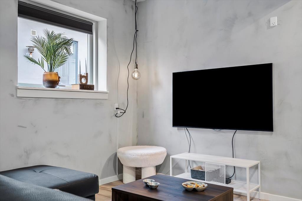 Lejligheden er hyggeligt indrettet med en lys og indbydende atmosfære. I forlængelse af stuen finder du en dobbeltseng, der er afskærmet med et forhæng, så du kan nyde en god nats søvn efter en dag fuld af oplevelser. Køkkenet er praktisk og udstyret med både ovn og kogeplader, så du har mulighed for at tilberede dine måltider hjemme – men du kan selvfølgelig også vælge at spise ude på en af byens mange gode restauranter. Efter en lang dag kan du slappe af i sofaen med en god bog eller en film, mens du lytter til lyden af byen, der langsomt falder til ro. Her er der skabt en atmosfære af afslapning og komfort, så du kan føle dig hjemme fra første øjeblik.