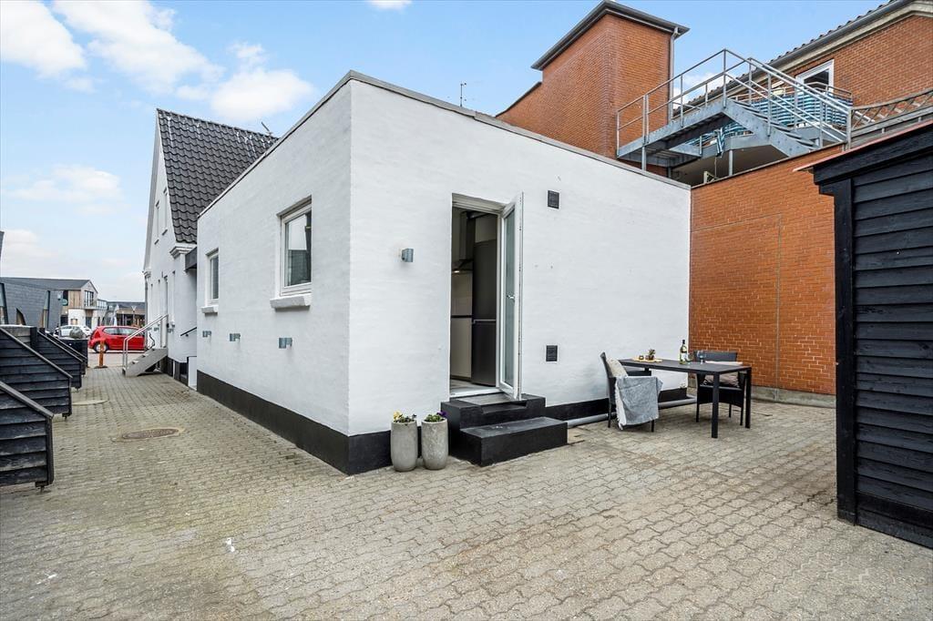 Den hyggelige gårdhave er et skønt sted at nyde en kop morgenkaffe eller et glas vin om aftenen. Her kan du sidde i ro og mag, mens du mærker den friske havluft og lytter til mågernes kalden i det fjerne. Med havemøbler til rådighed kan du nemt slå dig ned og nyde en stille stund under åben himmel. I gården forefindes også et åbent skur, hvor cyklen kan stå i tørvejr. Hvis du foretrækker at tage ud, ligger både havnen og fjorden i kort gåafstand, hvor du kan nyde en frisk spadseretur langs vandet eller måske endda prøve kræfter med vandsport som kajak eller windsurfing. Hvide Sande er kendt for sin livlige havnestemning, og du vil hurtigt føle dig som en del af det autentiske miljø, hvor fiskekuttere og surfere deler pladsen ved vandkanten.