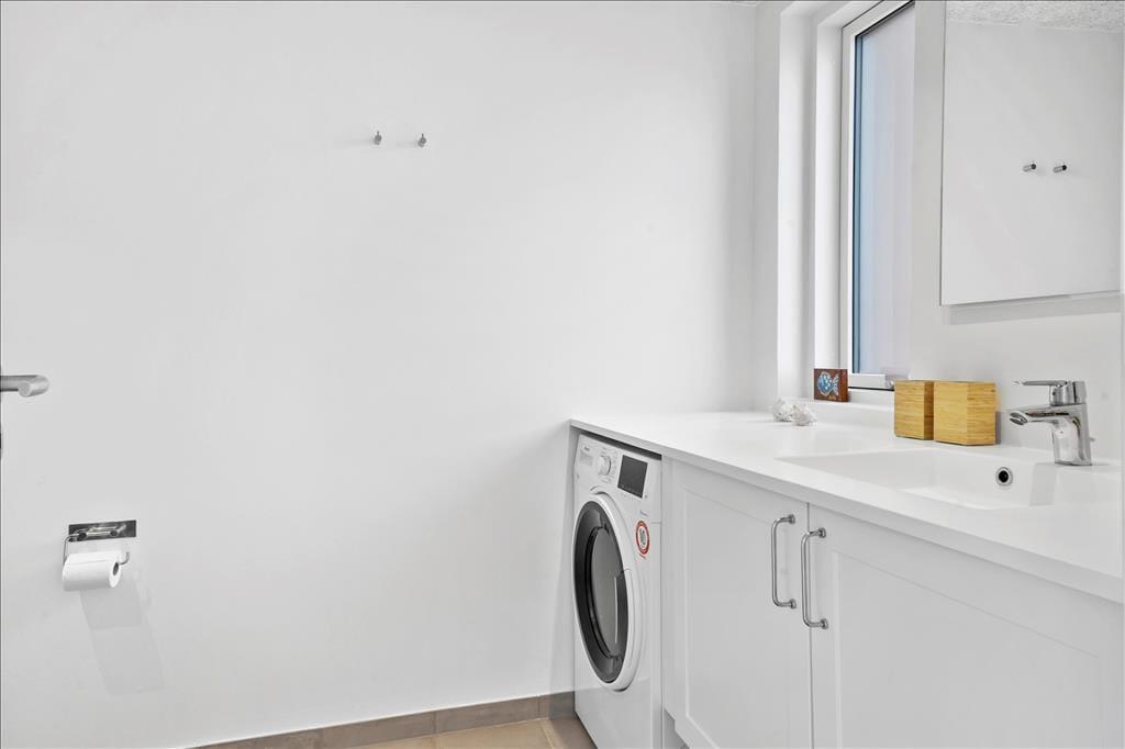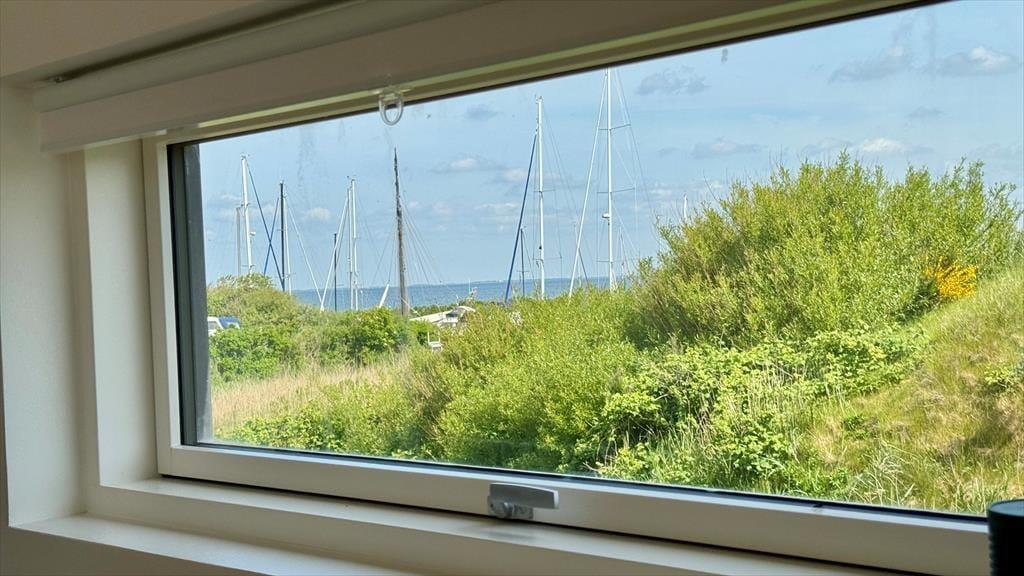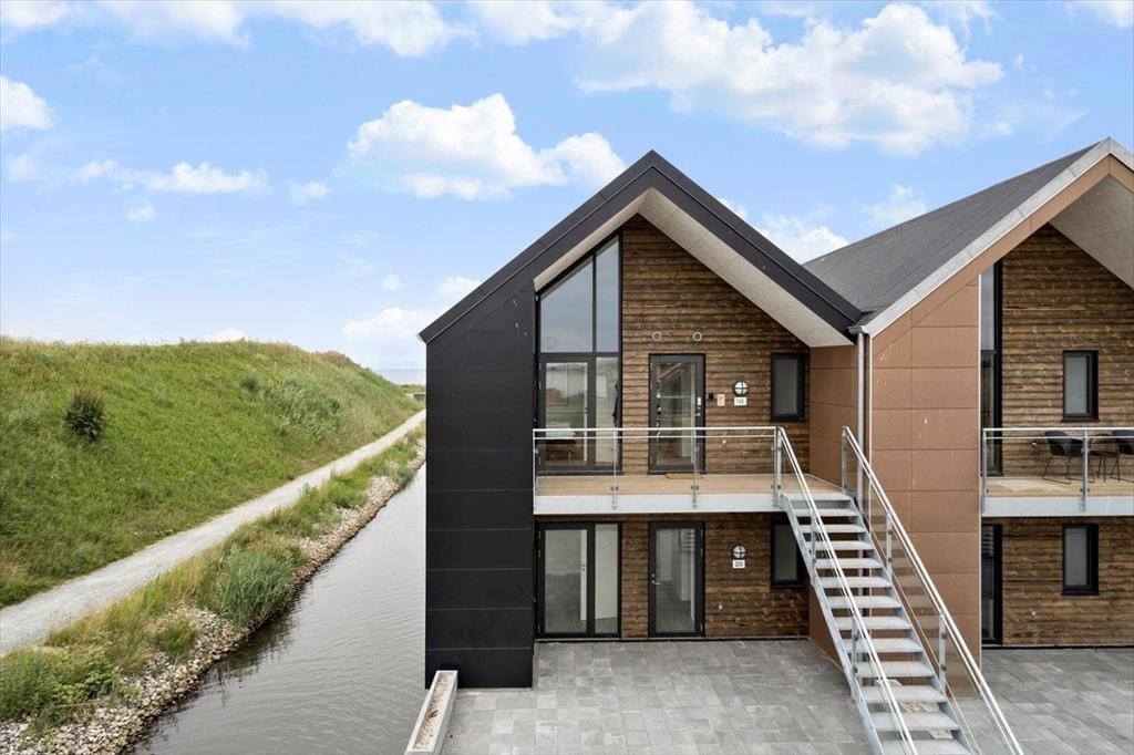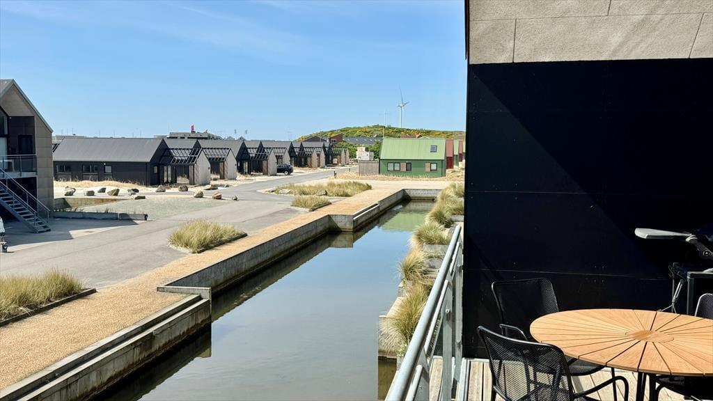 Ude i det fri hører der en parkeringsplads med til lejligheden og hele to overdækkede altaner. Den ene altan ligger i forbindelse med trappeopgangen, og her kan I sidde i solen sidst på dagen, mens I kigger ned på livet, der udspiller sig ved og på vandet. Kanaludsigten er også skøn fra den sydvendte altan, og her har I ovenikøbet kig til Ringkøbing Fjord.