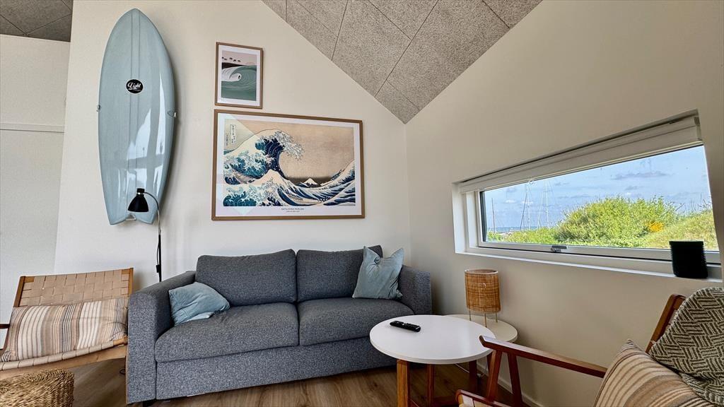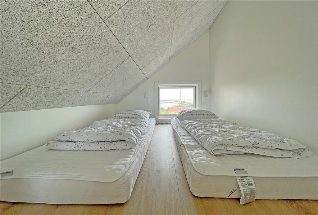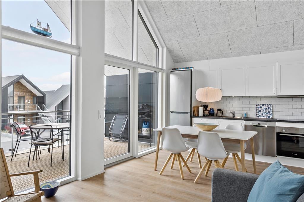 Der er meget at se og opleve i Hvide Sande og omegn – men det kan nu anbefales at sætte en del tid af til afslapning og hygge inden døre i lejligheden, der ligger på første sal. Atmosfæren er lys og luftig takket være de store vinduespartier og loftet, der går helt til kip. Det moderne møblement passer godt til arkitekturen, og med et lækkert åbent køkken, et flot badeværelse og et dejligt soveværelse er der taget højde for både funktionalitet og komfort. Fra køkkenet har I adgang til en hems, der med et lille vindue og kig til stuen fungerer som en hyggelig soveplads for både børn og voksne.
