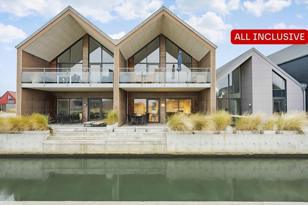 Fra opholdsrummet er der direkte adgang til en sydvendt terrasse, der har sol dagen lang og god plads til grillen, et terrassebord og solsenge. Terrassen, der ligger i læ fra huset og læmurene, støder direkte ud til kanalens vand, som sammen med udsigten giver en skøn, maritim atmosfære. På husets modsatte side findes yderligere en nordvendt terrasse, og heromme er der også parkering lige ved døren.