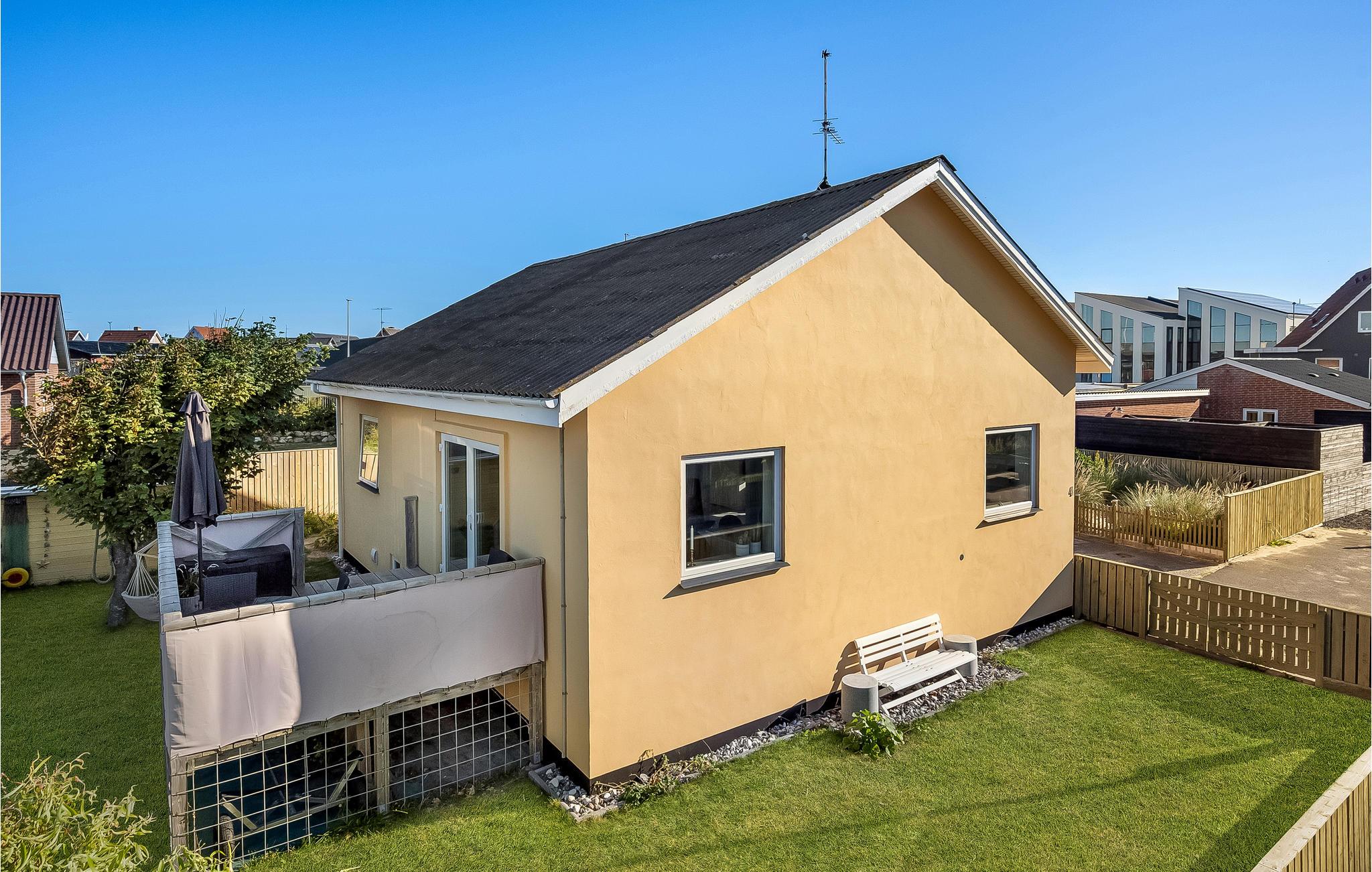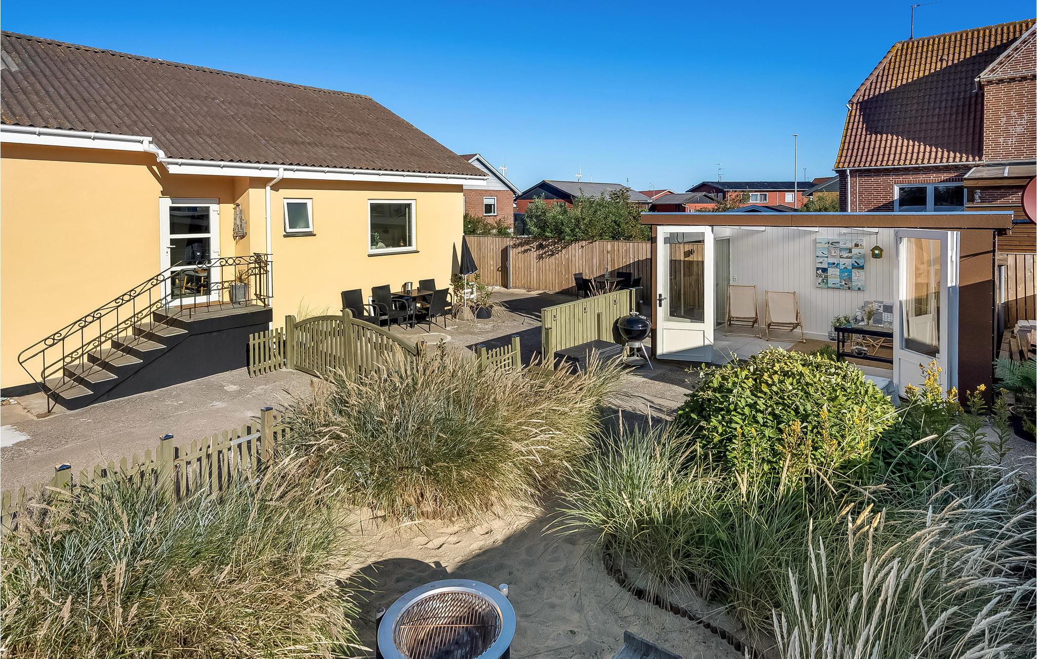 Hyggeligt familievenligt byhus i Hvide Sande med udsigt til klitterne og tæt på strand, havn og byliv.