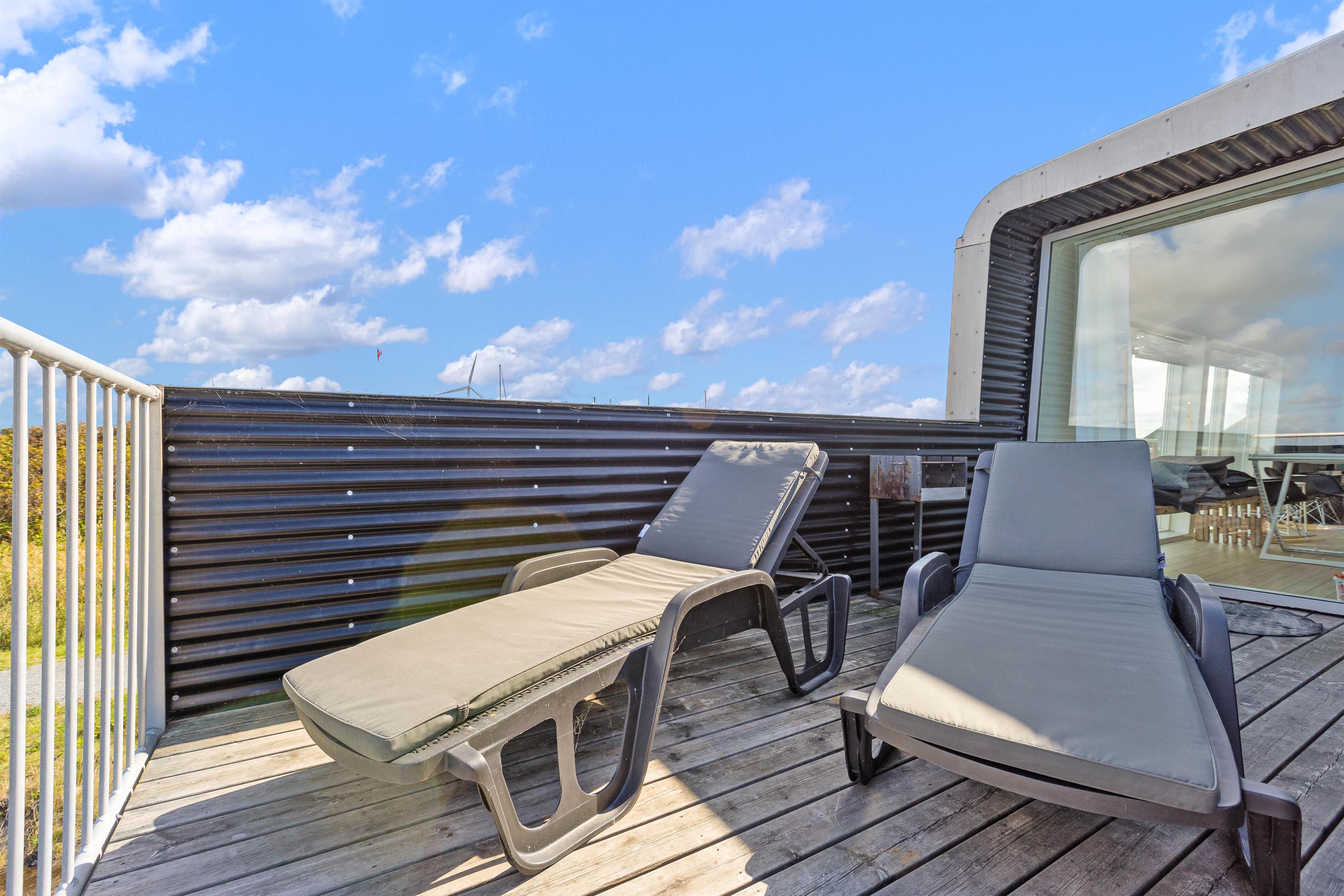 Derudover har du også to terrasser, så du kan sidde ude og nyde den friske luft og måske et par grillaftener. Herfra har du også et godt overblik og indsejlingen og livet på den hyggelige fjordhavn, hvor husbåden er lagt til.