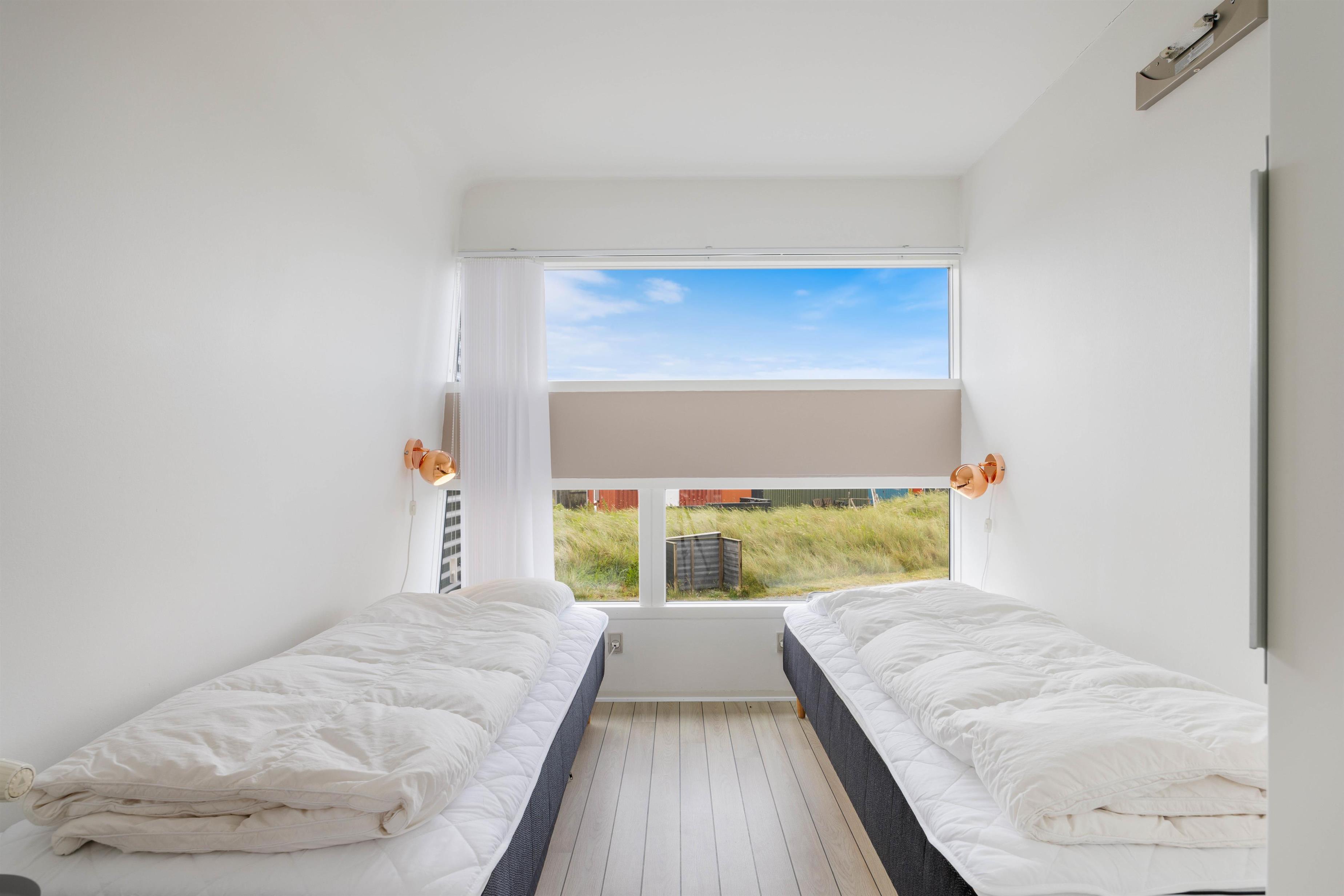 Ovenpå finder du yderligere to soverum samt en hyggelig og rummelig stue, hvor du om aftenerne kan hygge dig med ild i brændeovnen, tændte stearinlys og den smukke udsigt over fjorden.