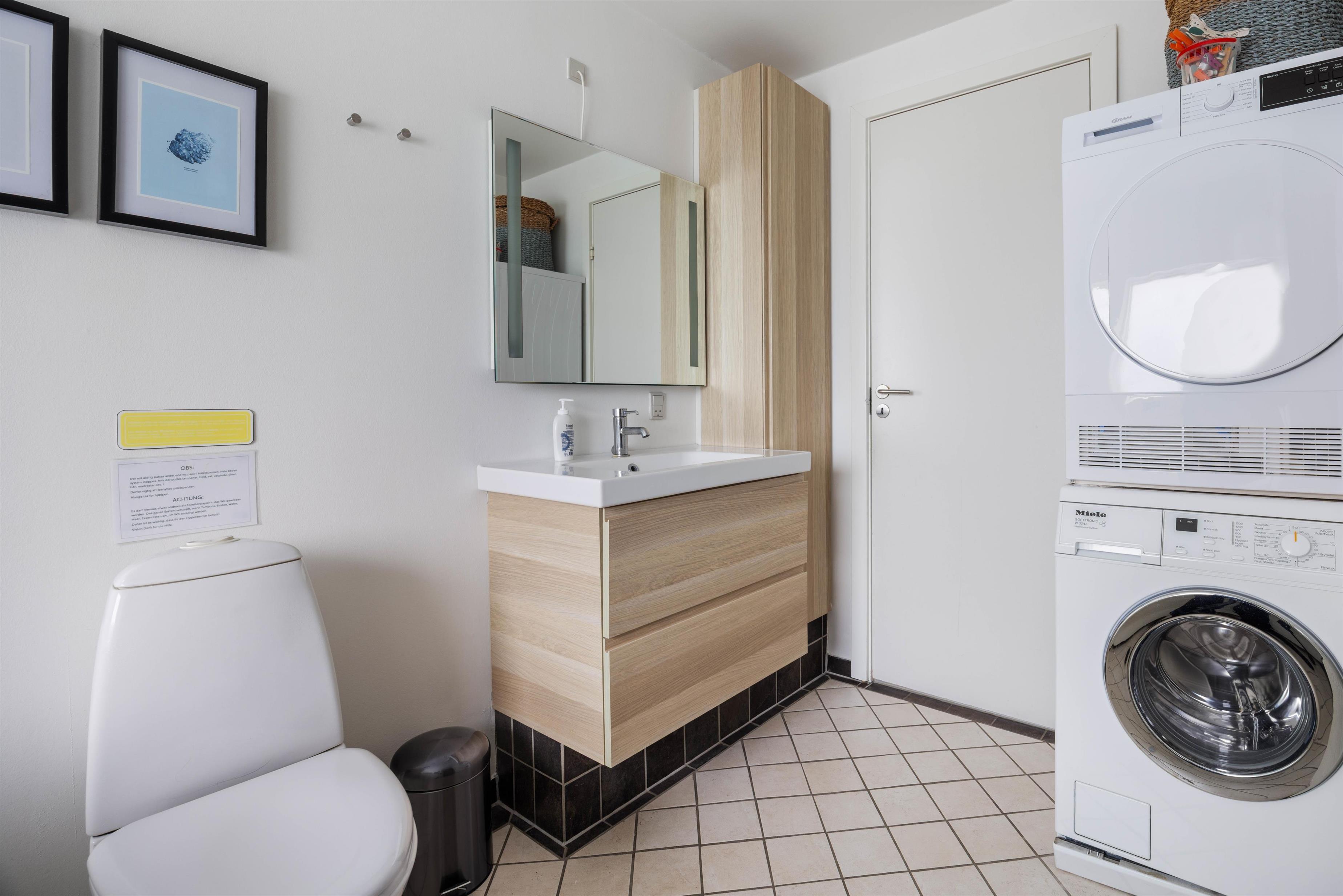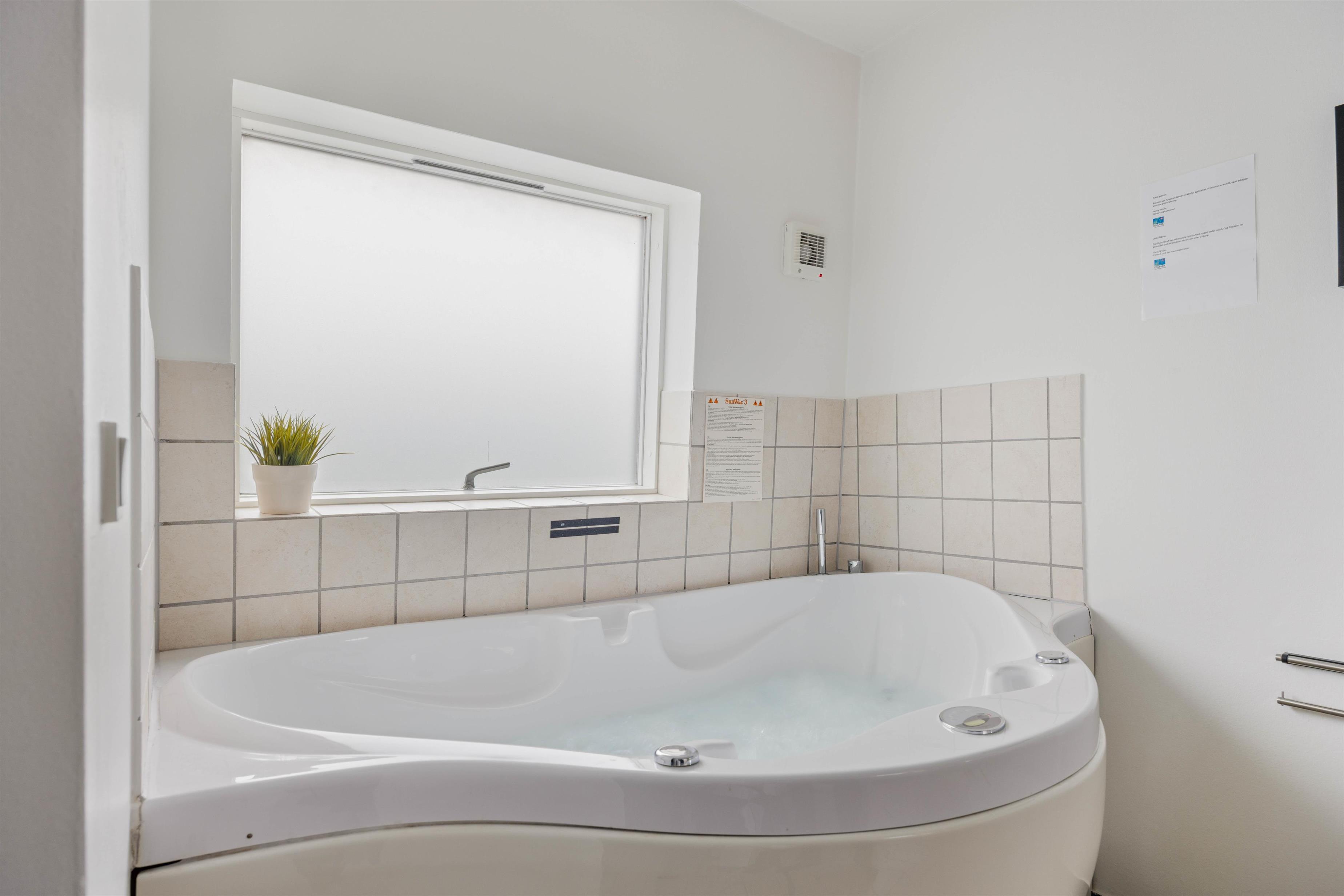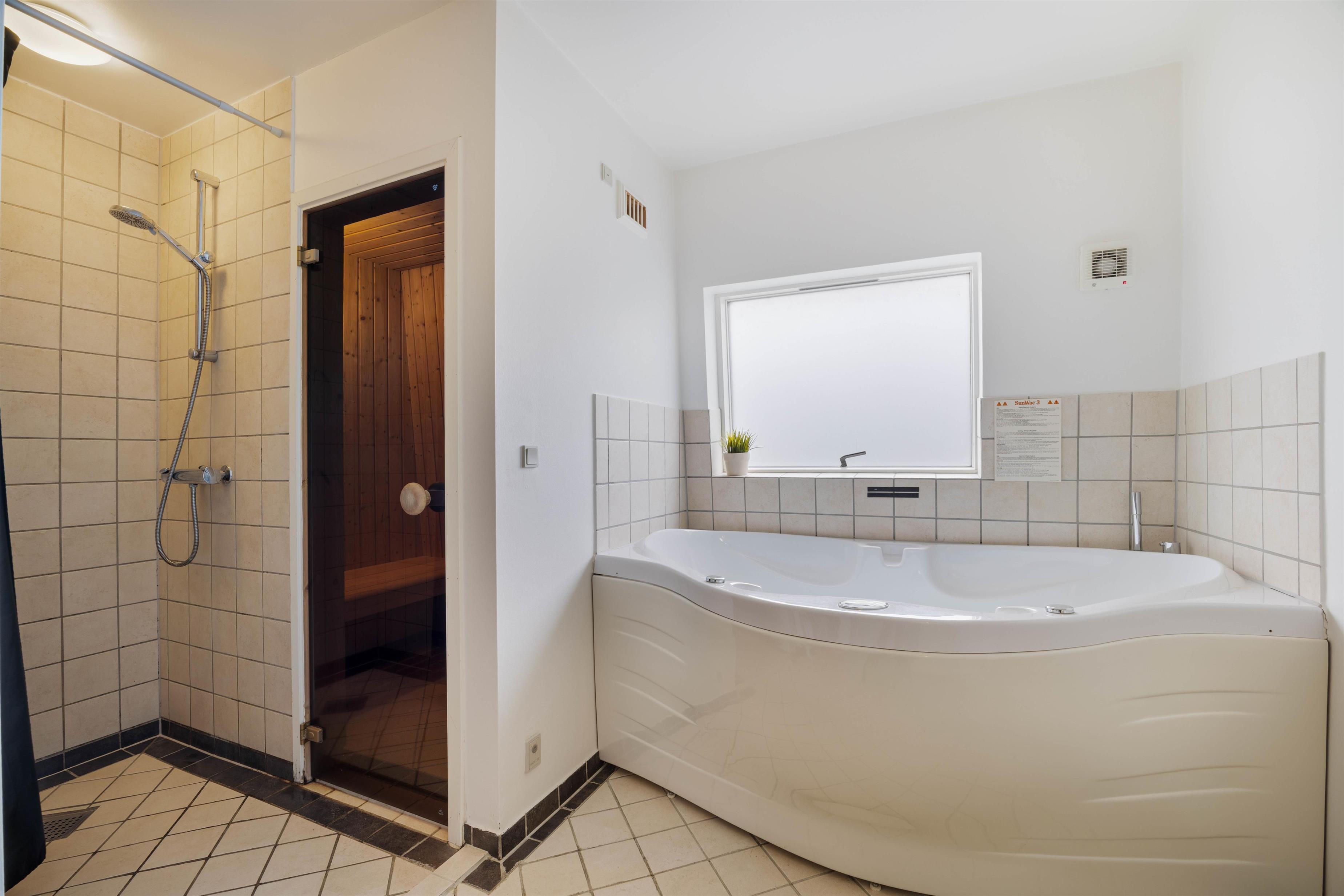 I stueetagen har du et dejligt åbent køkken og spiseafdelingen, hvor du sammen med familien kan hygge omkring madlavningen og måltiderne. Derudover er der to soverum, et praktisk gæstetoilet samt et badeværelse med både spabad og sauna, så der rigtig kan slappes af under ferien.