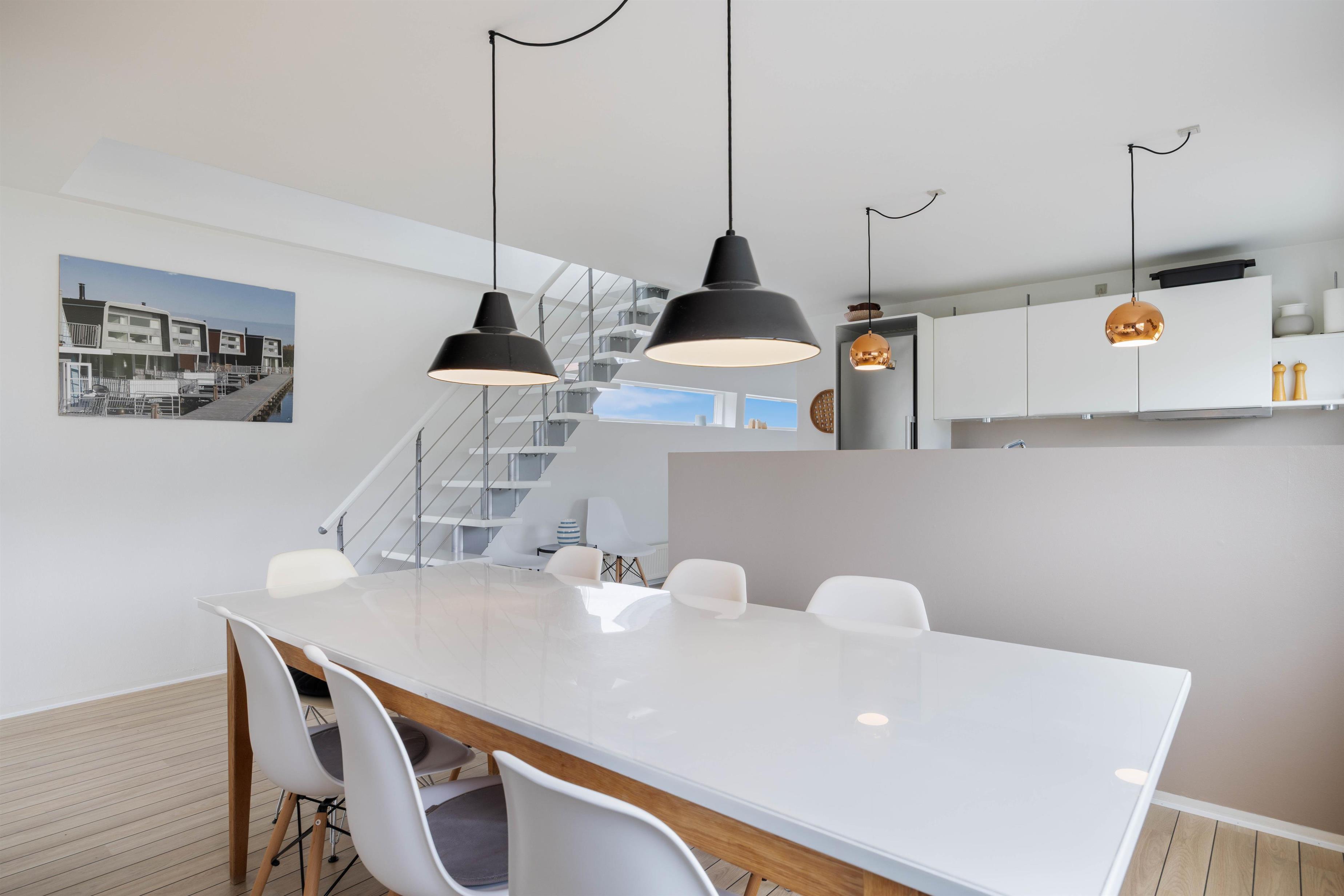 Husbåden ligger i en lille hyggelig havn, så du har den det autentiske fiskermiljø og den smukke natur ved fjorden helt tæt på. Derudover kommer du til at bo i gåafstand til butikkerne, spisestederne og ikke mindst stranden i Hvide Sande.