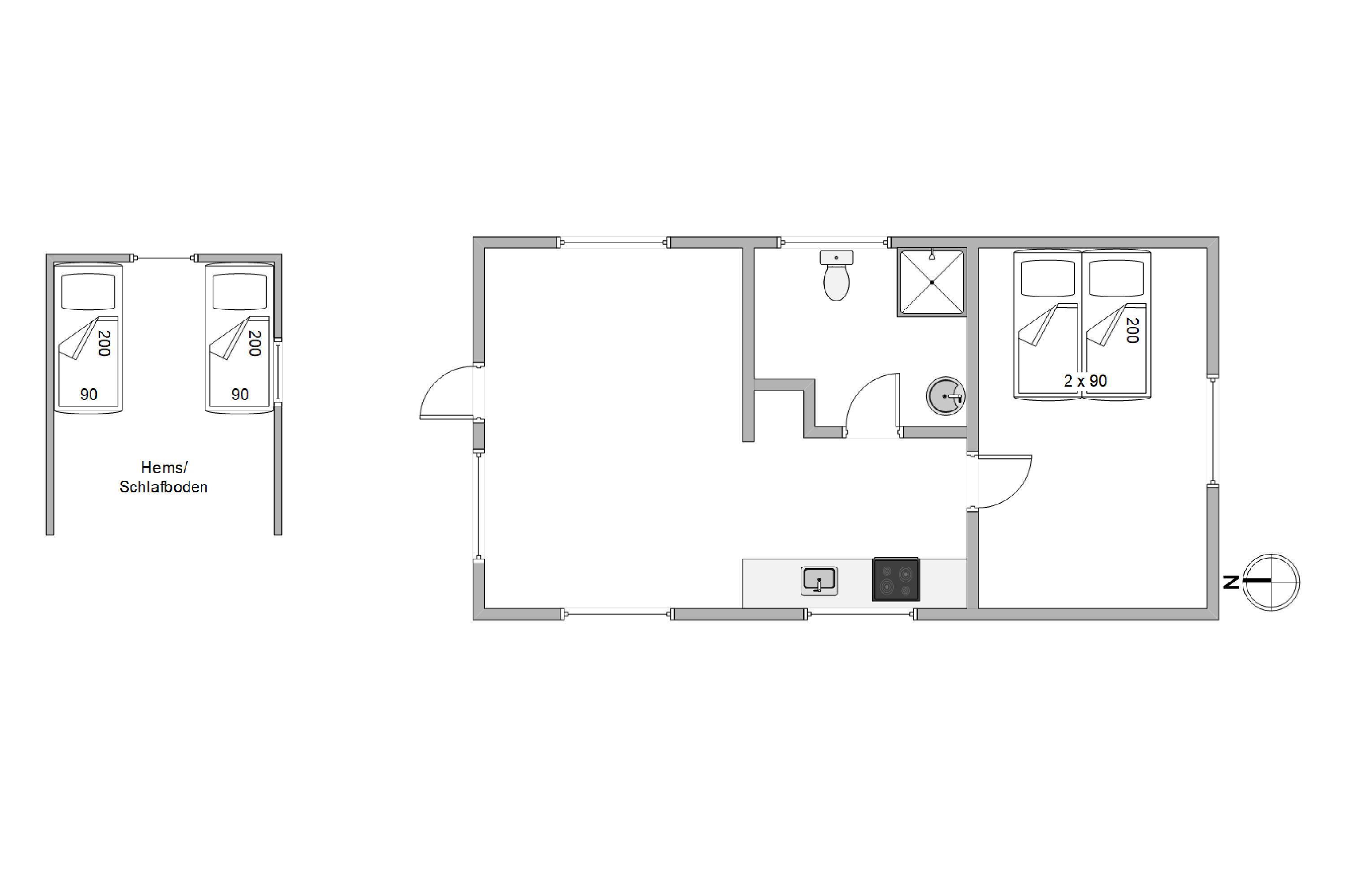 Her er plads til tre gæster, som kan hygge sig med tilberedningen af friskfanget i fisk i køkkenet, samles omkring brætspil om køkkenbordet og slutte aftenen af med en god film. Jeres yndlingsfilm kan I streame via et Chromecast. Når timerne bliver sene, kan I kravle til køjs i soveværelset eller på hemsen. Hemsen er klar et hit hos teenageren, mens soveværelset har skydedøre, så der er god plads til opbevaring.