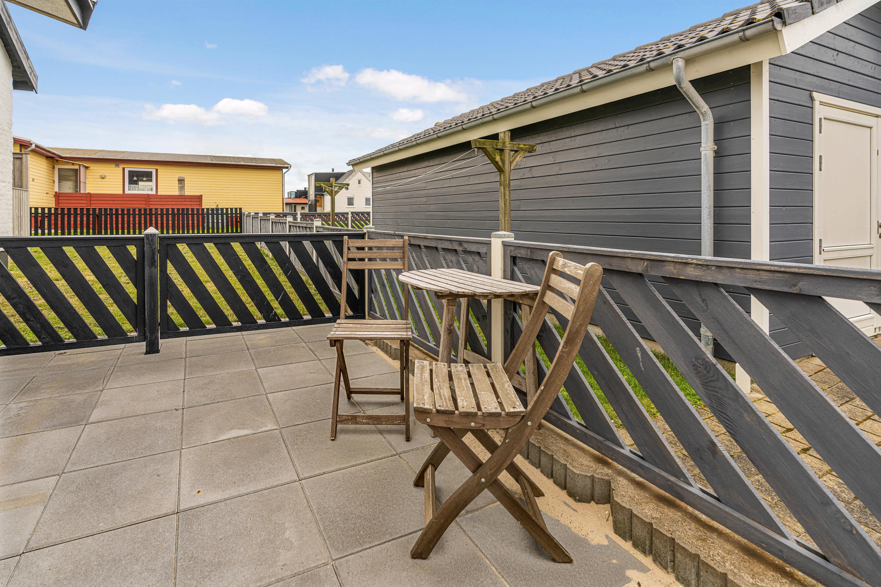 Udenfor finder I også et redskabsrum, hvor der er mulighed for at opbevare jeres medbragte cykler eller surfbrætter.