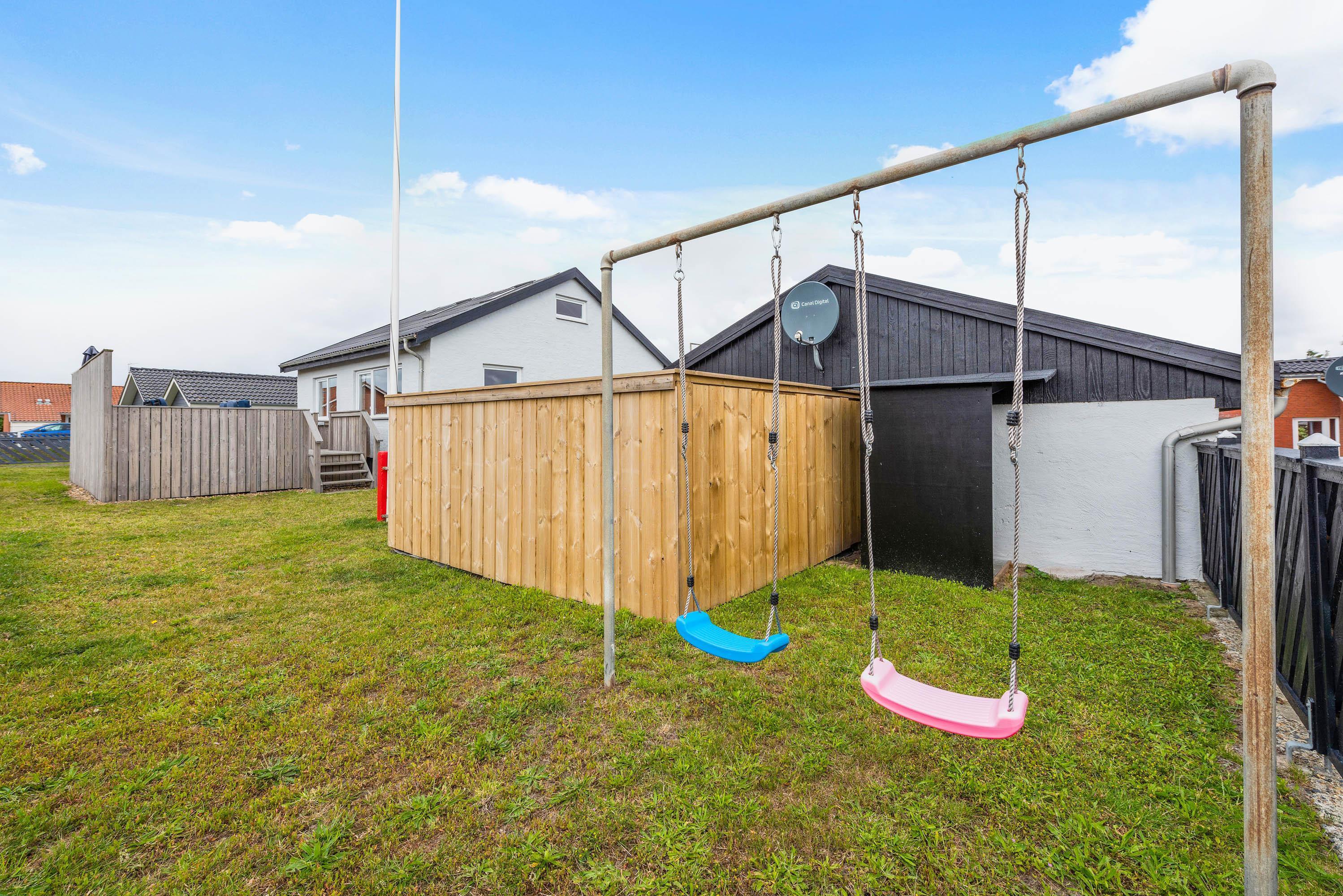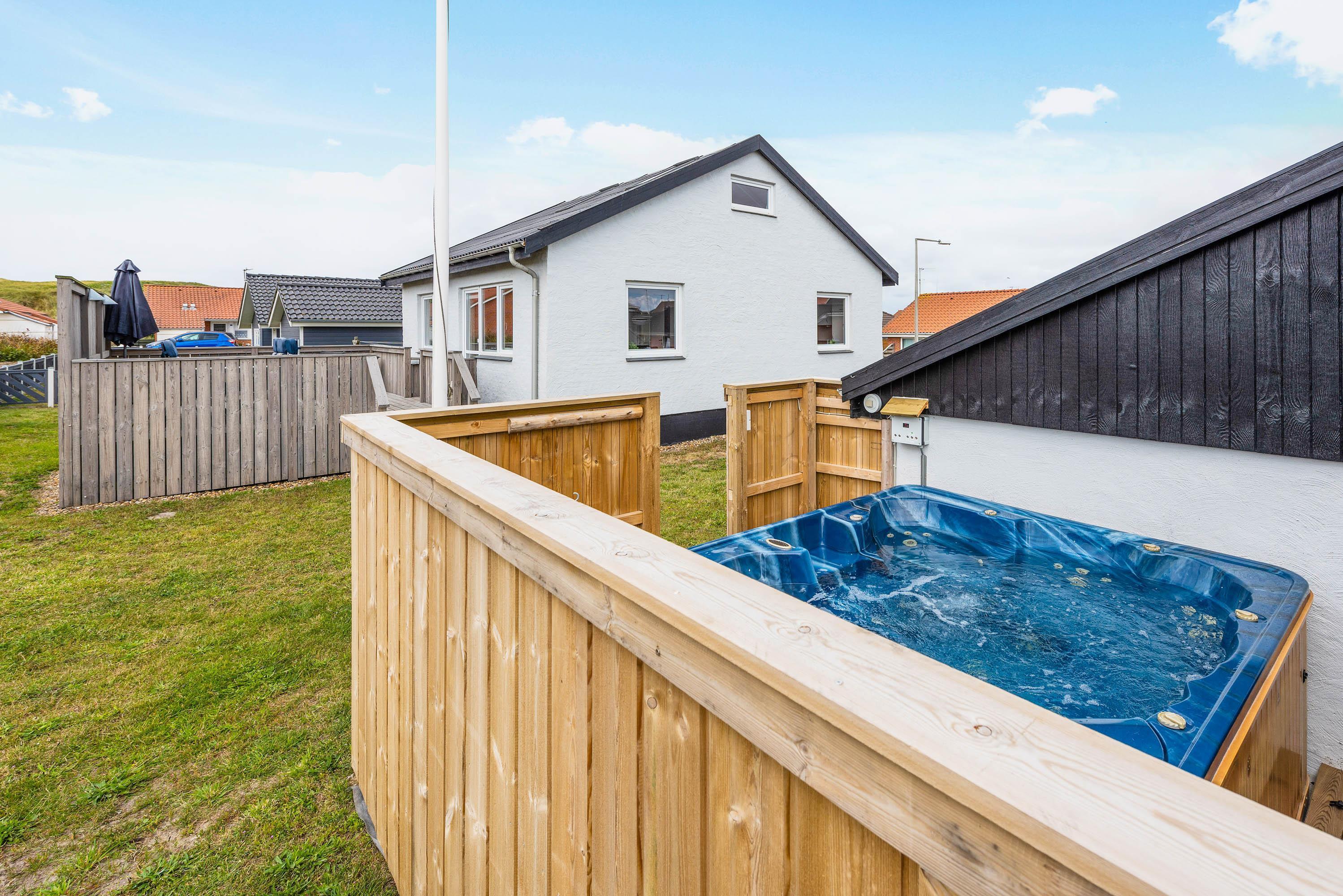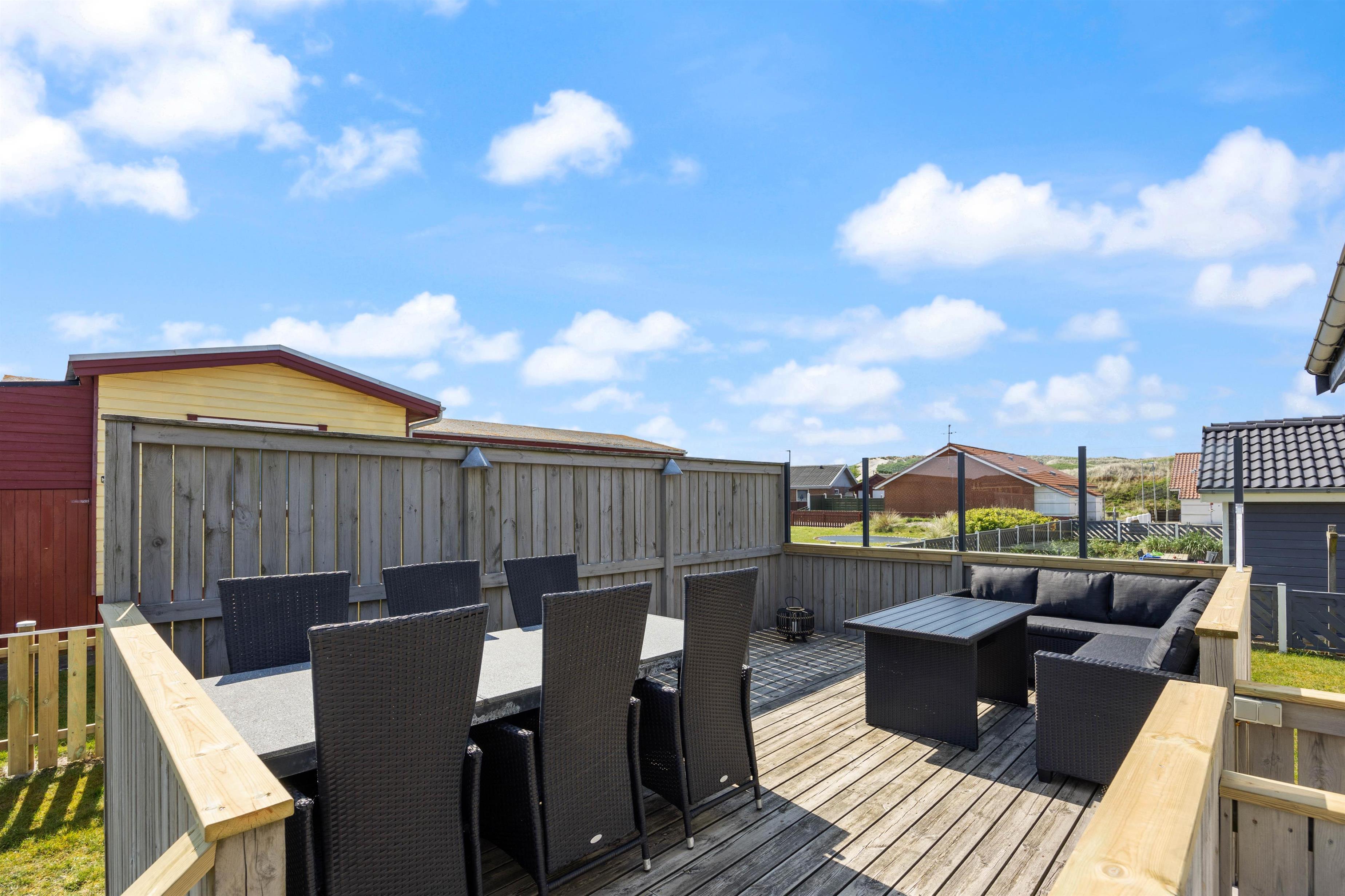 Feriehuset indeholder 2 soverum og 1 hems med sovepladser - alle værelserne er med dobbeltsenge. Haven har plads til børnenes leg - I kan spille en gang fodbold eller måske vil børnene udfordre jer til en gang vikingespil? Udespaet hitter sikkert både hos voksne og børn. Infrarød-saunaen byder på varme, når det er koldt eller efter en dukkert i vesterhavet.