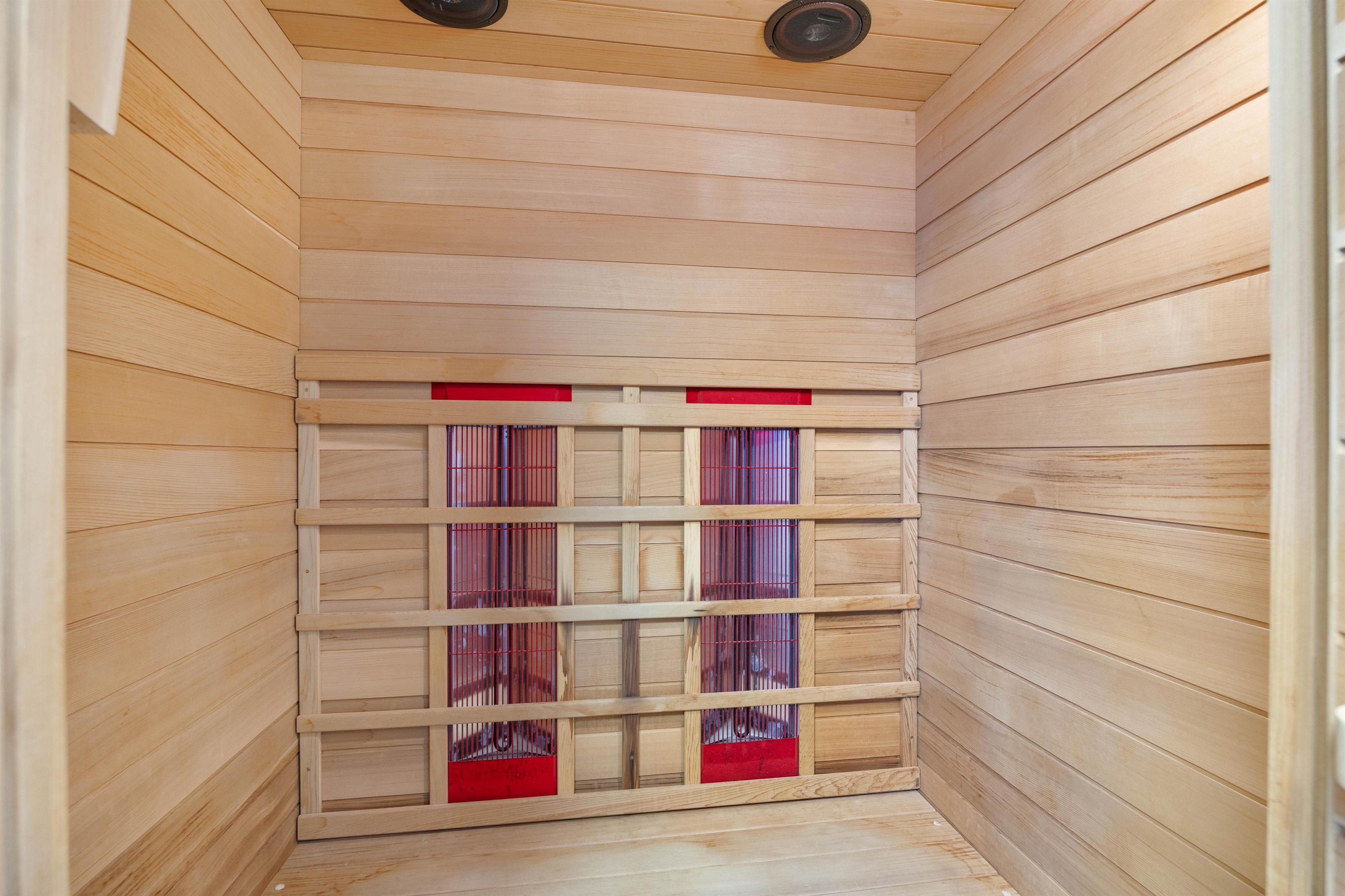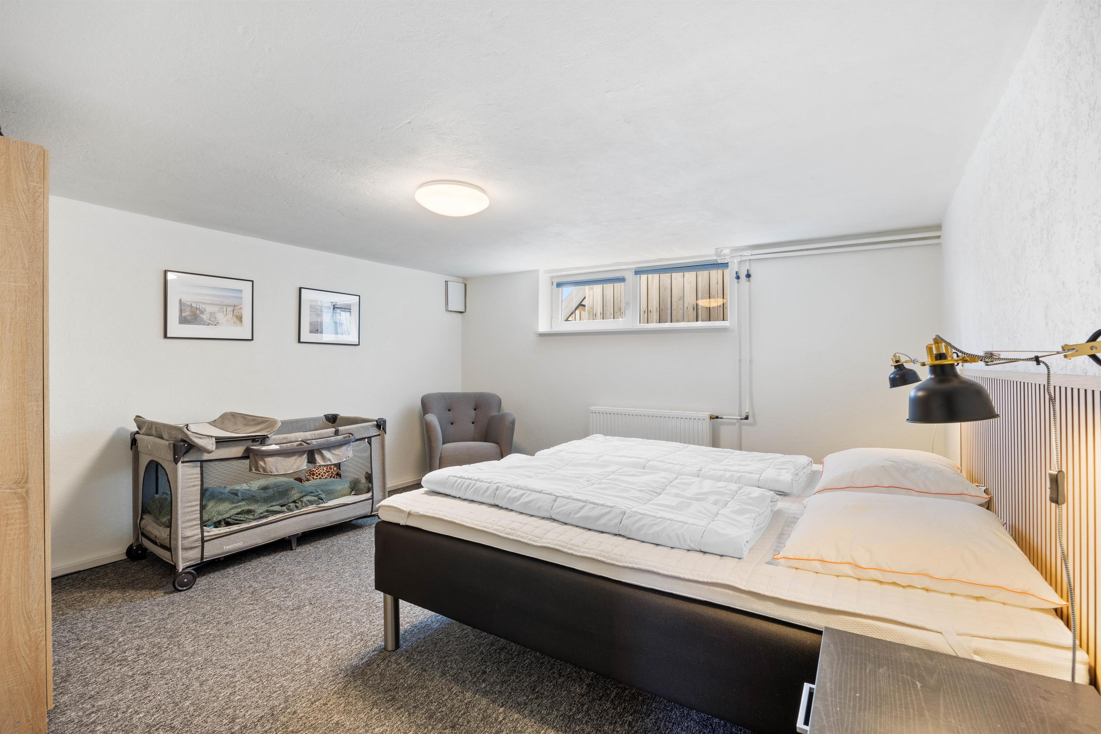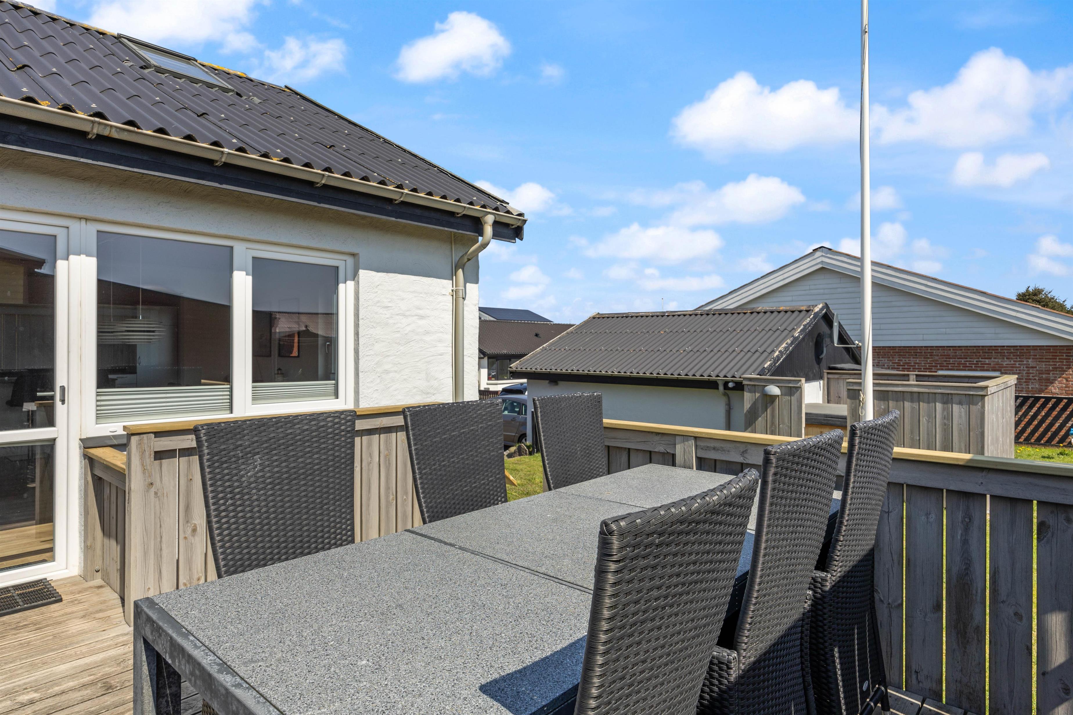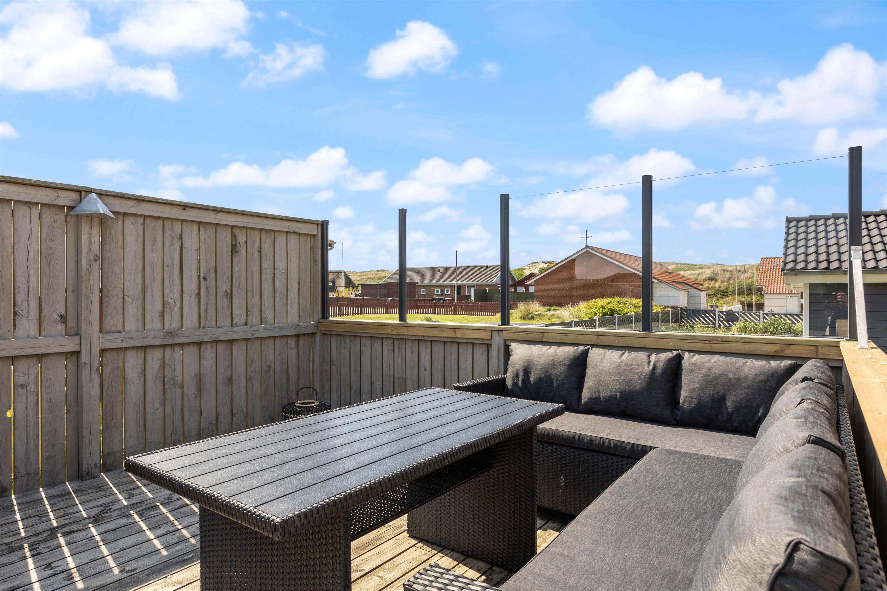 Feriehuset indeholder 2 soverum og 1 hems med sovepladser - alle værelserne er med dobbeltsenge. Haven har plads til børnenes leg - I kan spille en gang fodbold eller måske vil børnene udfordre jer til en gang vikingespil? Udespaet hitter sikkert både hos voksne og børn. Infrarød-saunaen byder på varme, når det er koldt eller efter en dukkert i vesterhavet.