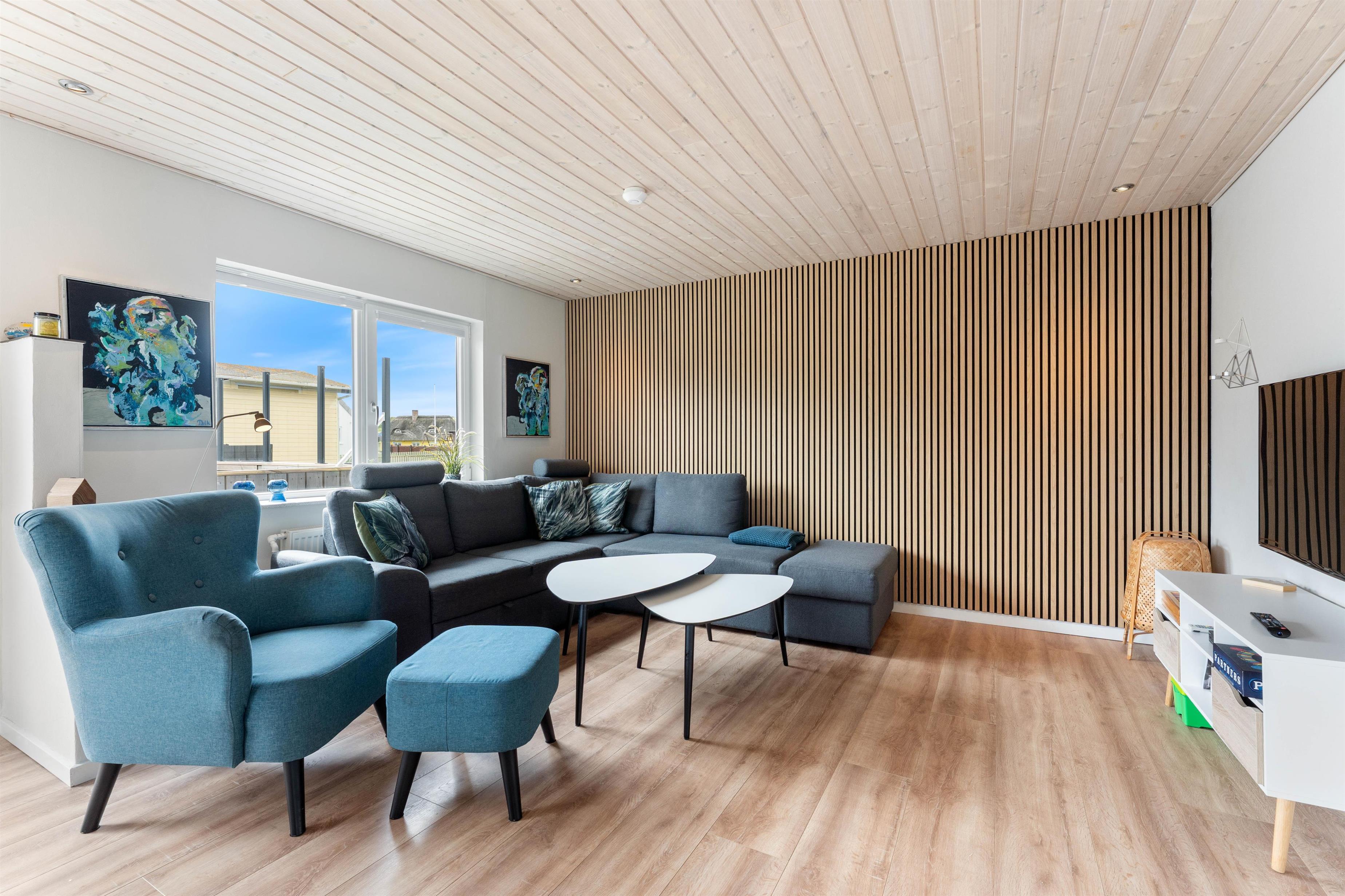 Vinbjergvej 7 er blevet renoveret i 2019. I dette hyggelige feriehus finder I et flot lyst køkken med opvaskemaskine, induktionsovn og køleskab med separat fryser. Køkkenet er i åben forbindelse til stuen, som ligeledes er dejlig lyst. Stuen har en hyggelig sofakrog med flotte farver og her er også placeret en dejlig lænestol, hvor du kan nyde morgenkaffen med benene oppe og lade ferieroen sænke sig.