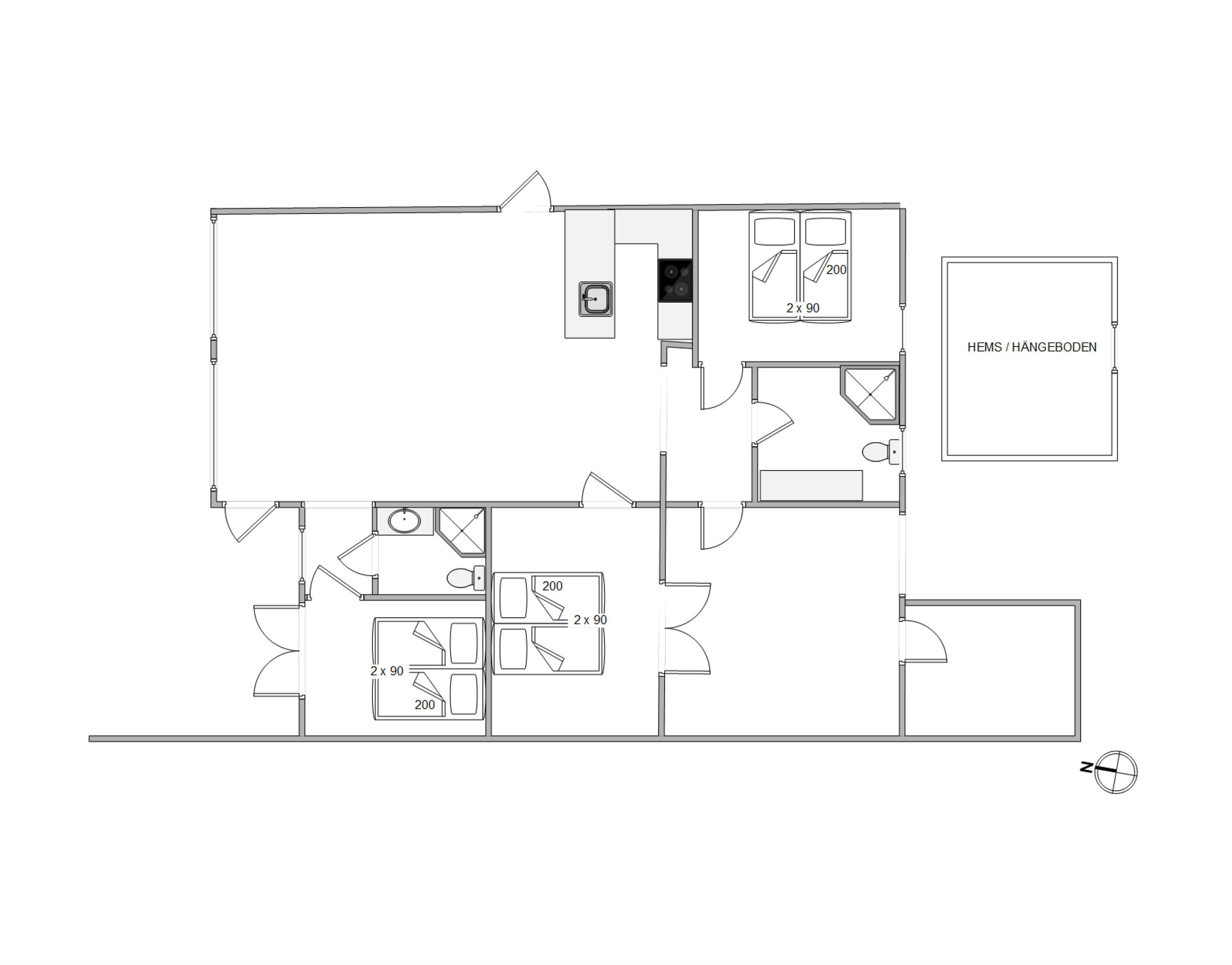 Feriehuset er dejligt rummeligt, så der er god plads til 6 personer. Værelserne er større end i de fleste andre feriehuse, så her har du plads til dine ting og til at bevæge dig.