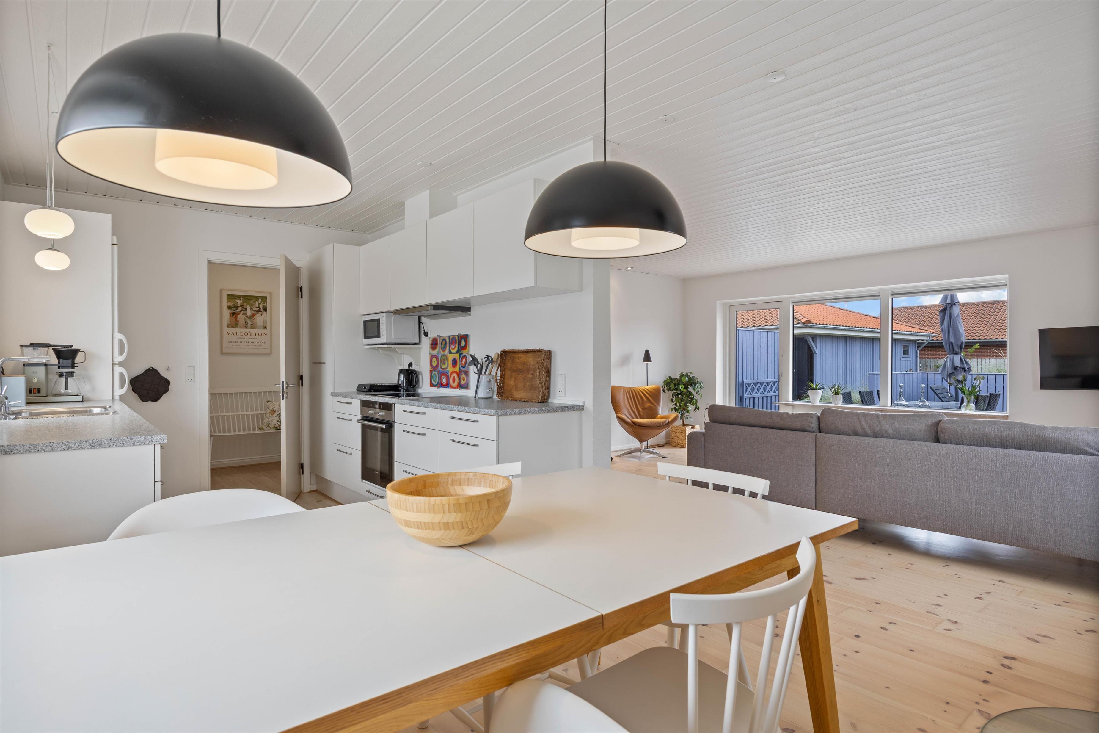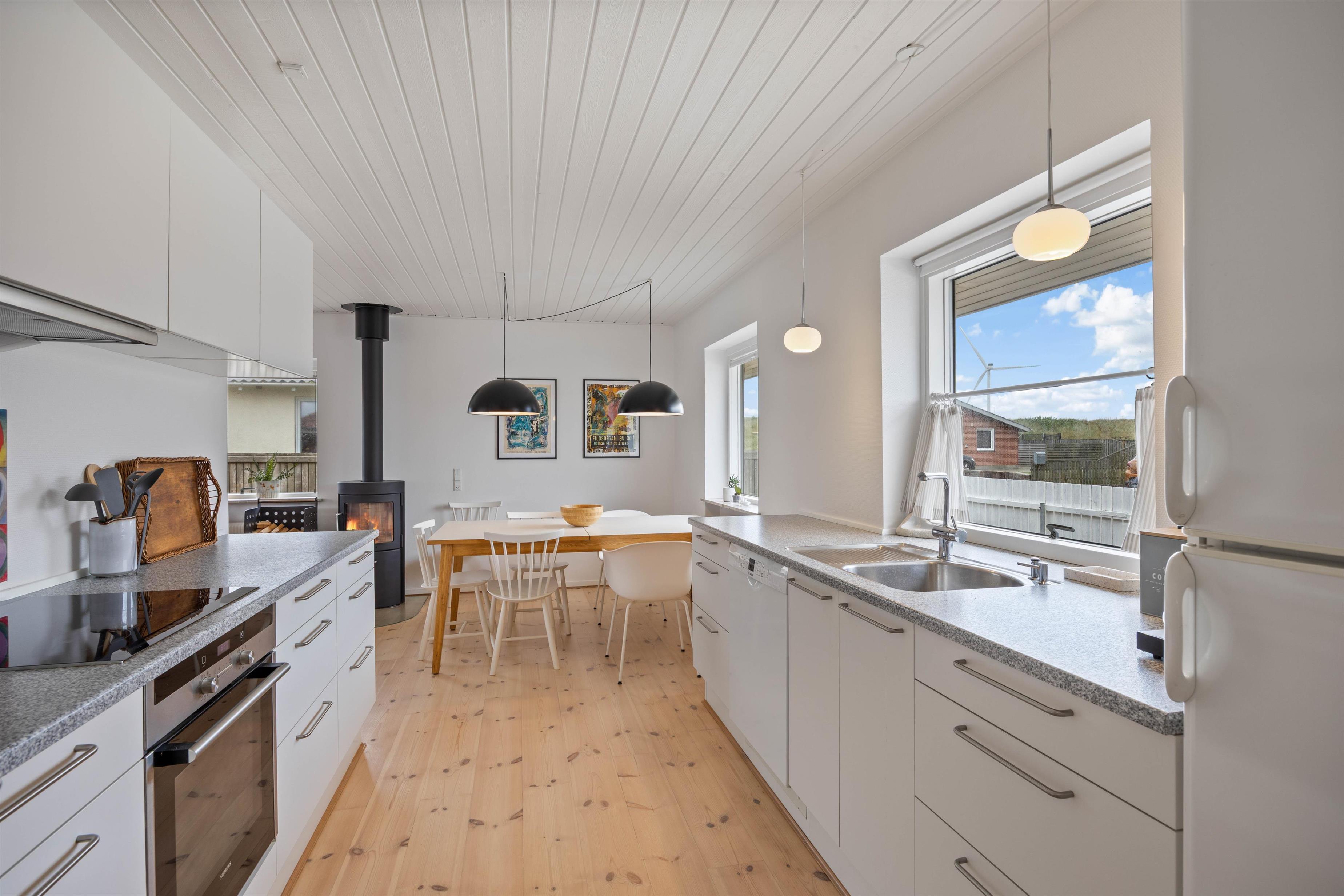 Køkkenet er åbent og funktionelt med opvaskemaskine og god bordplads – her kan I nemt lave lækker feriemad sammen.