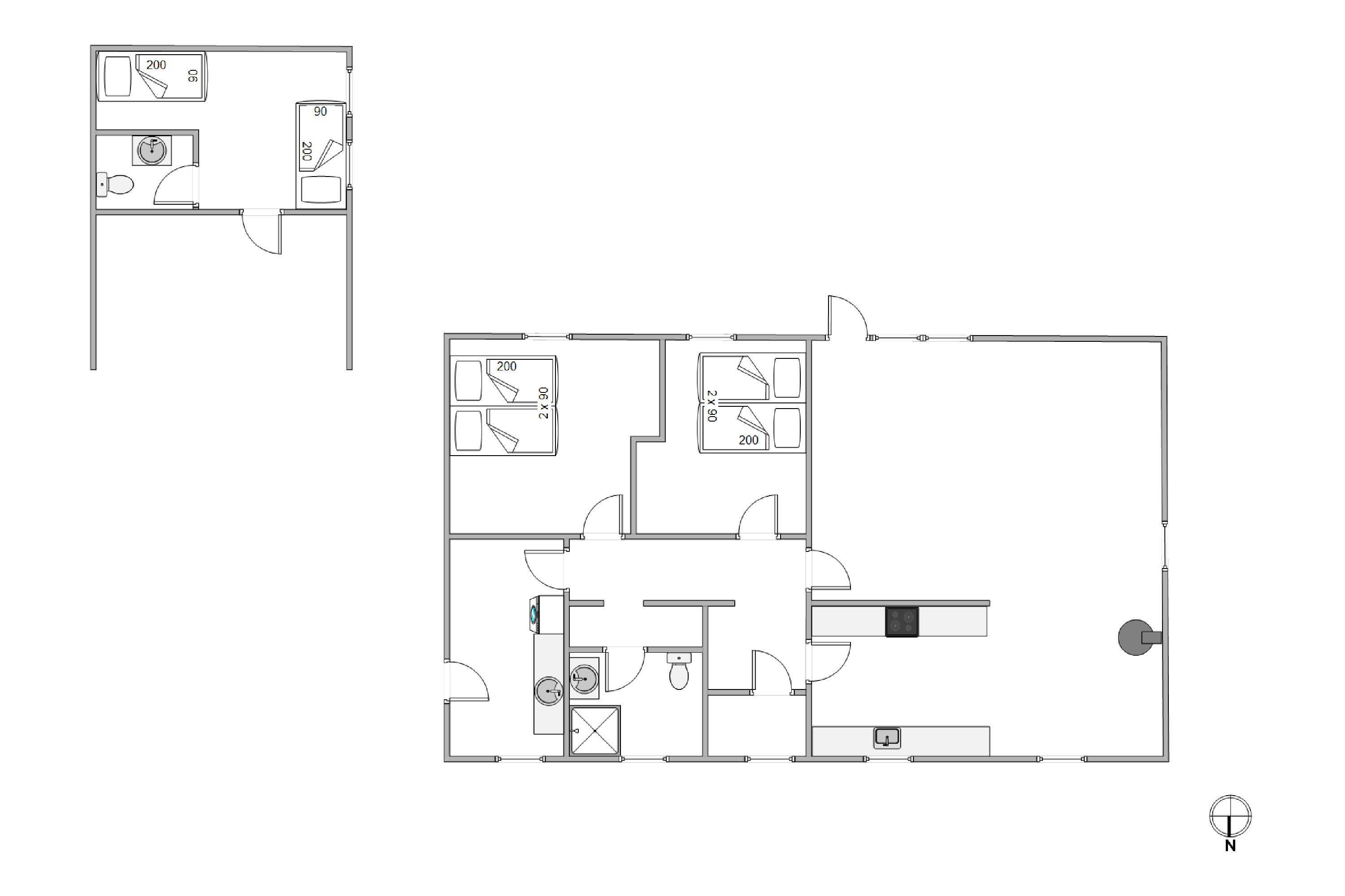 Feriehuset har plads til 6 personer med 3 soveværelser og 1 badeværelse samt 1 gæstetoilet i annekset. Derudover er der også en vaskemaskine og tørretumbler, så I nemt kan klare en tøjvask efter en dag ved stranden.