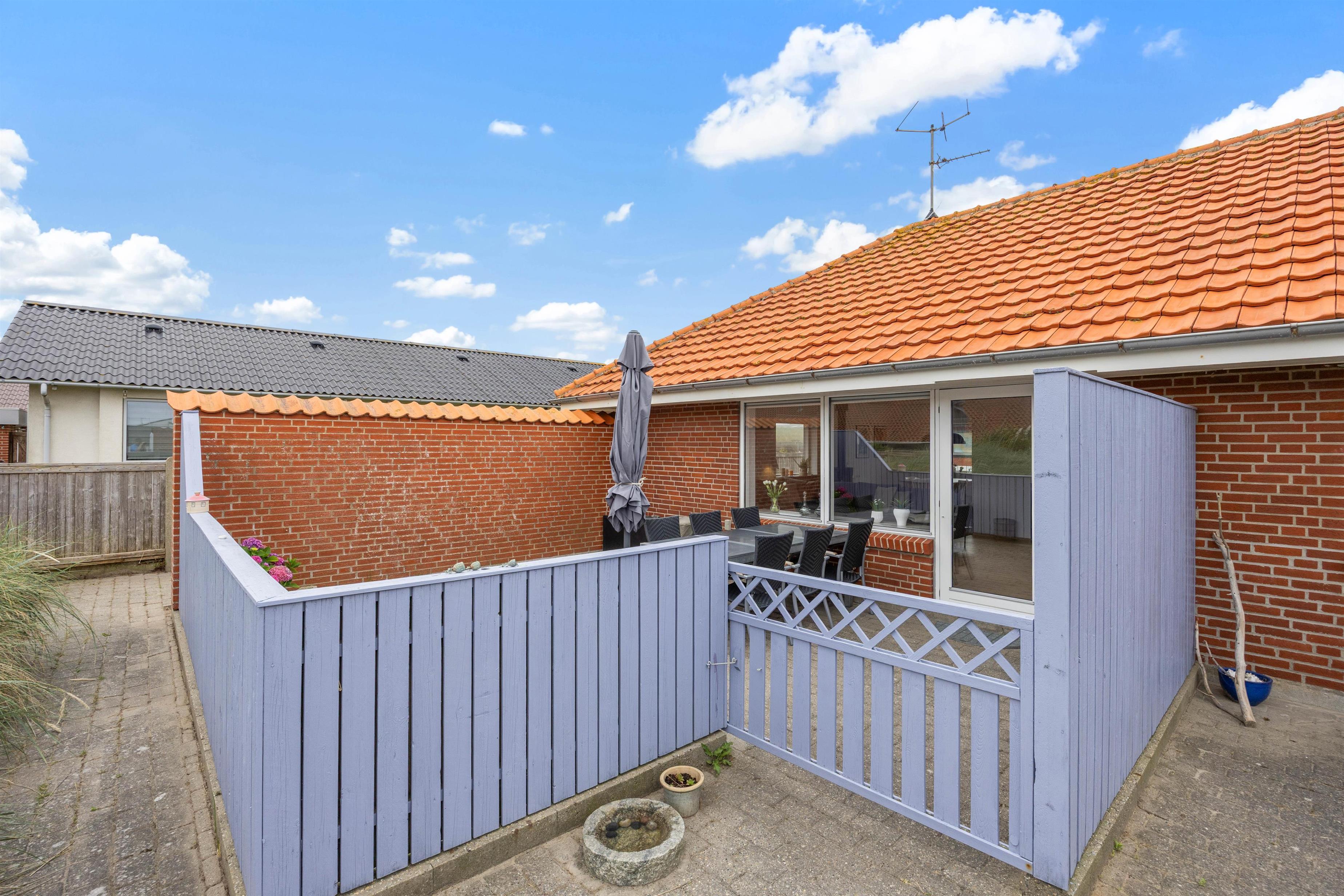 Feriehuset har en dejlig, lukket terrasse, hvor børnene kan lege frit. Terrassen er delvist afskærmet, så I kan sidde i læ og nyde solen i ro og mag med en god bog i hånden.