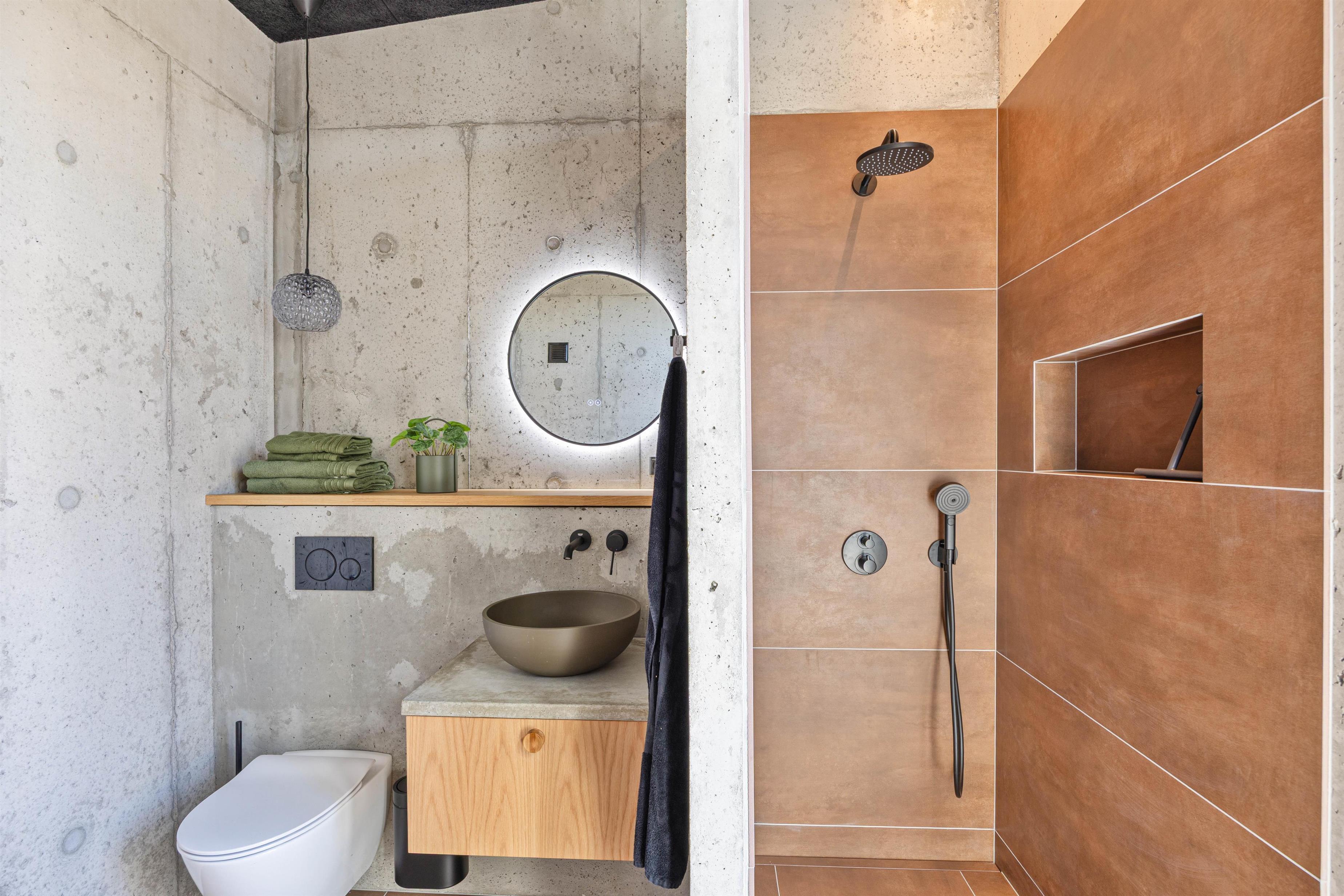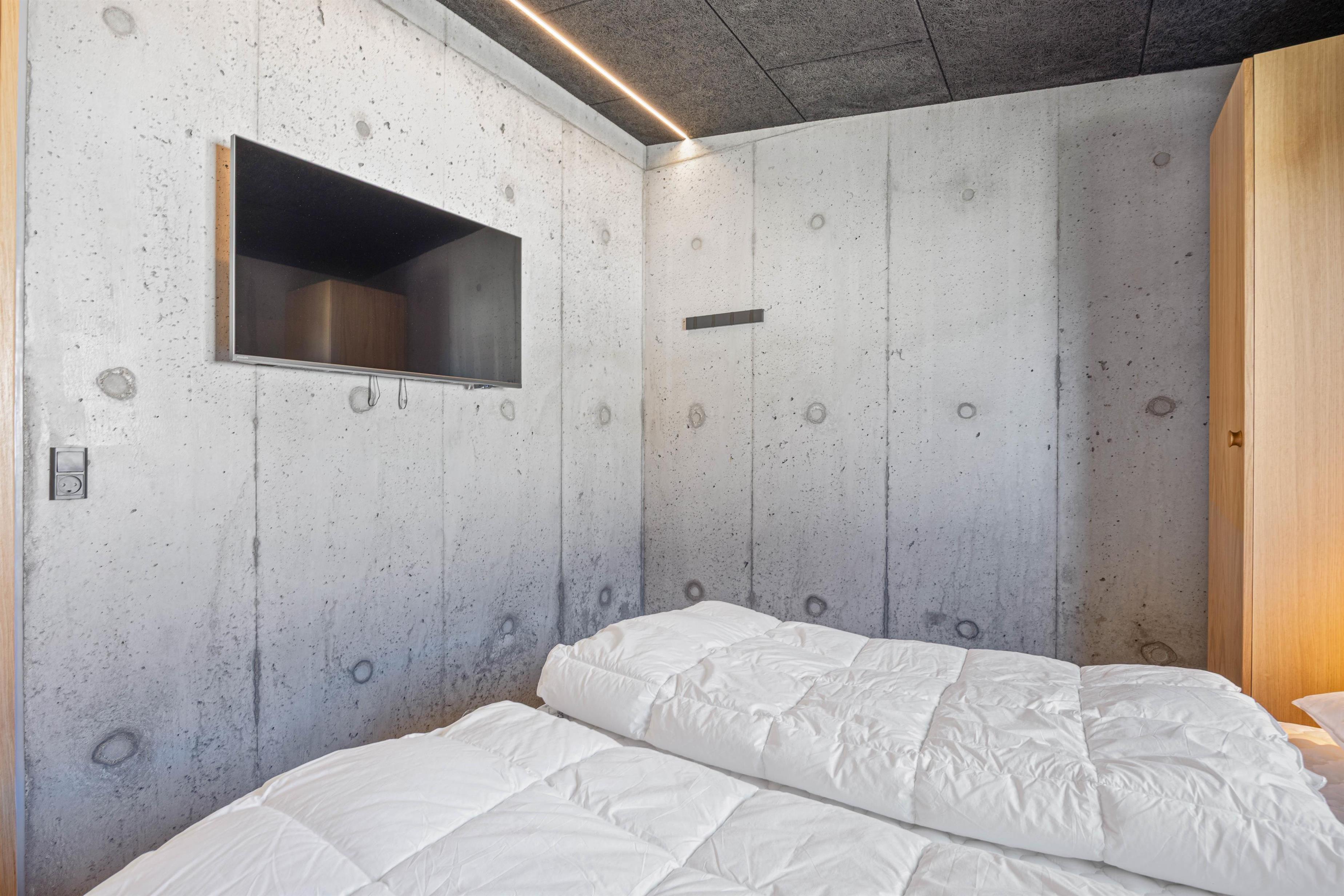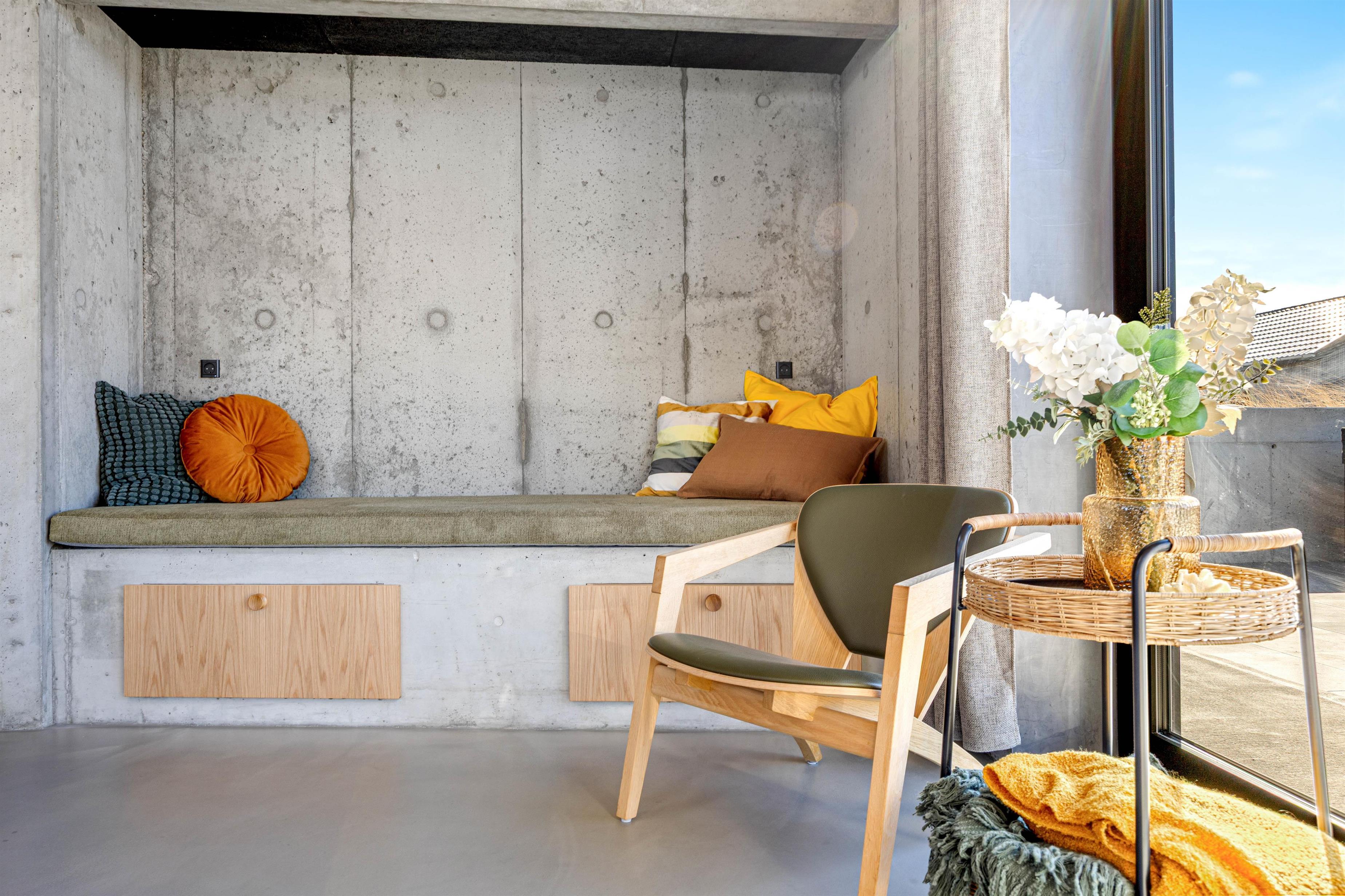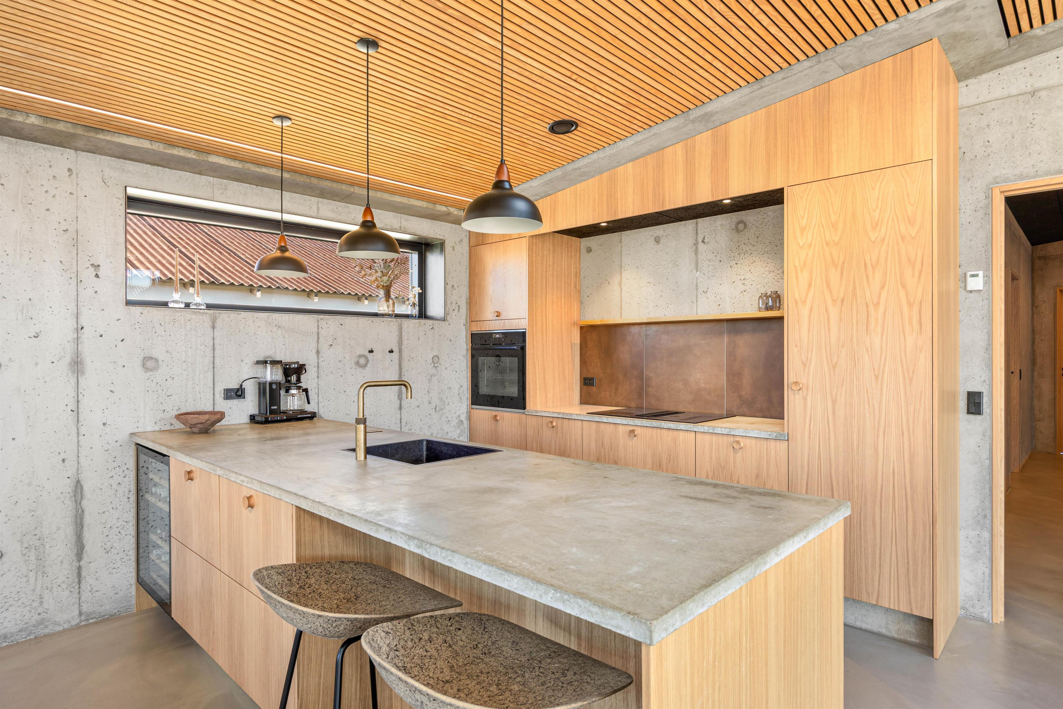 Indretningen er moderne og i skandinavisk stil. Det smukke træ står smukt mod det rustikke betongulv, og her skabes en afslappende atmosfære. Hjerterummet er åbne køkkenalrum, hvor de store vinduer inviterer dagslyset indenfor. Det veludstyrede køkken, stue samt spiseplads smelter her sammen i ét. Med plads til hele familien kan I samles til hyggeligt samvær - uanset om det er afslapning på sofaen, tilberedning af lækre måltider eller hyggelige brætspilsaftner. Fra alrummet er der direkte udgang til terrassen.