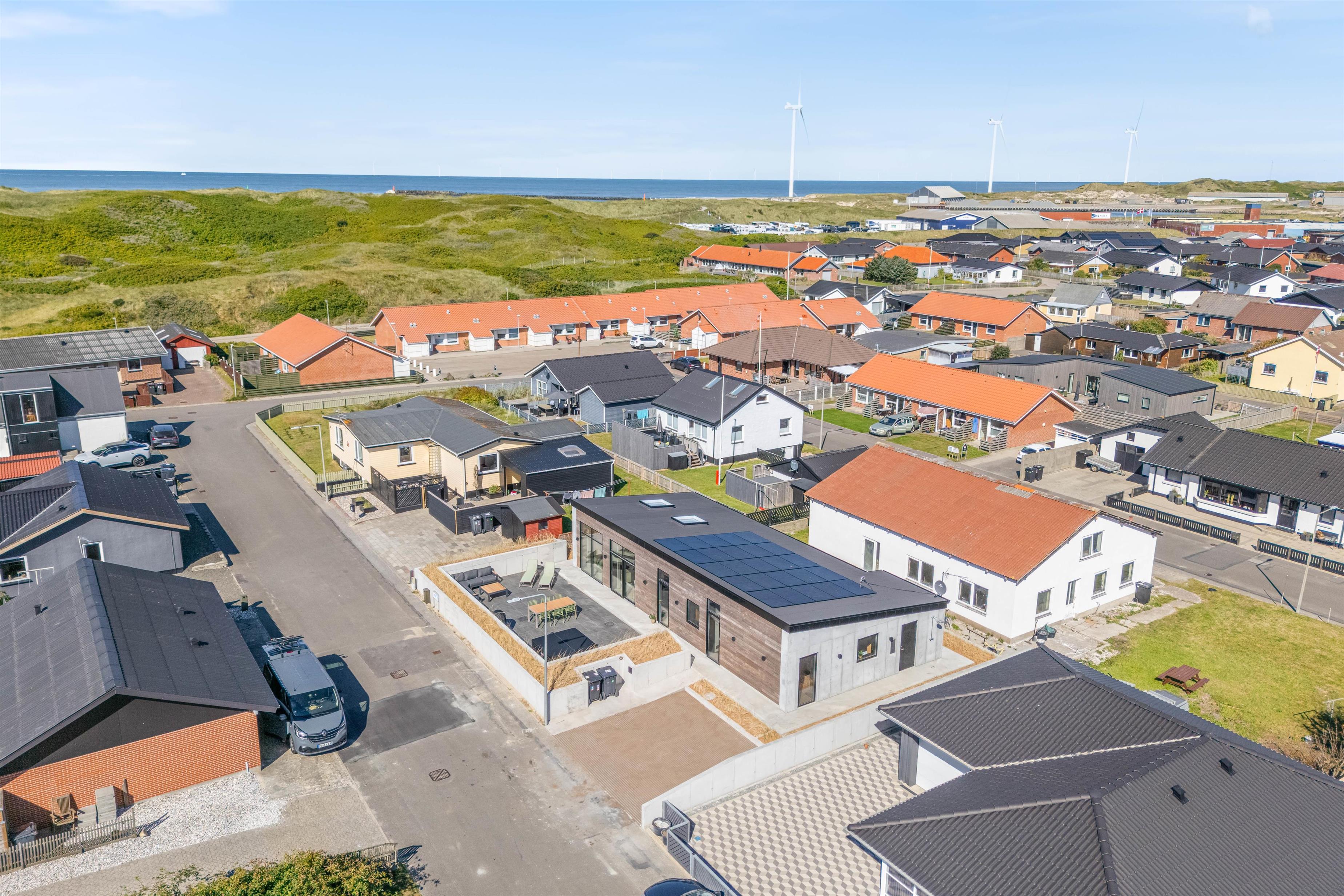 På Vesterhavsvej 8 i hjertet af Hvide Sande, finder I dette flotte og rummelige sommerhus kun 250 meter fra det brusende Vesterhav. Feriehuset, der er opført i 2025, er udstyret med alt, man kunne tænke sig og kun huse 6 feriegæster og deres firbenede venner. På terrassen finder I udespaen, og med den centrale placering er både stranden og indkøb blot få minutters gang fra døren.