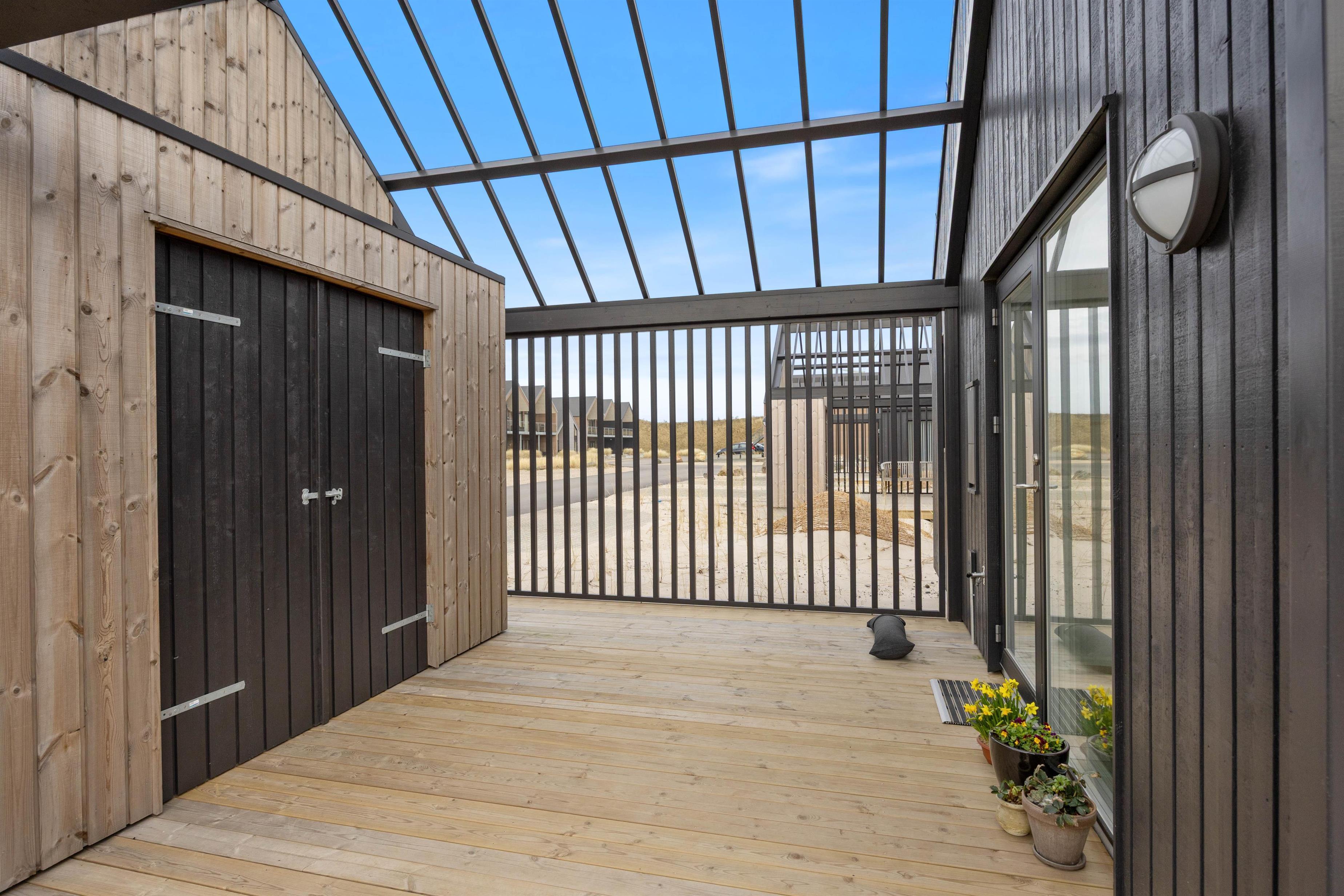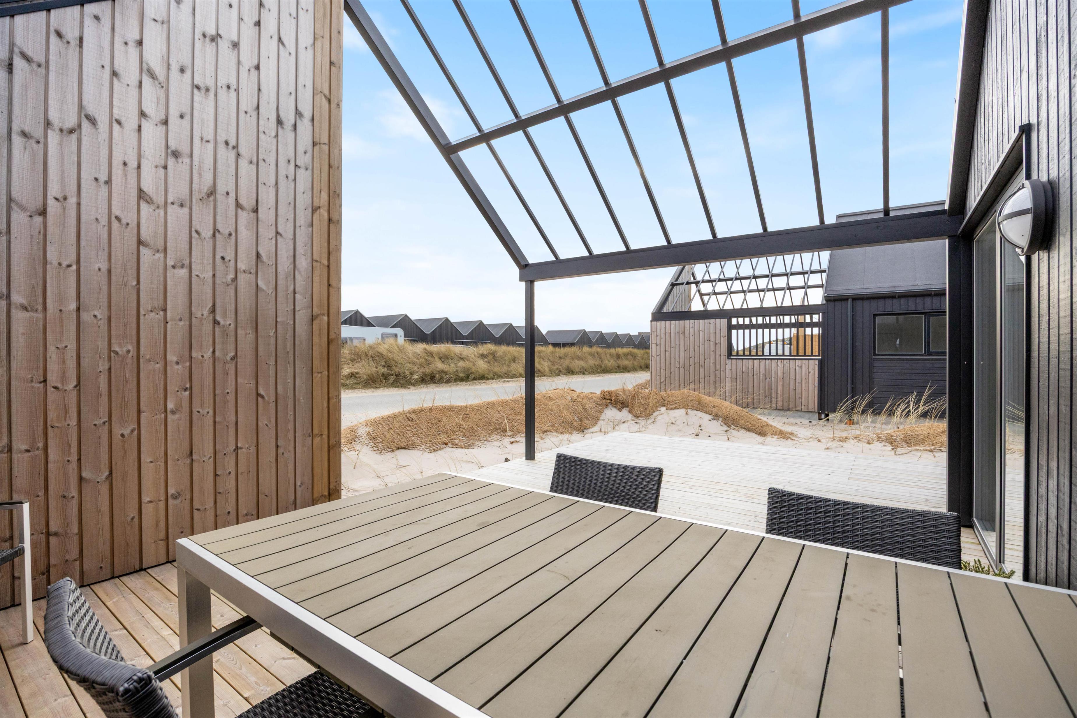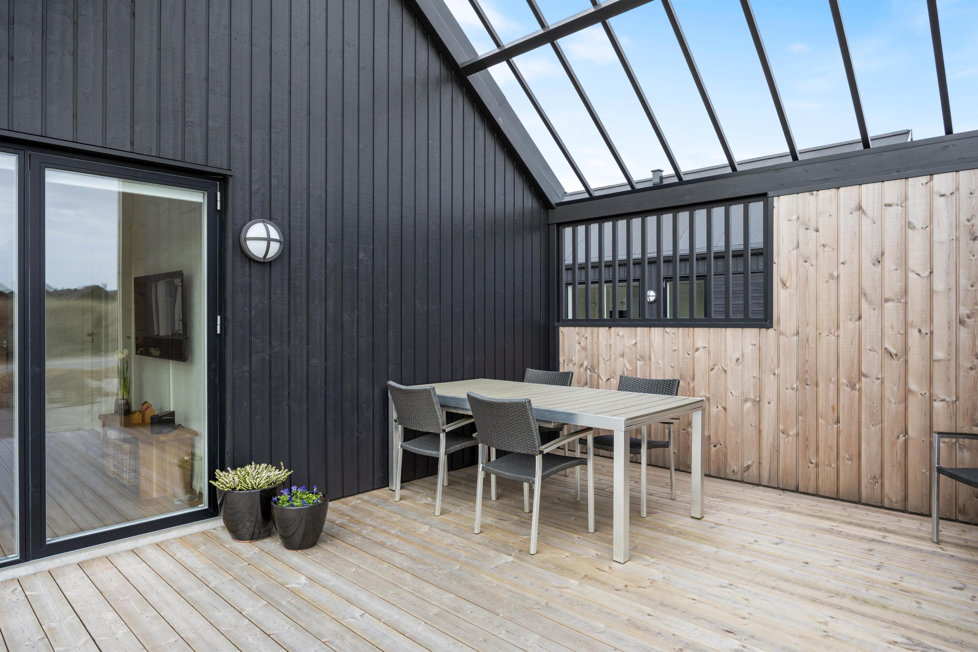Fra køkkenet kan I træde direkte ud på den dejlige, delvist overdækkede terrasse. Her er der havemøbler og god plads til at nyde ferien under åben himmel, uanset om I vil læse en bog i solen, grille eller bare sidde og lytte til naturens lyde. Den afskærmede terrasse giver jer læ, så I kan nyde udelivet fra morgen til aften.