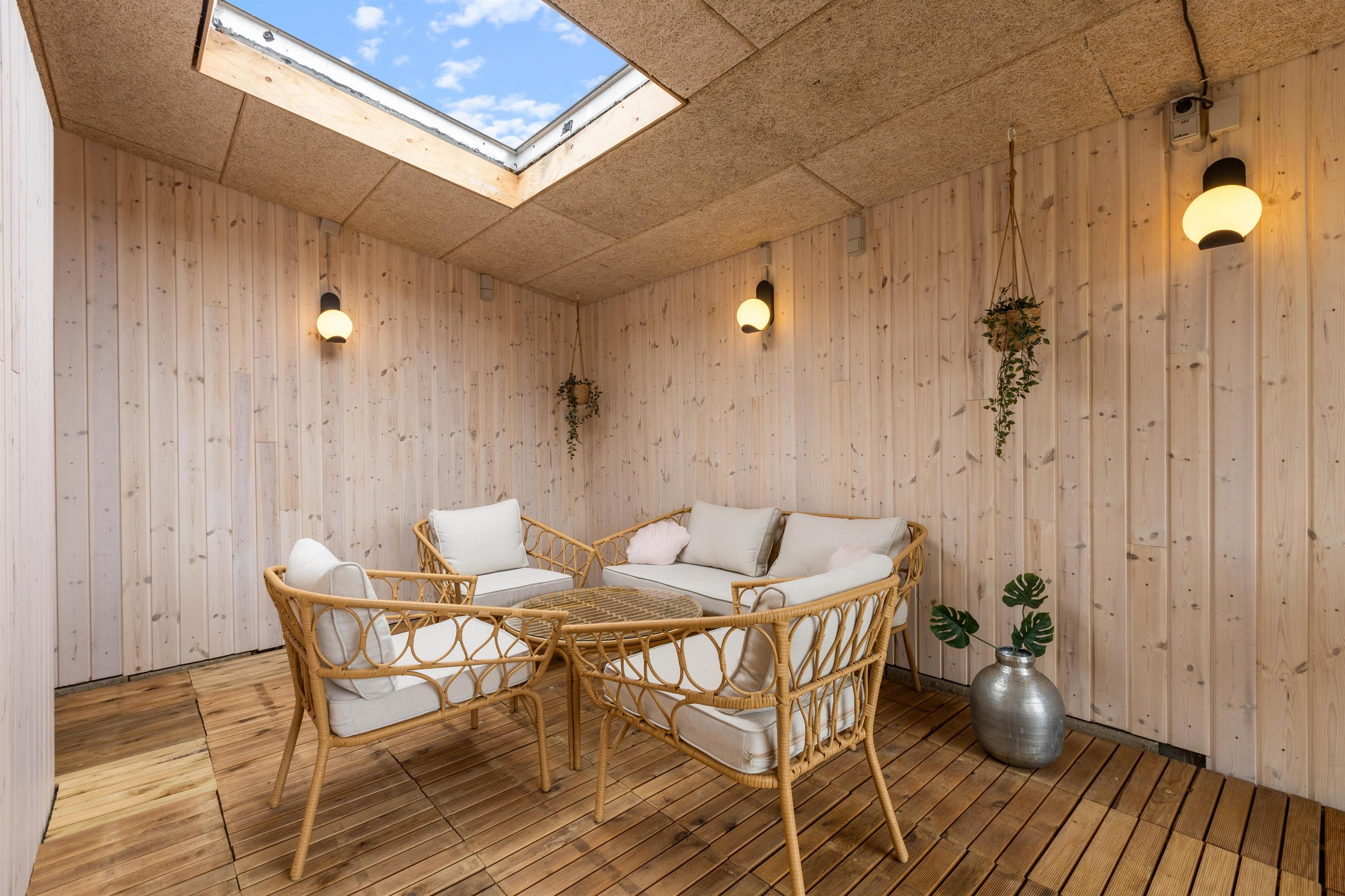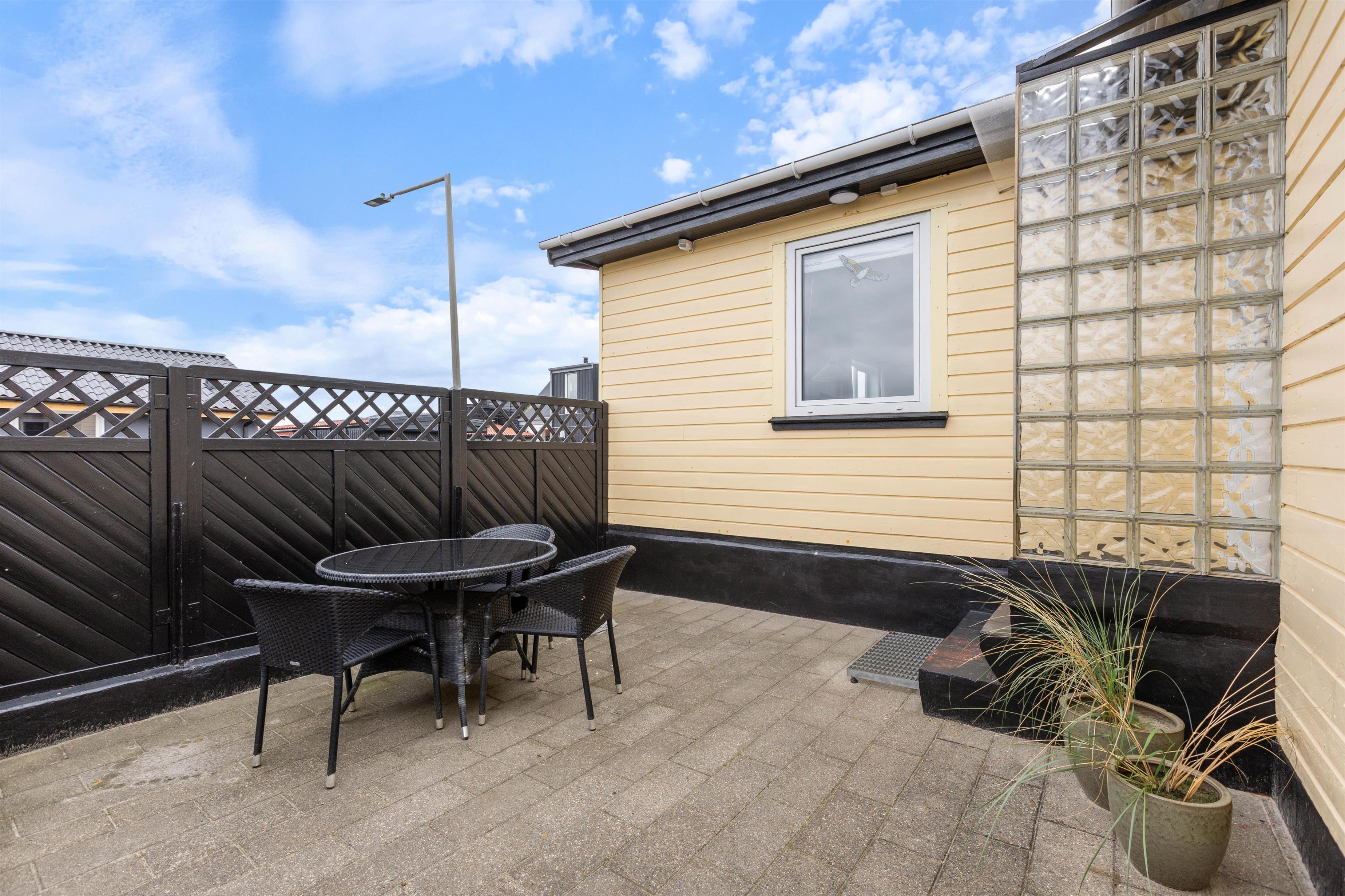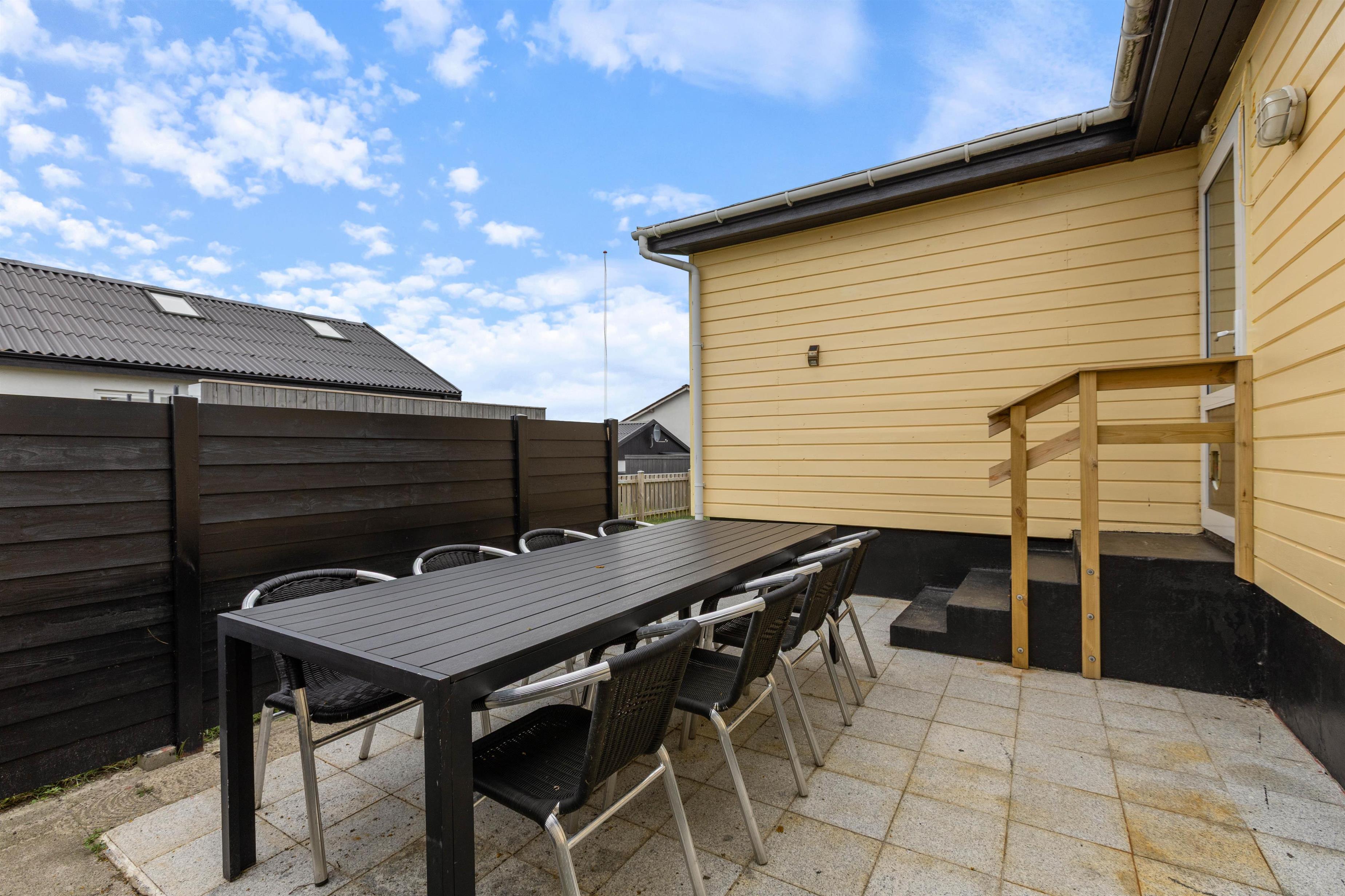 Udendørsarealerne er ideelle til afslapning og leg. Den lukkede plænegrund giver trygge rammer for både børn og hund, mens havemøblerne indbyder til lange sommeraftener med grill og hygge.