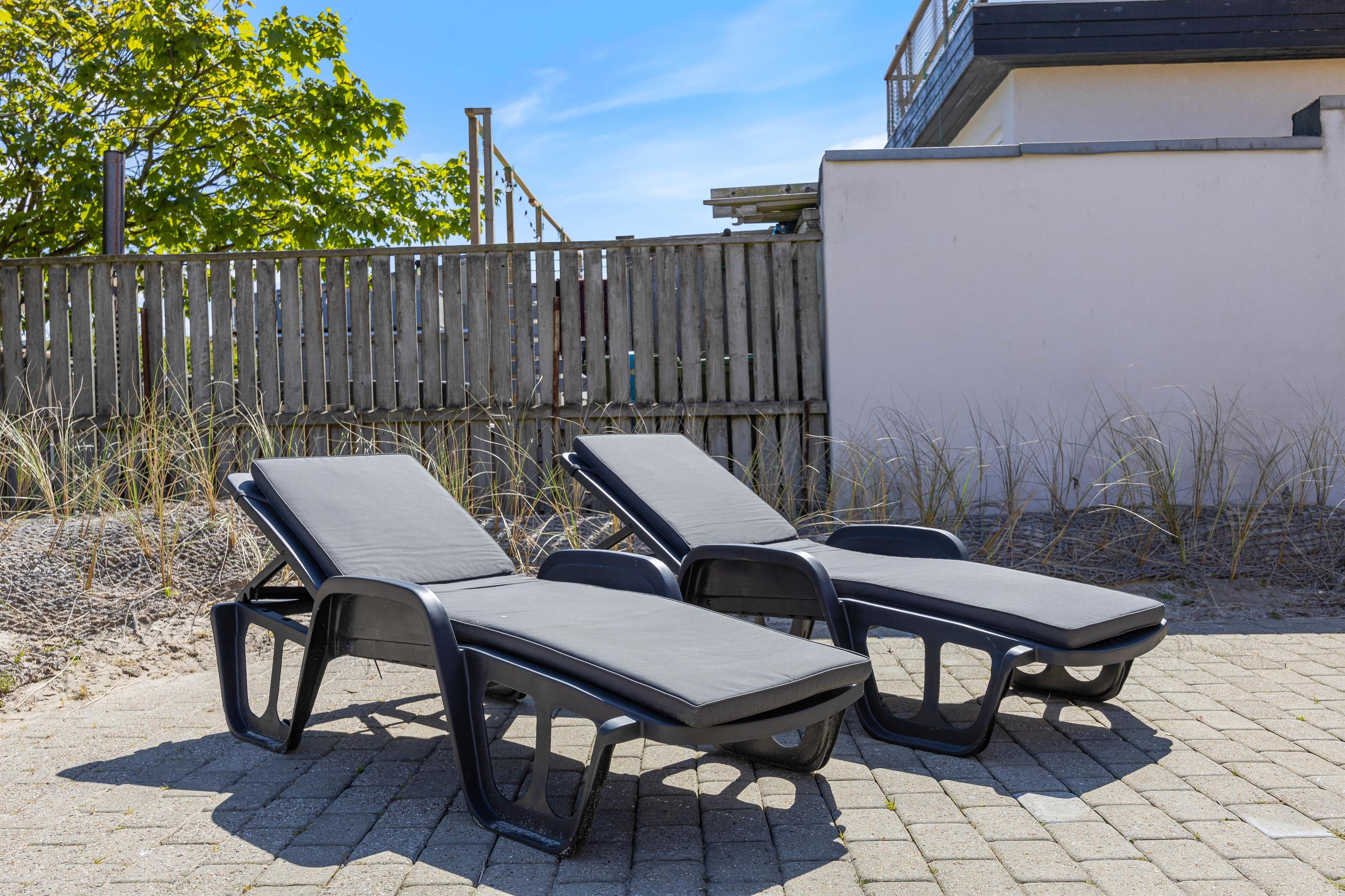 Udenfor venter jer en fin terrasse, hvor I kan nyde vejret. Slå jer ned i de komfortable havemøbler med en god bog, imens hunden får lov at rende rundt. På de lune solskinsdage kan I selvfølgelig også solbade på solvognene.