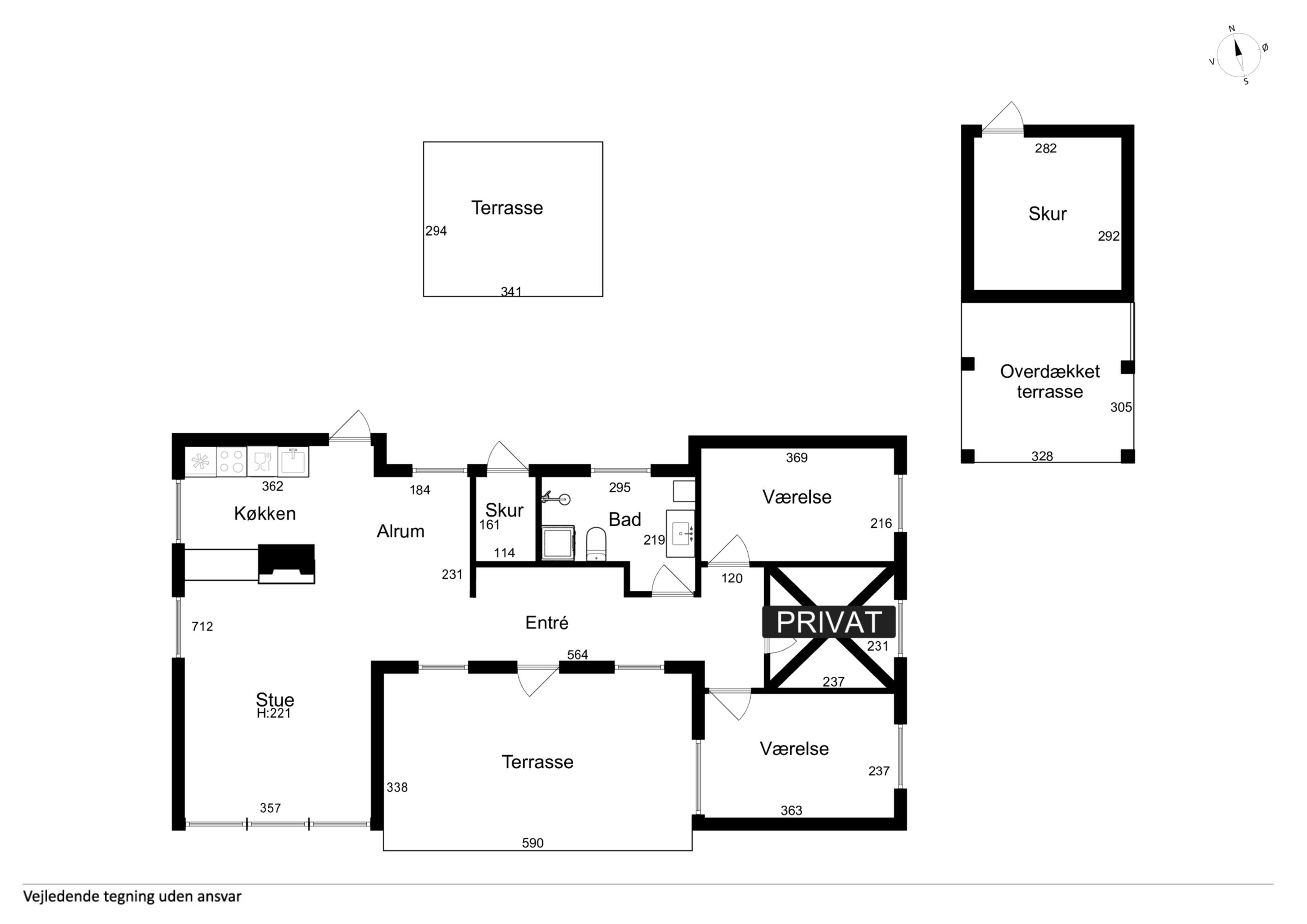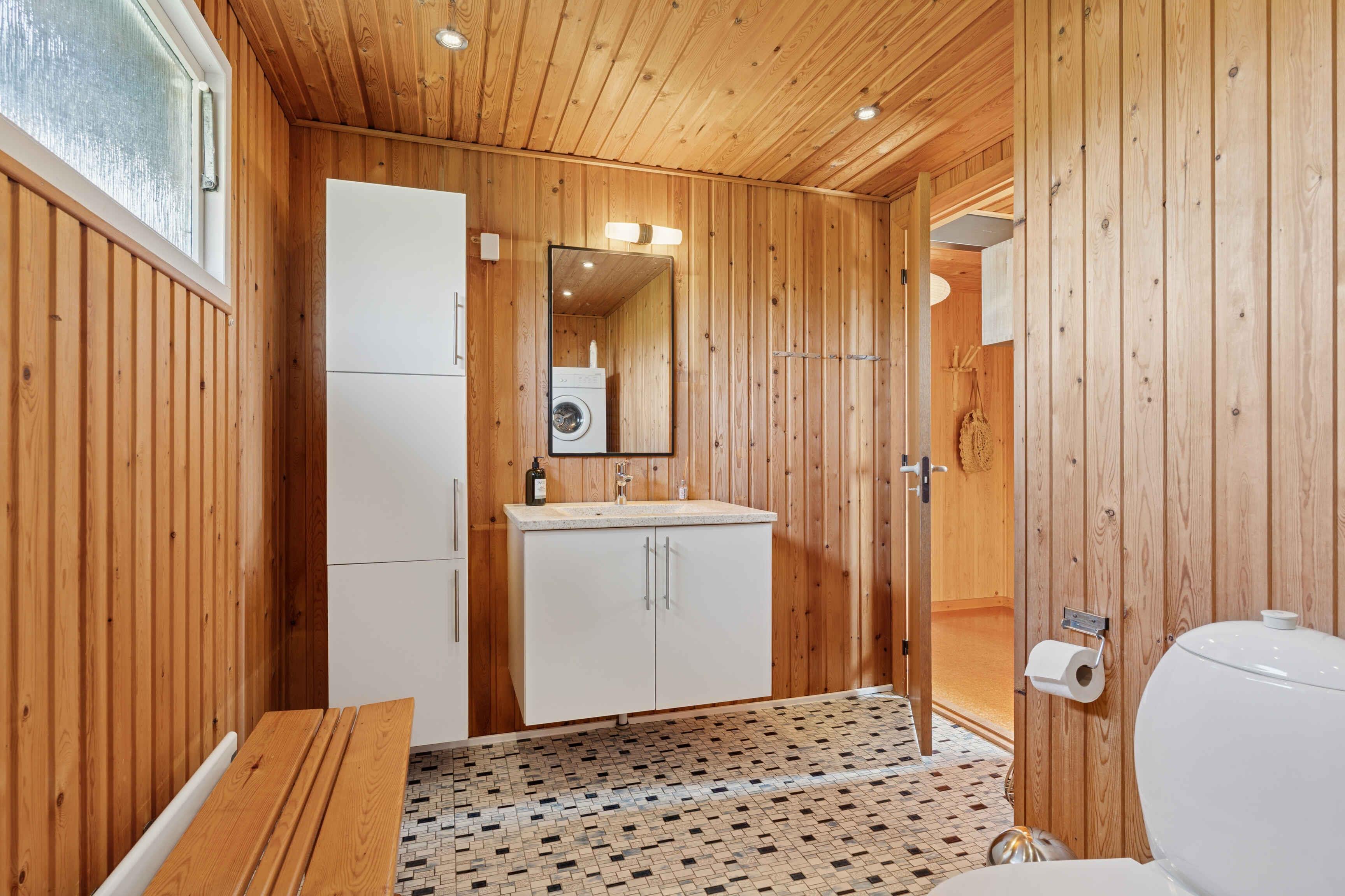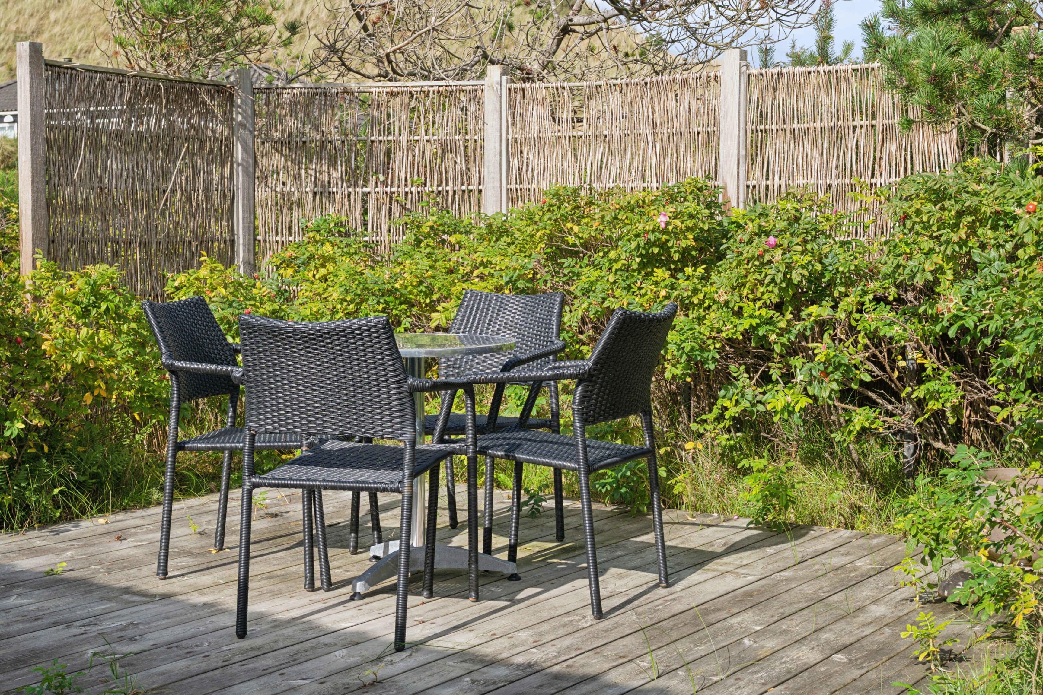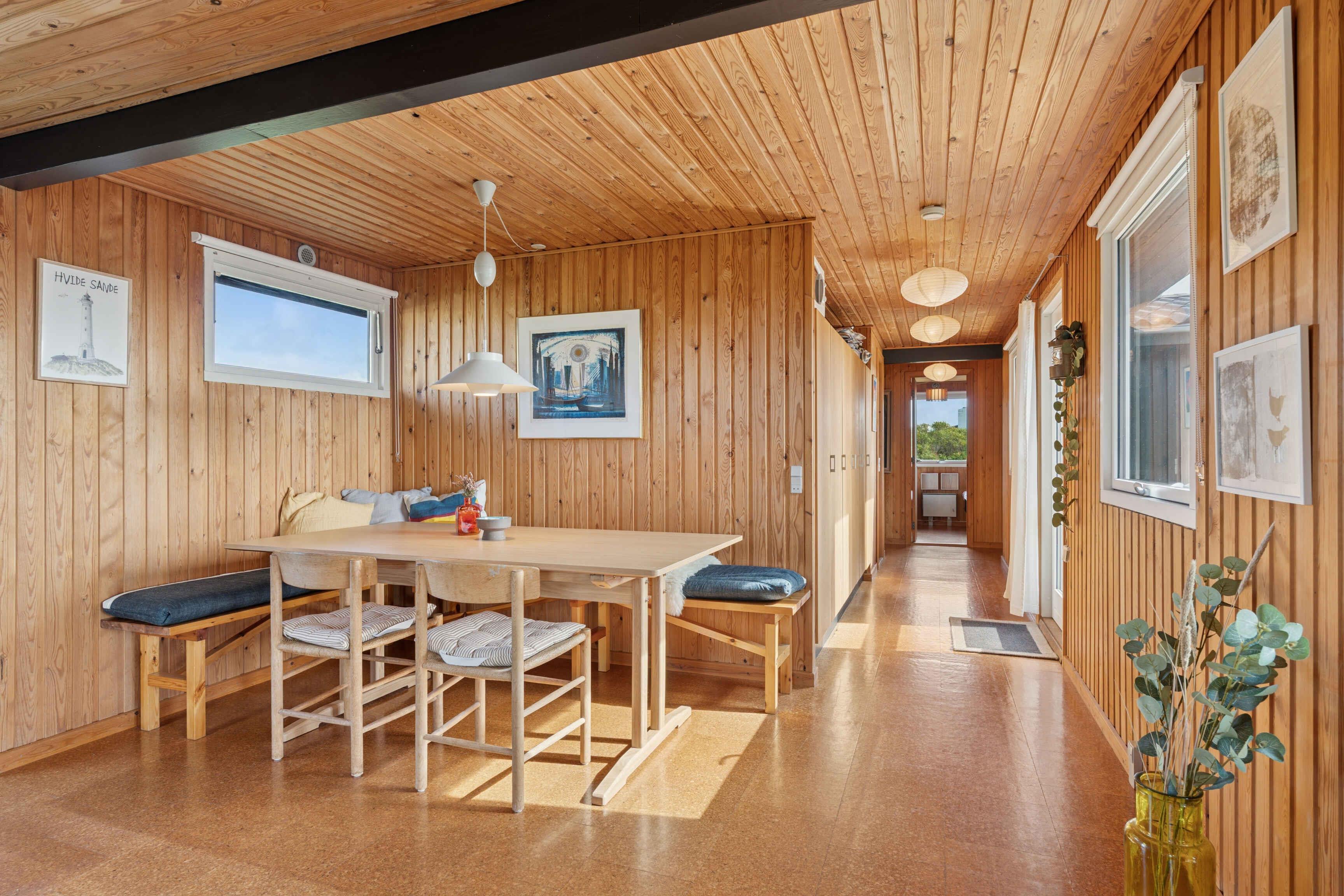 Midt i klitterne finder du et sommerhus fra 70’erne, der står skarpt trods sin alder. Huset er nænsomt vedligeholdt, gennemført rent og med nye senge og køkken, så alt fungerer. 83 m² med to soveværelser giver jer en feriebase, der er både autentisk og tryg. Her kan du trække stikket ud. Terrasserne ligger som små oaser, hvor man kan spise, læse eller blot lytte til vinden i marehalmen. Stuen samler jer om måltider, spil eller en bog, mens varmepumpen og grillen holder jer varme på hver sin måde. Området er en legeplads for sanserne. Hav og fjord på hver side, skov og klitter overalt. Fra stranden kan du dyppe tæerne i Vesterhavet, fange aftensmaden eller lade blikket forsvinde ud i horisonten. De nærliggende skove og stier kalder på cykelhjul og vandrestøvler. Og så er der byerne. Hvide Sande med havneliv, friskfanget fisk og markedsstemning. Søndervig med butikker, caféer og brede sandstrande. Alt sammen tæt nok til en cykeltur, men langt nok til, at roen stadig er din. Et hus til jer, der søger langsomhed og nærvær. Hvor naturen dikterer rytmen, og hvor en ferie kan være mere end blot ferie. Her er alt, men på en stille, anderledes måde.