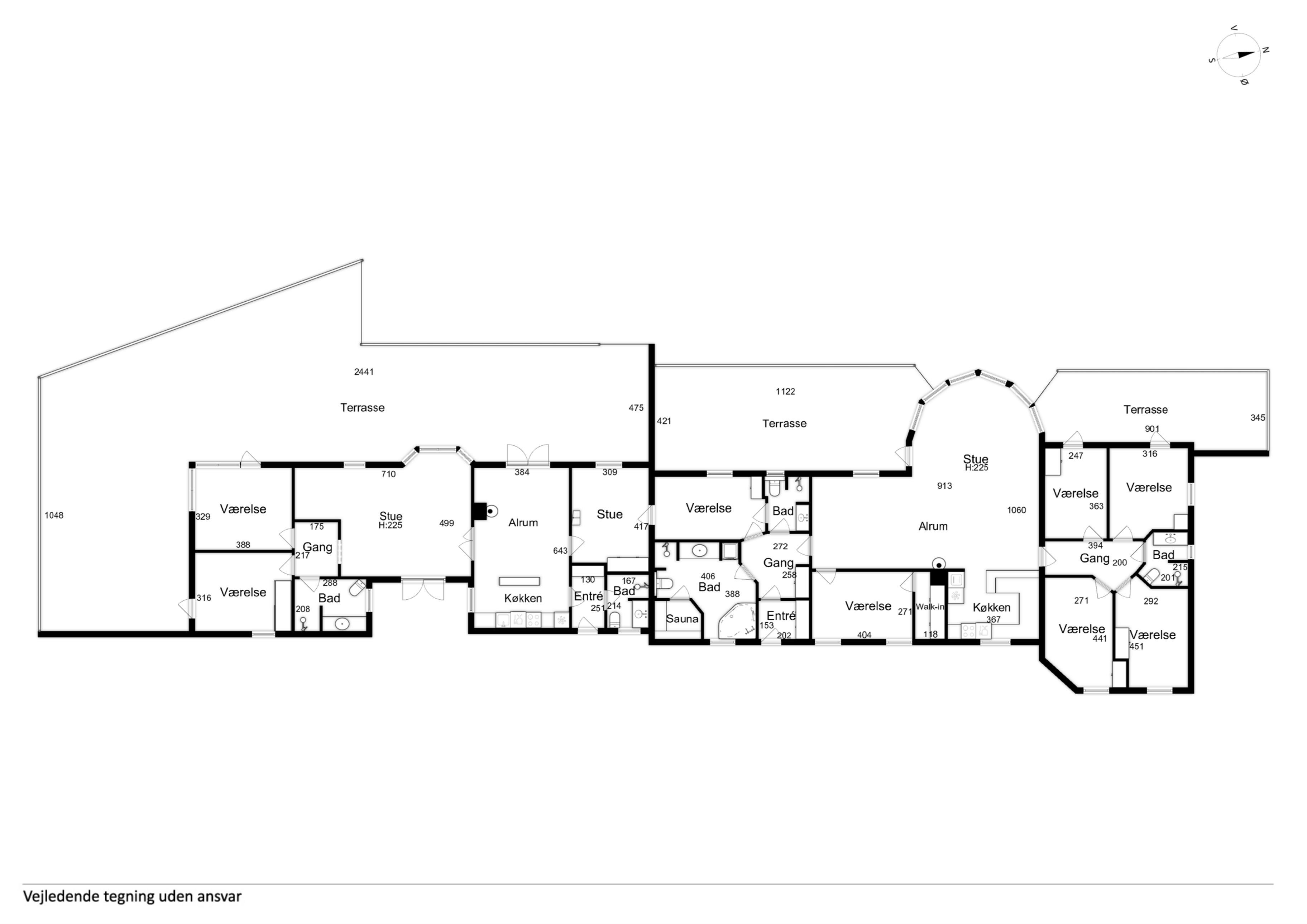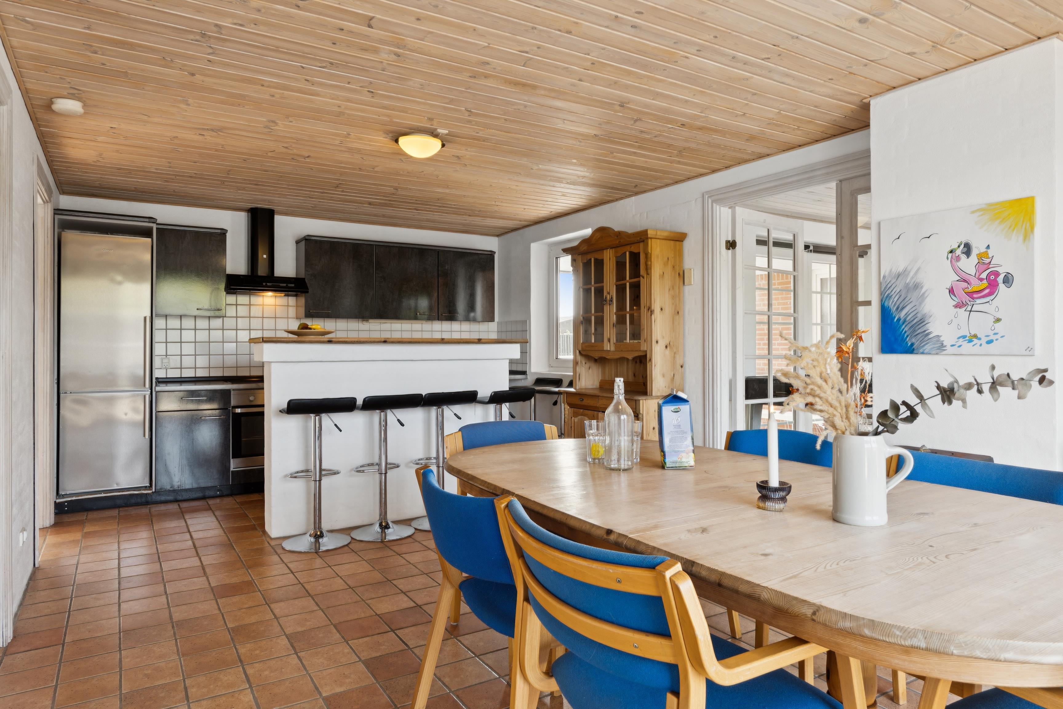 Sommerhuset indeholder 8 værelser, hvor det ene er gennemgangsrum, 5 badeværelser og 2 køkkener, hvilket gør huset ideelt til flere familier. Det ene køkken har ovn, kogeplader, emhætte, opvaskemaskine, køleskab og kaffemaskine. Det andet køkken har ovn, kogeplader, emhætte, opvaskemaskine, køl/frys og kaffemaskine.