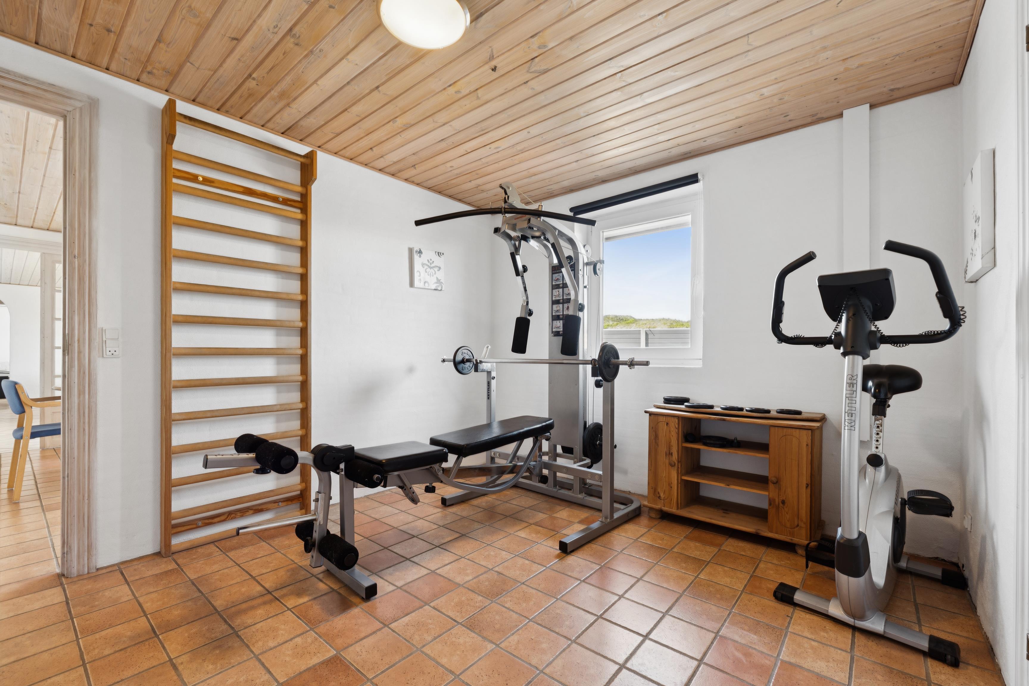 I aktivitetsrummet er der billard, bordfodbold, airhockey og dartspil. Det ene badeværelse har spabad og sauna. Til sommerhuset er der parabol, 3 Tver fordelt rundt i huset, stereoanlæg med cd-afspiller og 2 brændeovne. Huset opvarmes af fjernvarme, der gør den økonomisk at opvarme. Udenfor er der et spabad på terrassen mod sydvest, hvor solnedgangen kan nydes. Til børnene er der gynger og fodboldmål. Ved garagen er der et disponibelt rum til surfingudstyr, fiskeudstyr mm, og hvor der er en ekstra stor fryser samt en fiskerenseplads.