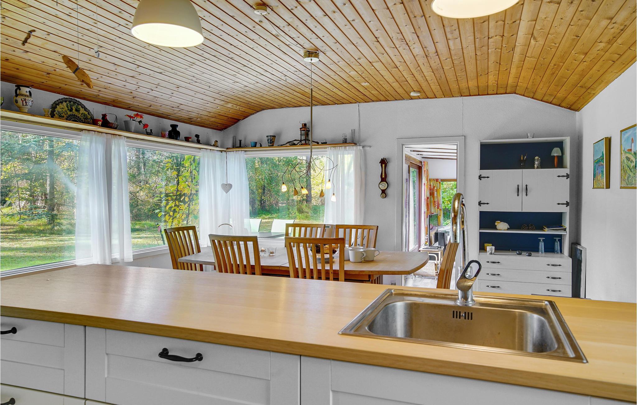 På en velholdt havegrund ligger dette charmerende sommerhus, som lægger op til en afslappende ferie ved kysten. Sammensæt lækre retter i det veludstyrede køkken og nyd jeres måltider med udsigt til det grønne. Find jer godt til rette i den hyggelige stue, se en god film eller synk ned i den hyggelige læselænestol med en god bog.