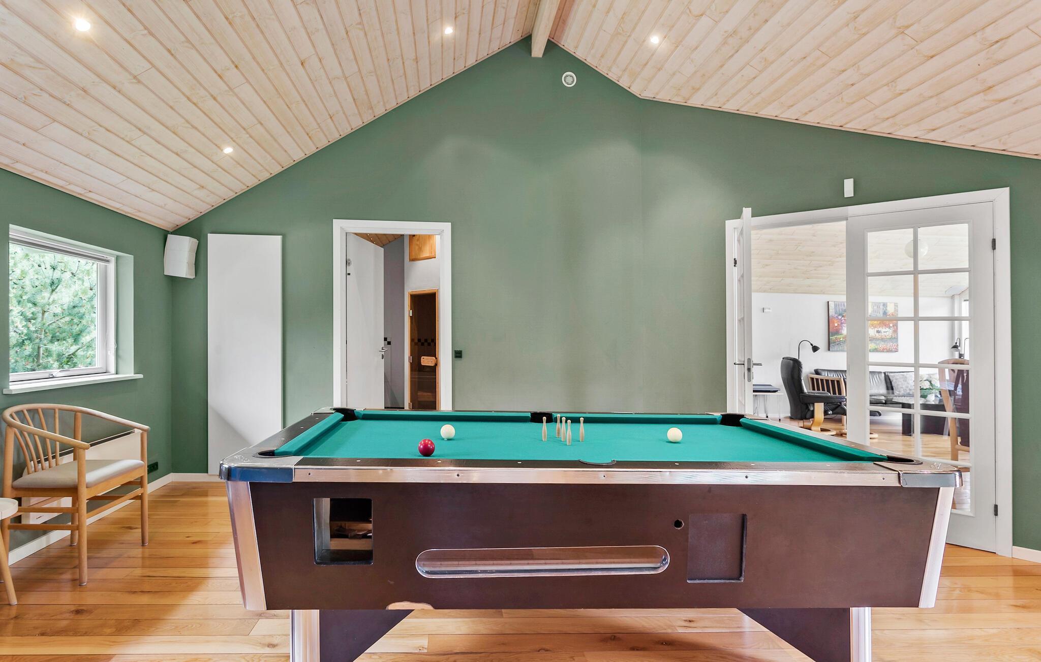 Dette sommerhus ligger nær Rødby færgehavn og har masser af plads til en stor familie eller to vennefamilier, der gerne vil opleve Lolland sammen. Huset er meget rummeligt og indrettet med klassiske sommerhuselementer, så her indfinder feriehyggen sig på nul komma fem. Både indendørs og udendørs er der en lang række aktivitetsmuligheder. I det åbne køkken kan I sammen tilberede lækre ferieretter og nyde dem rundt om det lange elegante spisebord, mens brændeovnen skaber en hyggelig atmosfære. I aktivitetslokalet kan I snuppe en dyst og kåre en vinder i alt fra billard til bordtennis og dart.