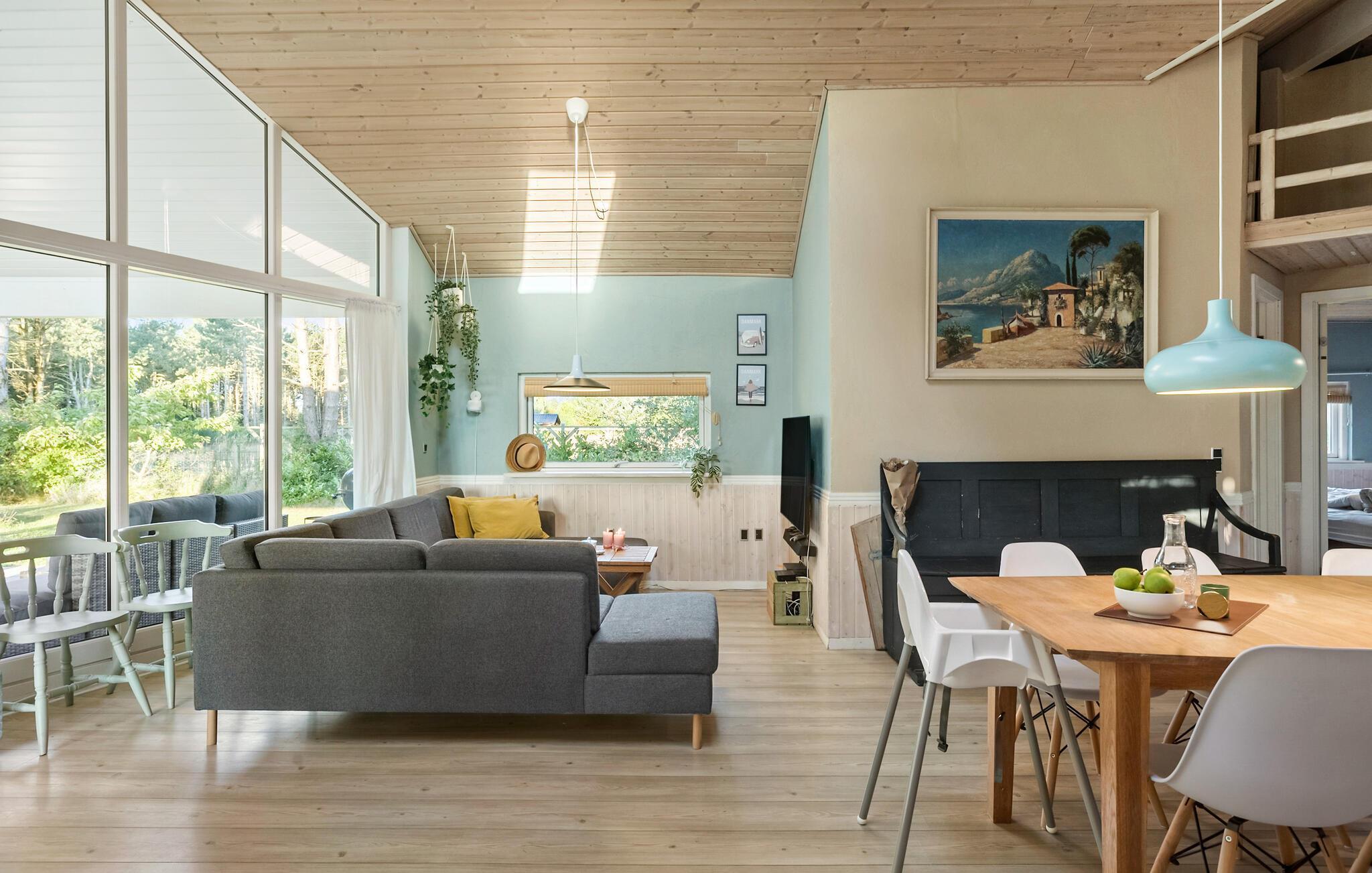 I dette hus smelter hygge og moderne lethed sammen på harmonisk vis. Lyse trævægge, store vinduer og omhyggeligt udvalgte farvenuancer skaber en varm og indbydende atmosfære. Slap af i den åbne opholdsstue, hvor I kan snakke, lytte til musik eller nyde en kop kaffe, inden I sammen tilbereder lækre måltider i køkkenet. Afslut dagen i godt selskab med et glas vin og en hyggelig stemning.