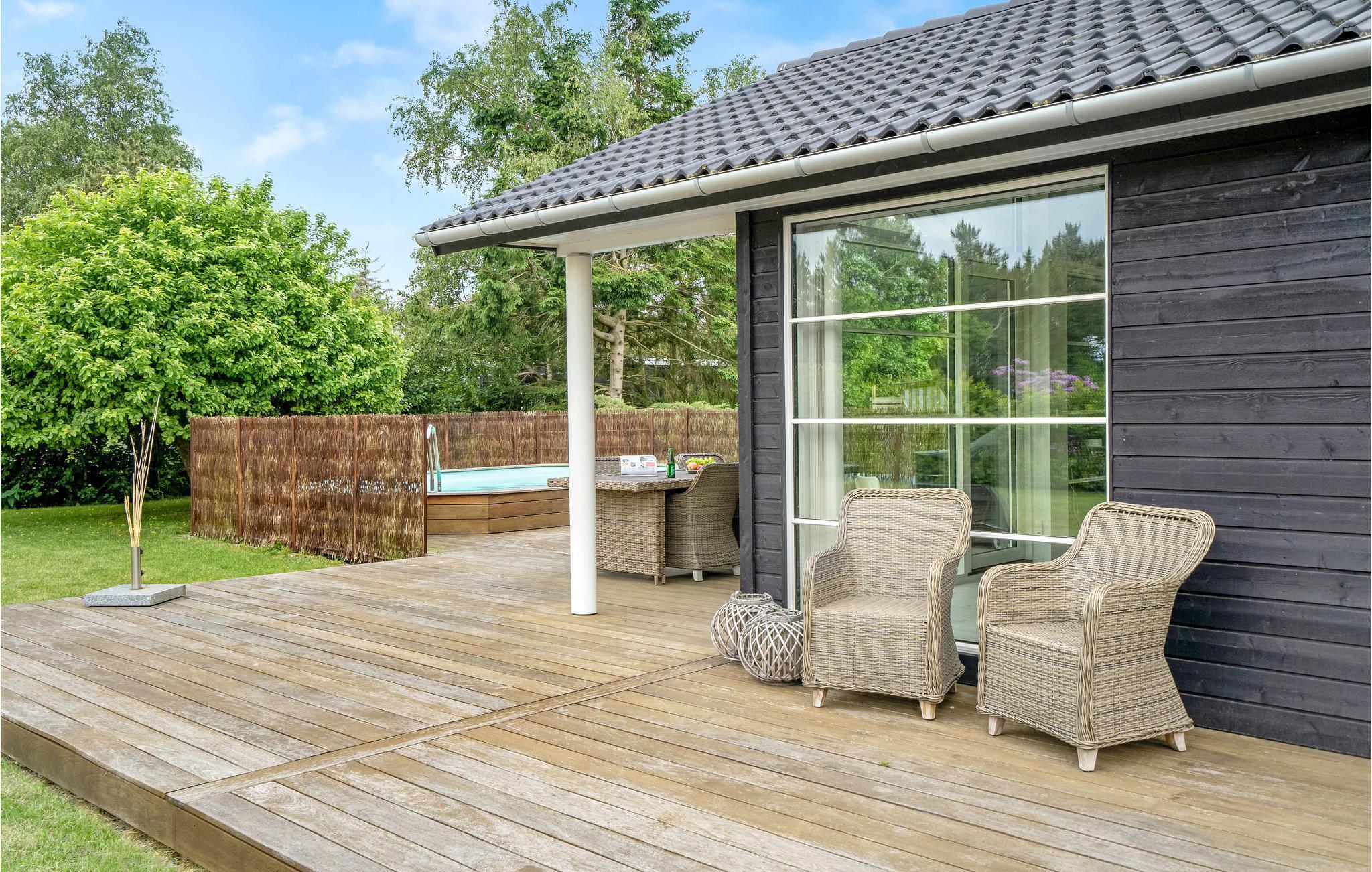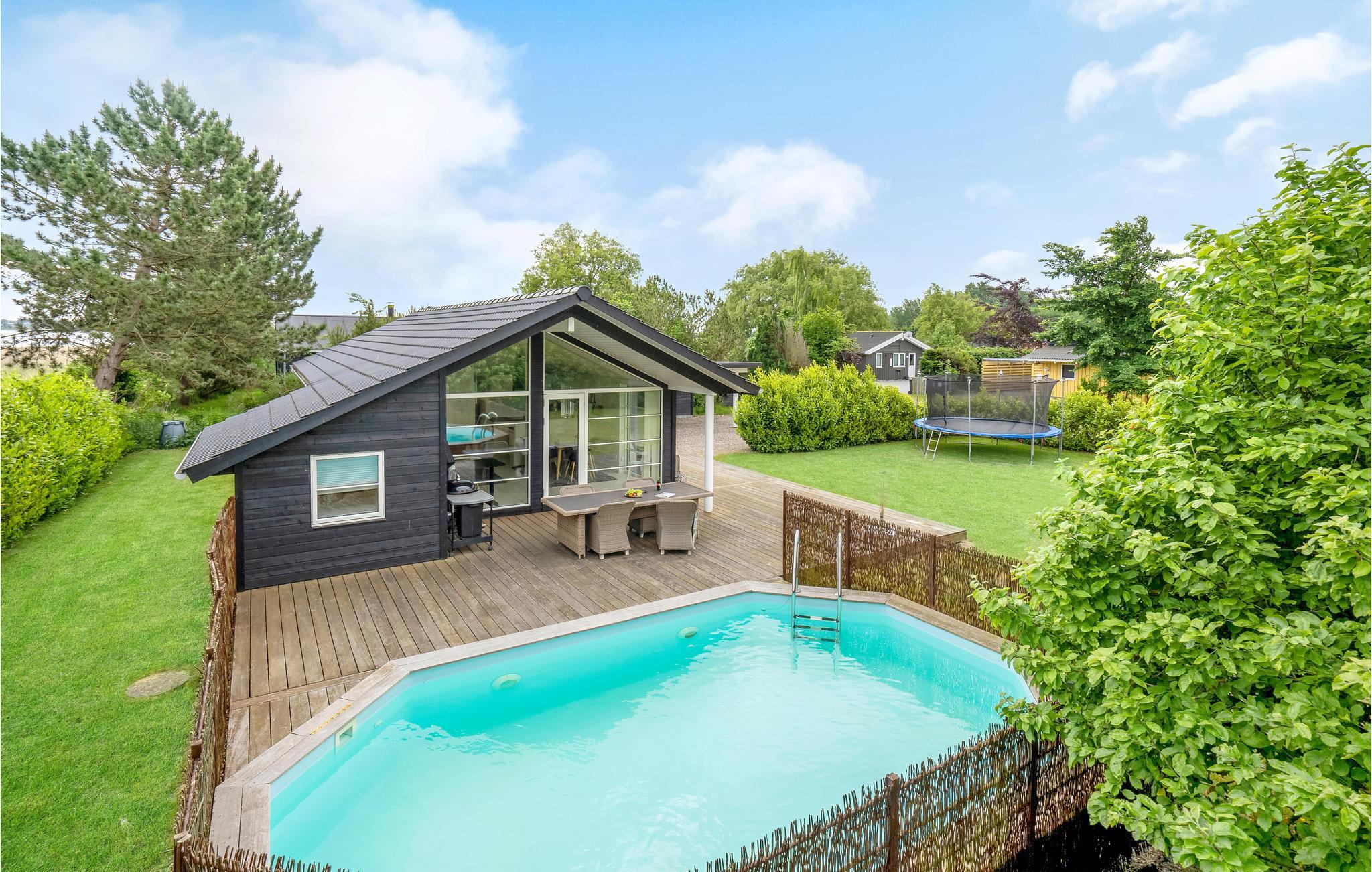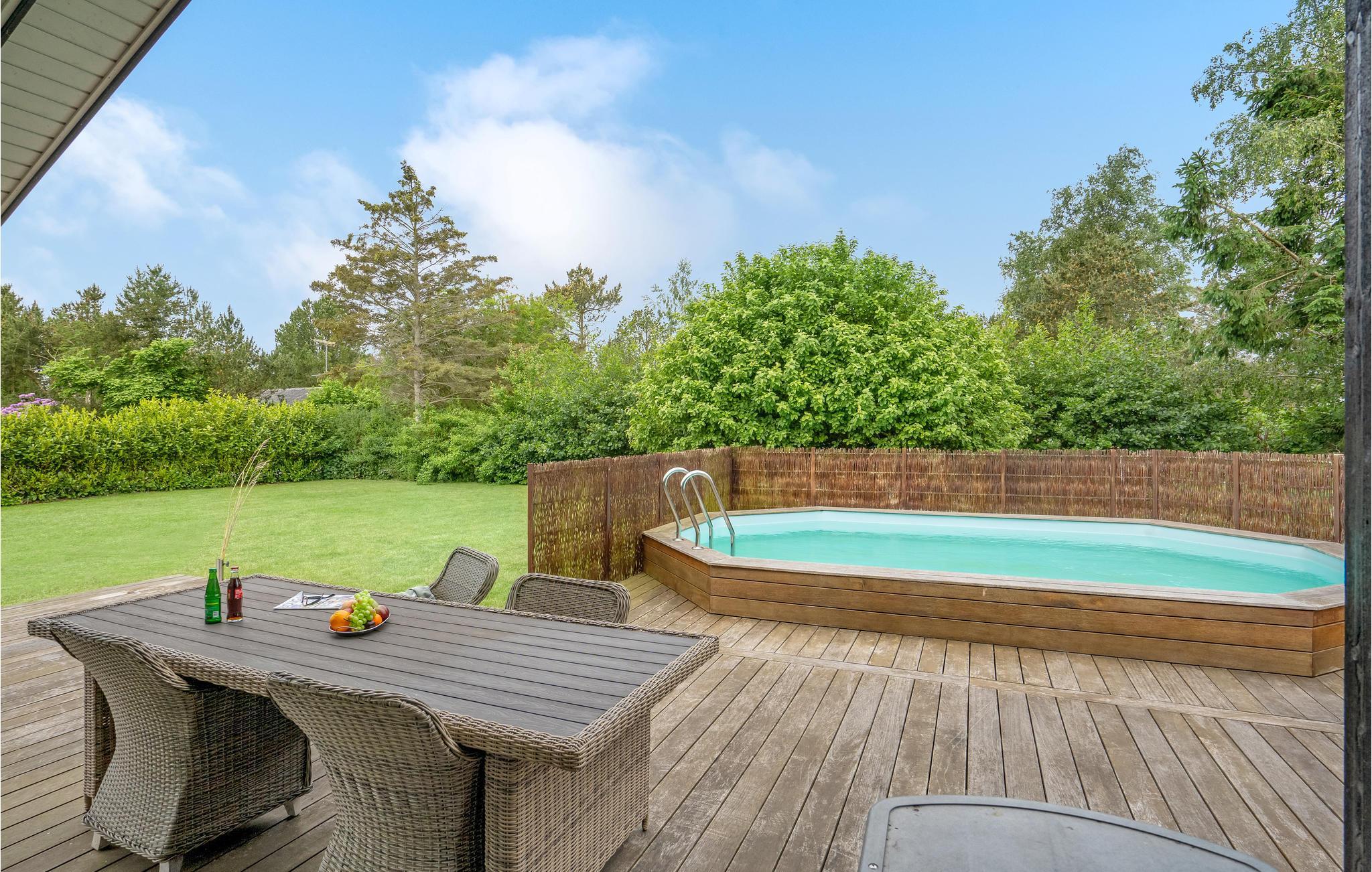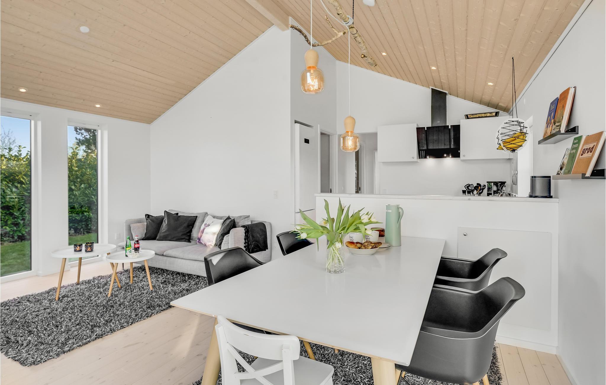 Dette klassiske skandinaviske feriehus byder jer velkommen med en vellykket indretning, harmonisk indrettede møbler samt en have med terrasse og udendørs pool. Den hyggelige og rumlige stue er forbundet med det flotte, moderne køkken. Her kan I tilbringe en afslappet tid med venner eller familie i en rolig atmosfære.